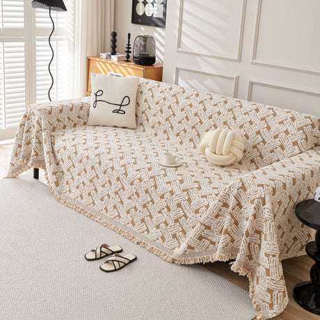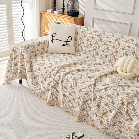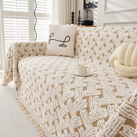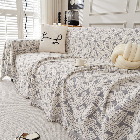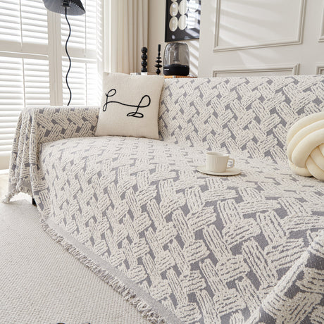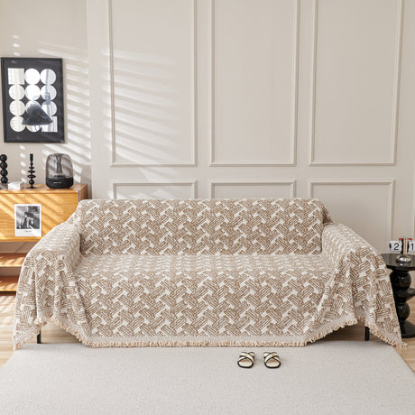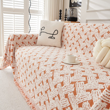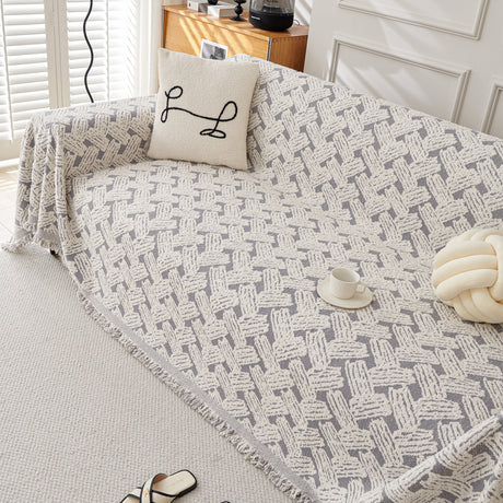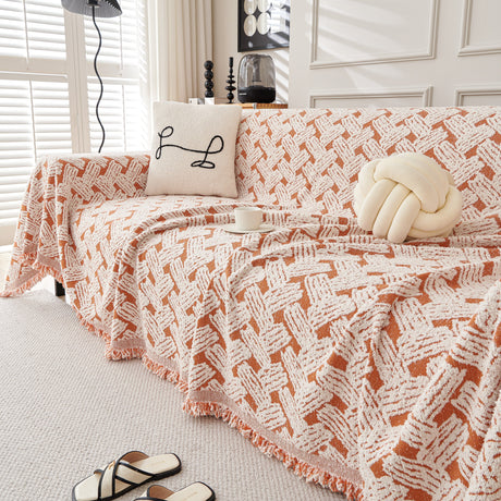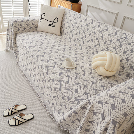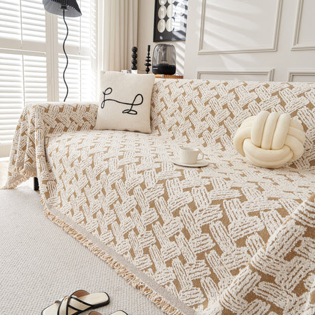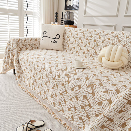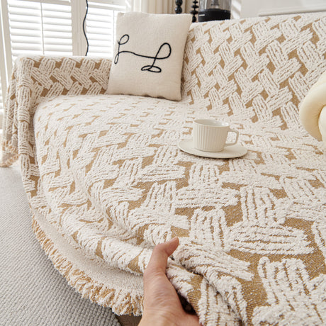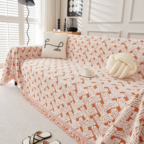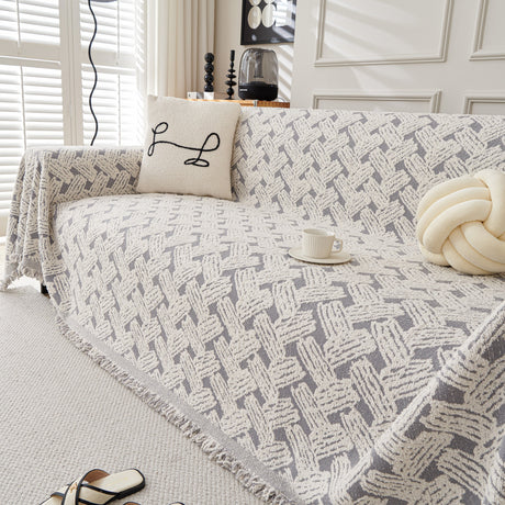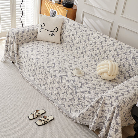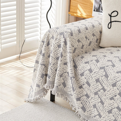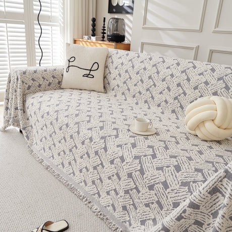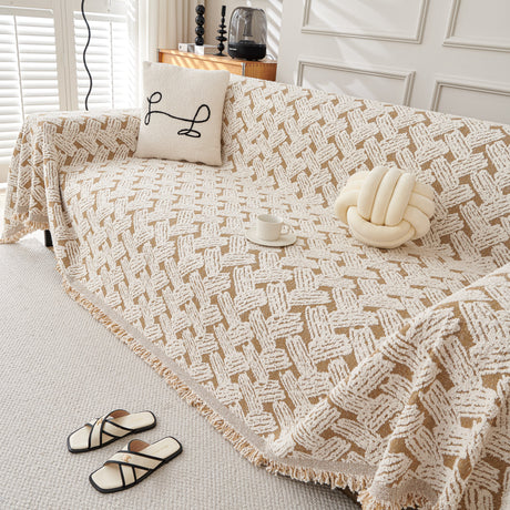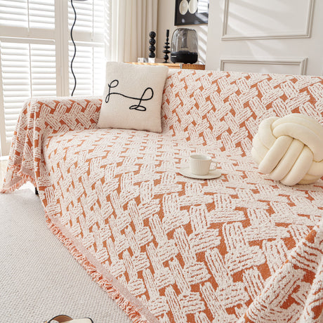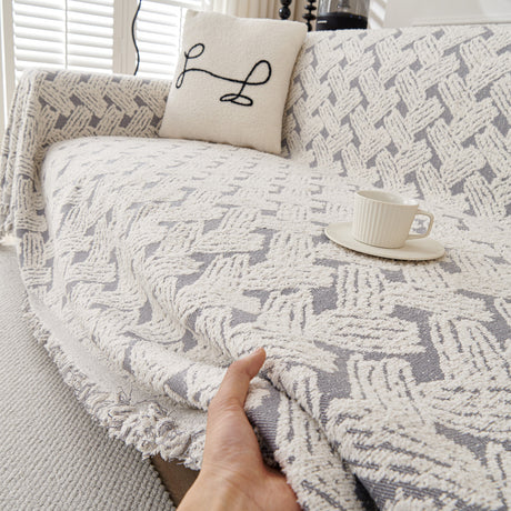 Chenille Jacquard Sofa Throw Cover with Tassel Soft Thick Couch Protector Blanket