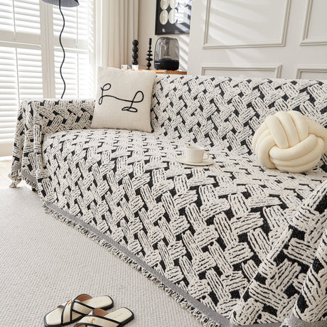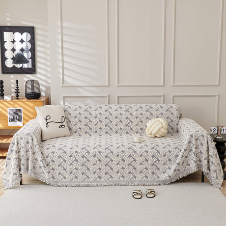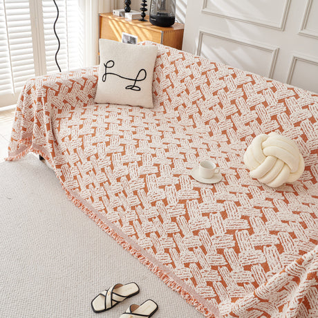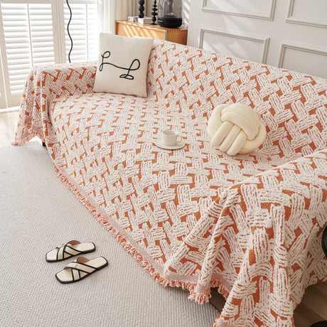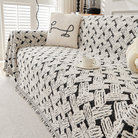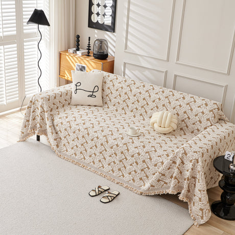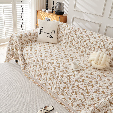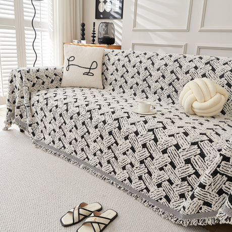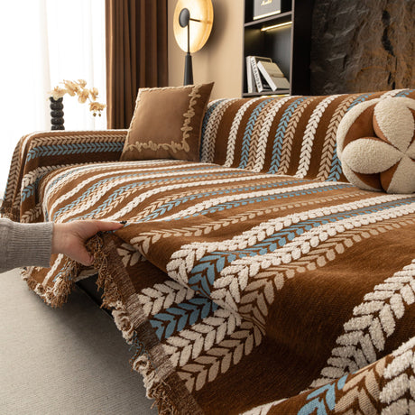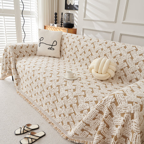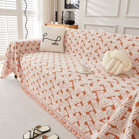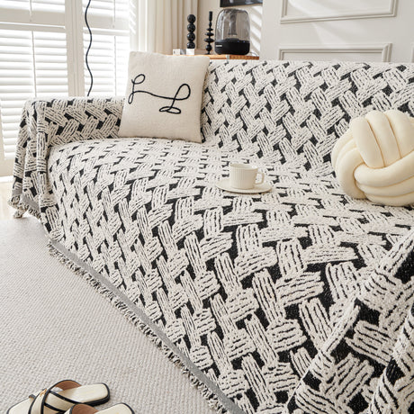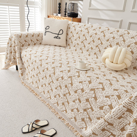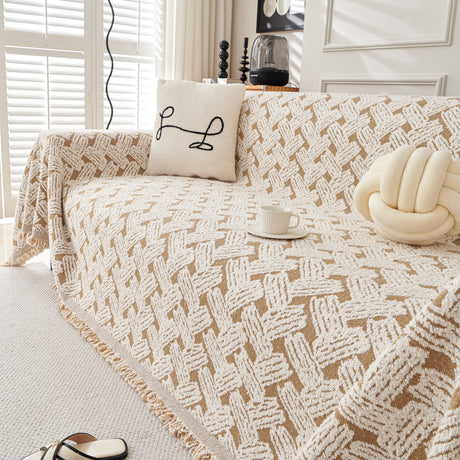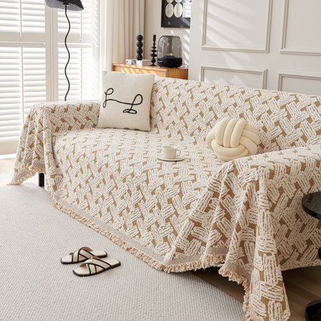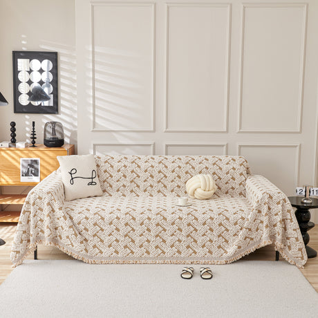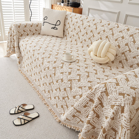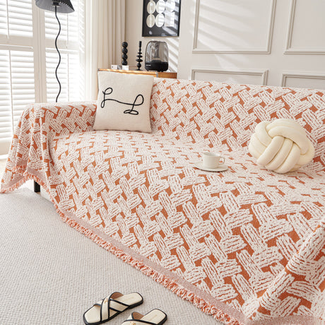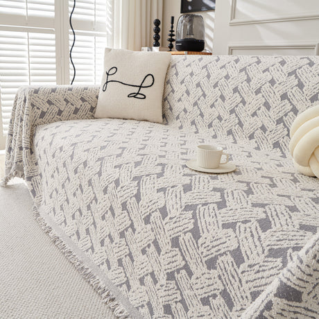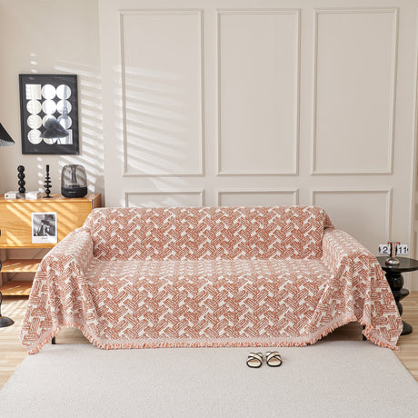 Chenille Jacquard Sofa Throw Cover with Tassel Soft Thick Couch Protector Blanket