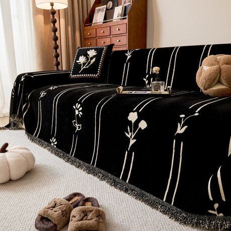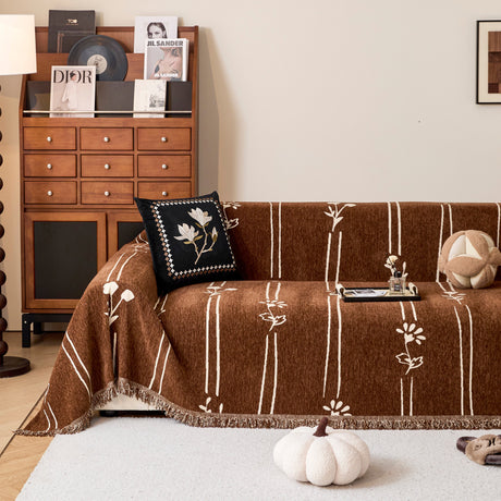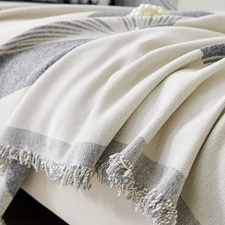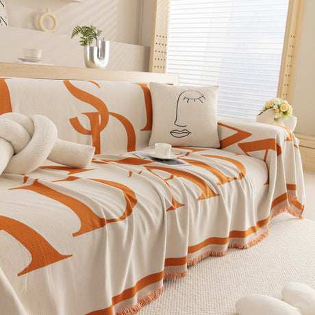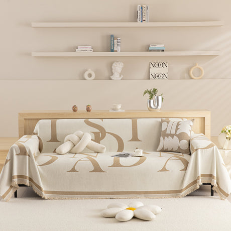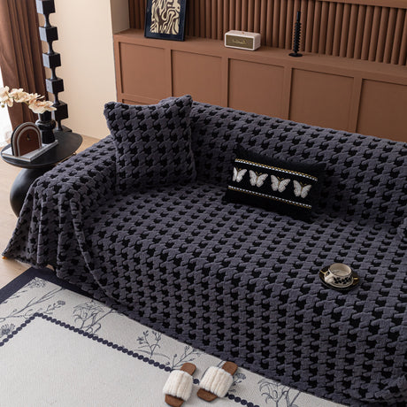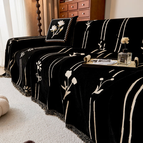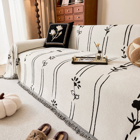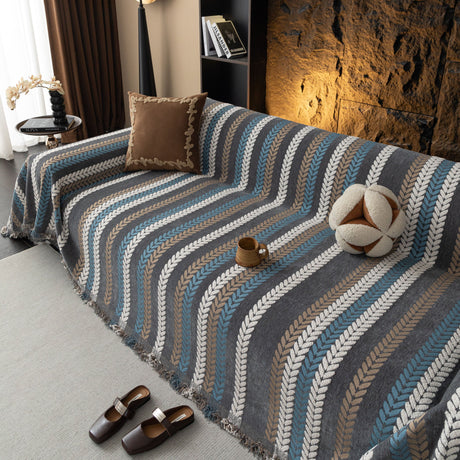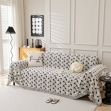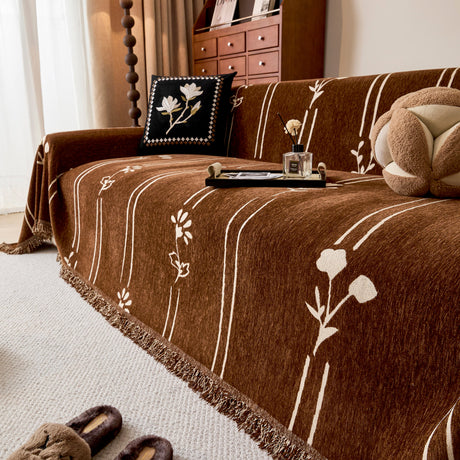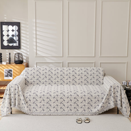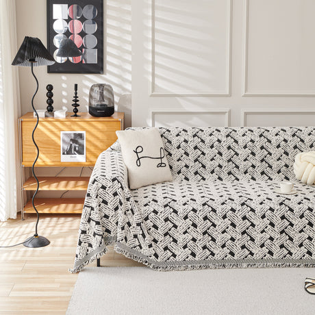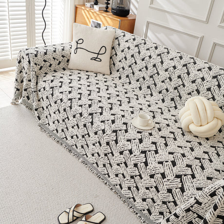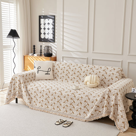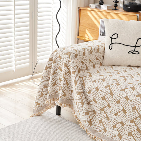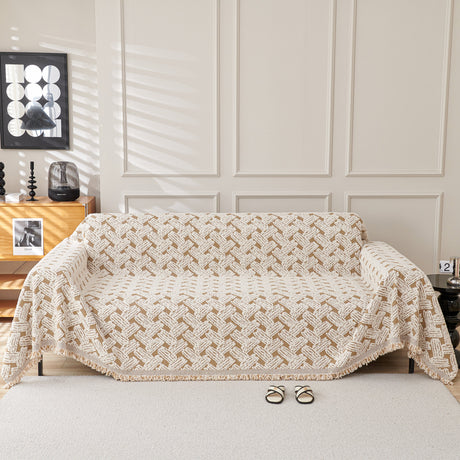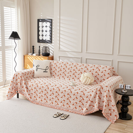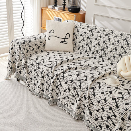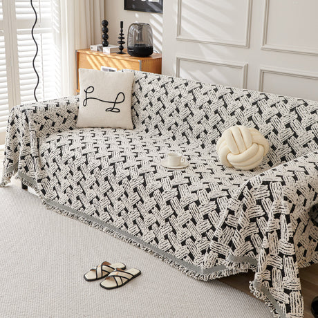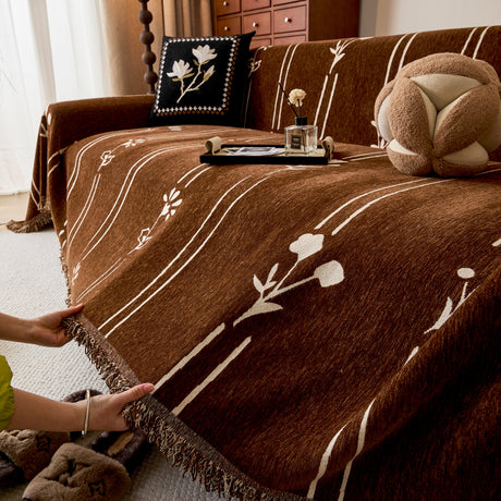 Chenille Jacquard Sofa Throw Cover with Tassel Soft Thick Couch Protector Blanket