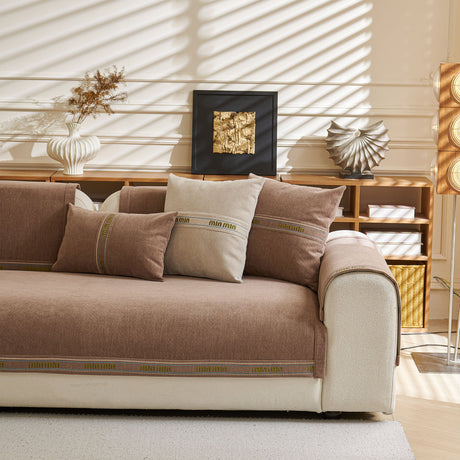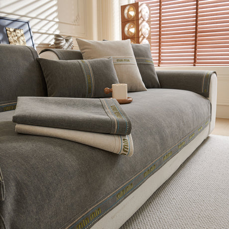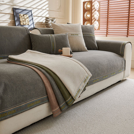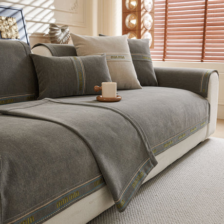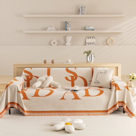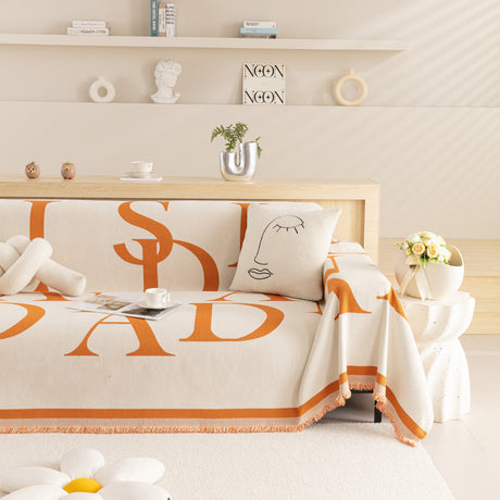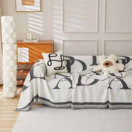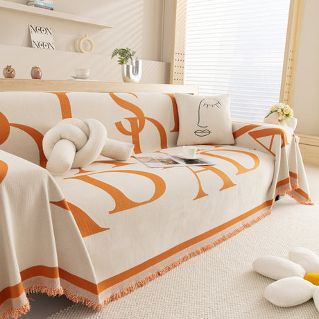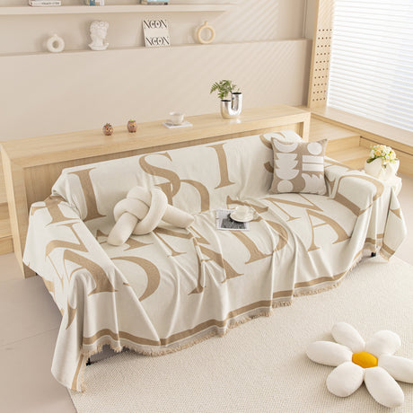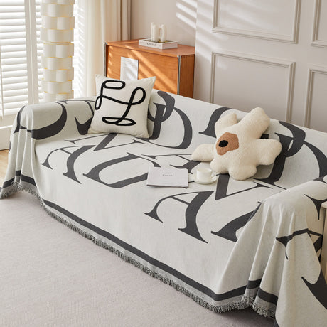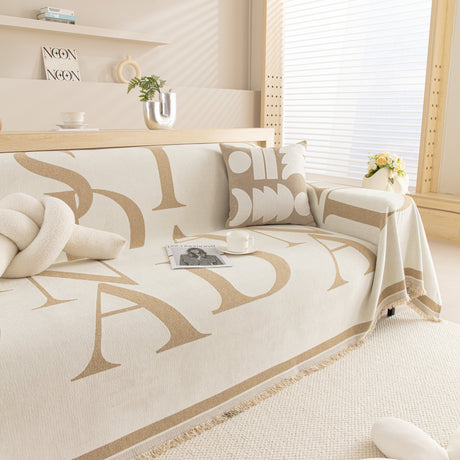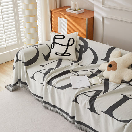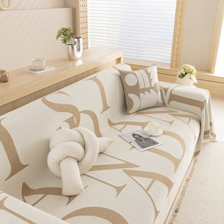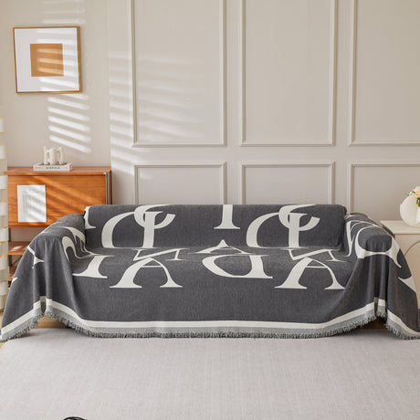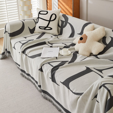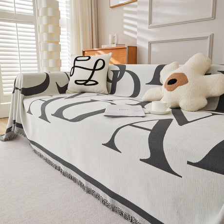 Chenille Jacquard Alphabet Sofa Blanket Cover, L Shape Sofa Cover, Reversible Couch Covers for Dogs
