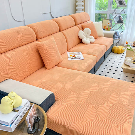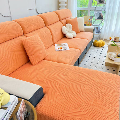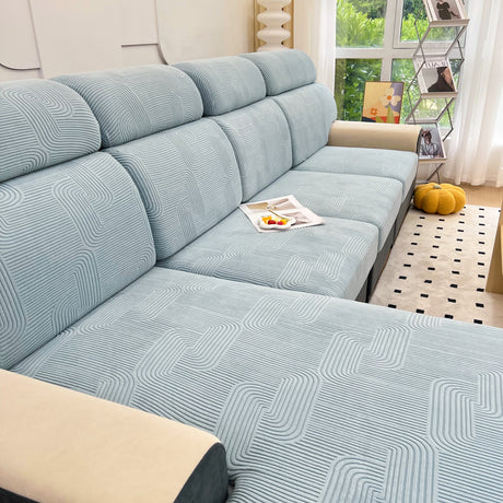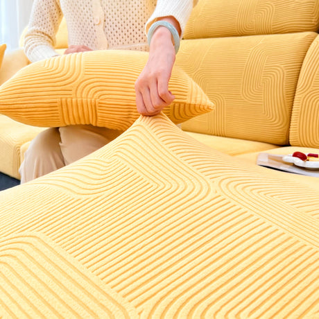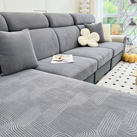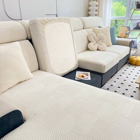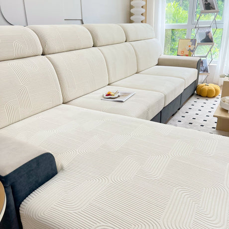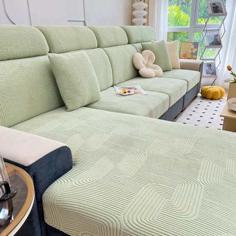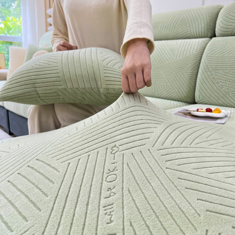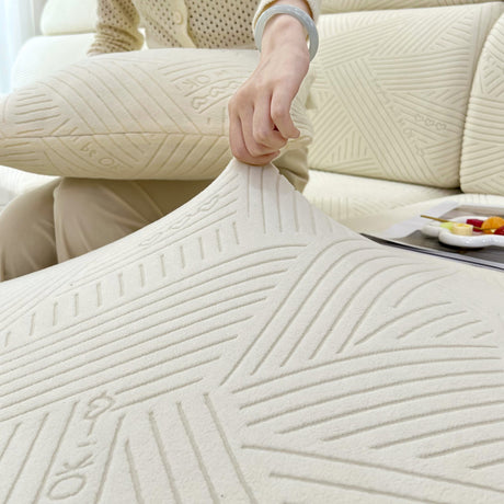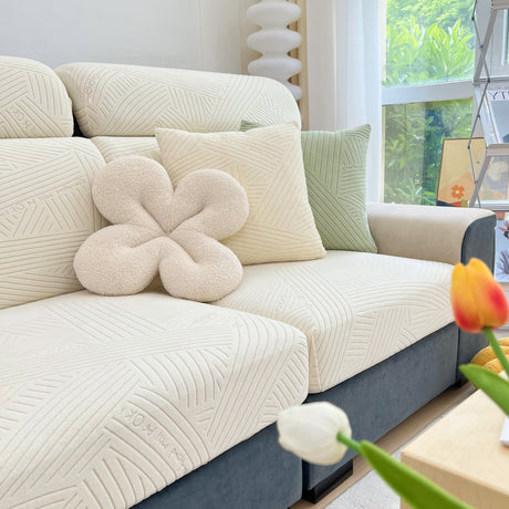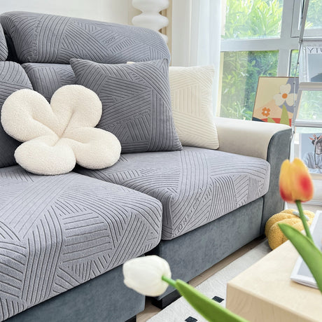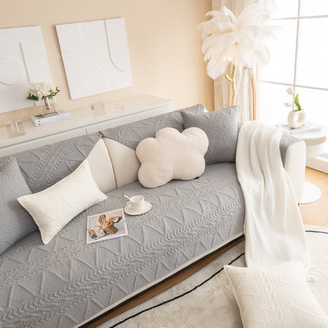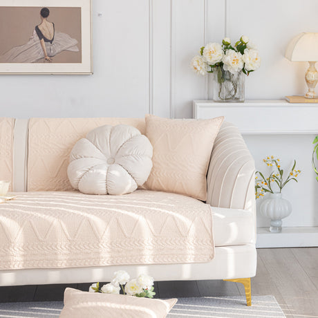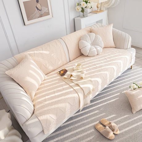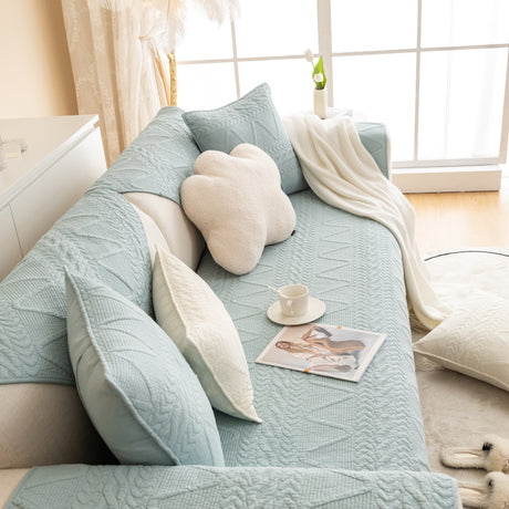 Geometric Textured Cotton Quilted Sofa Cover, Non-Slip Washable Couch Protector