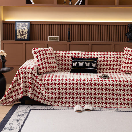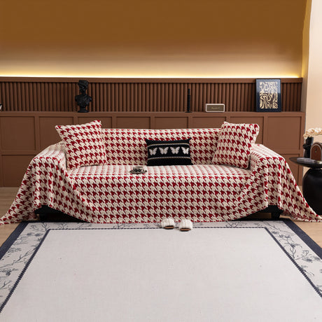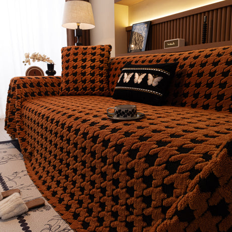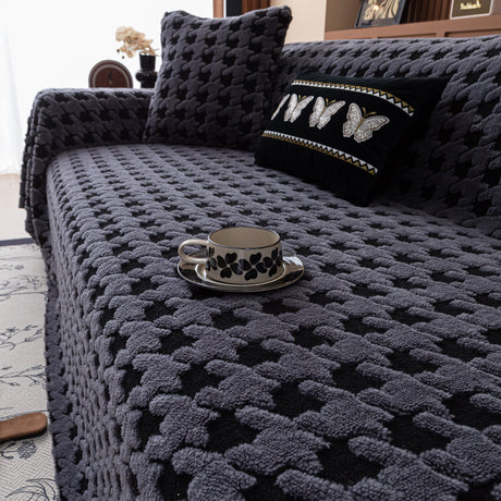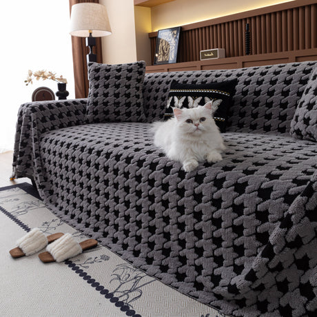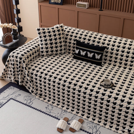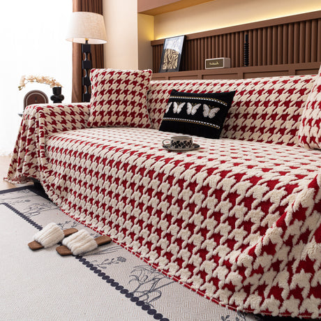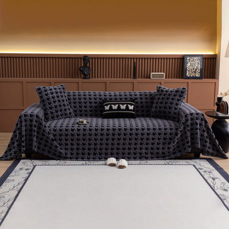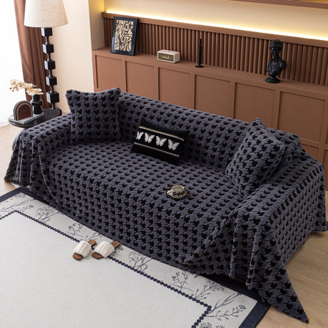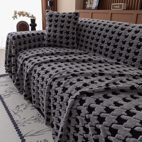 Jacquard Fleece Houndstooth Warm Cozy Couch Cover Blanket Decorative Throws for Sofas