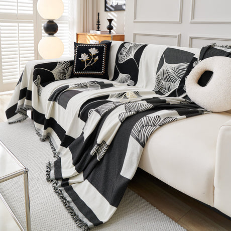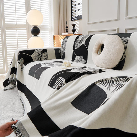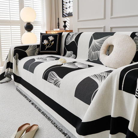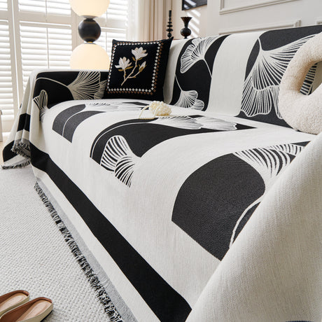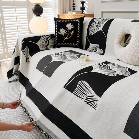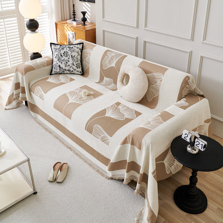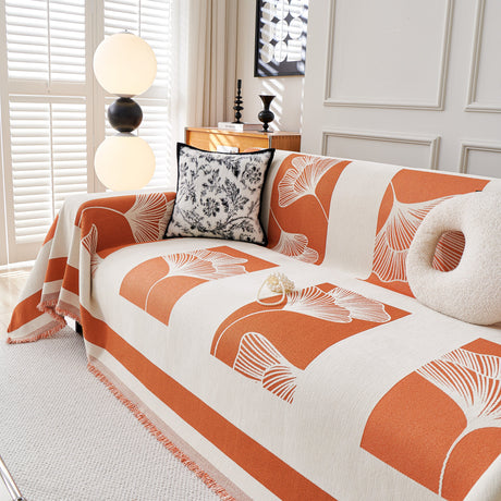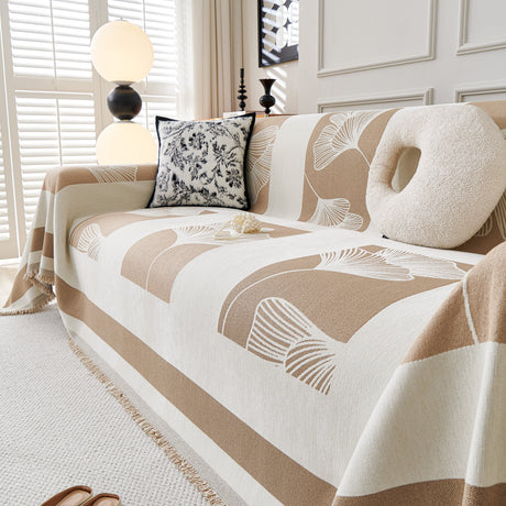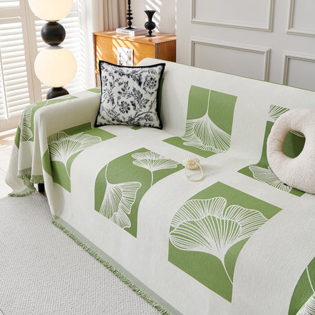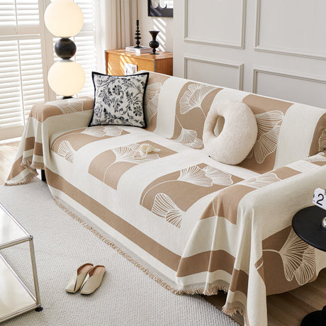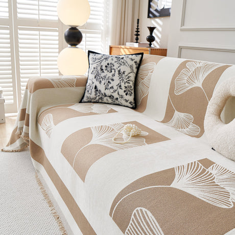 Reversible Ginkgo Leaf Furniture Slipcovers for Sofas Scratch Resistant Sectional Sofa Throw Covers