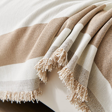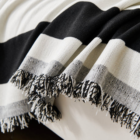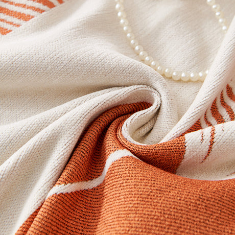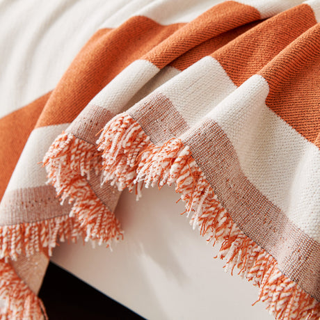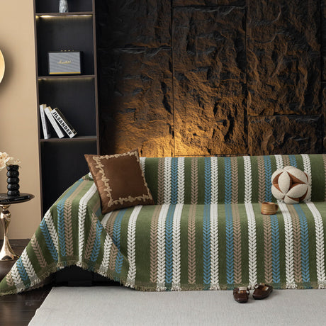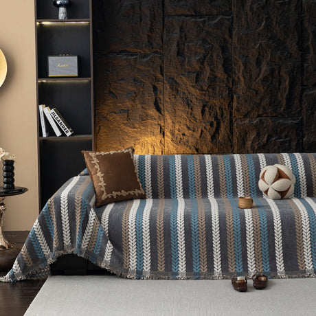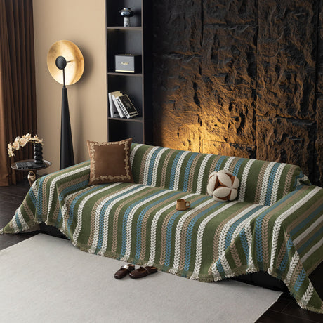 Cozy Decorative Throw Blanket for Couches, Boho Plush Woven Sofa Cover with Stripes