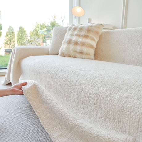 Thick Sherpa Fleece Sofa Protector Cover Stylish Durable Slipcovers for Couches and Chairs