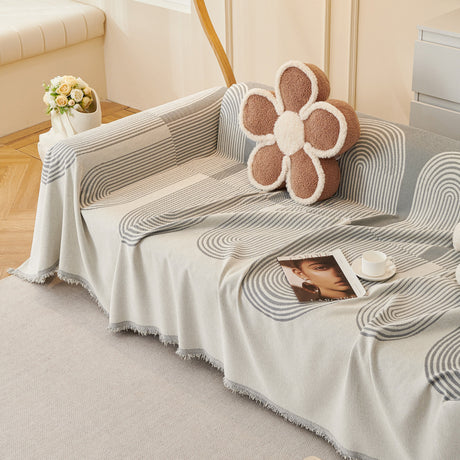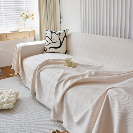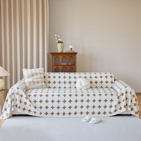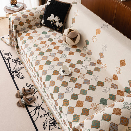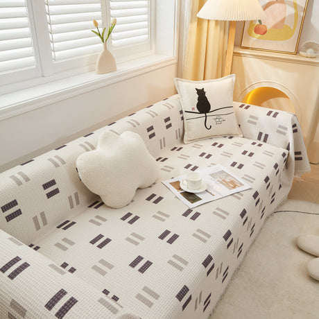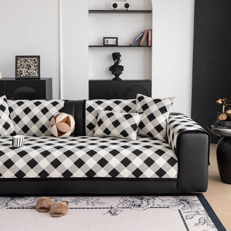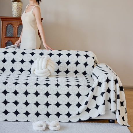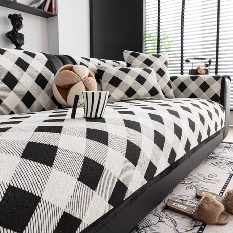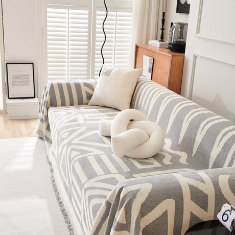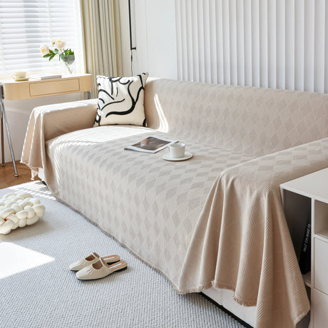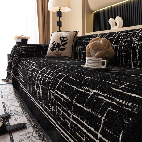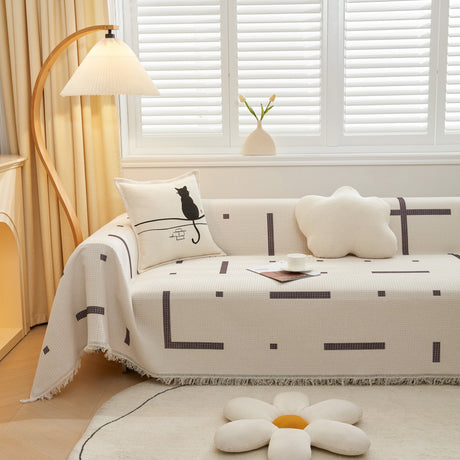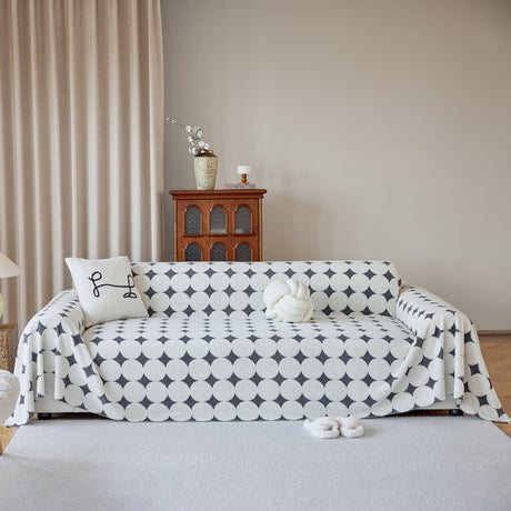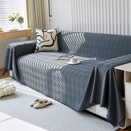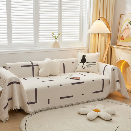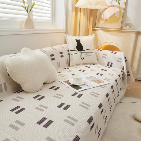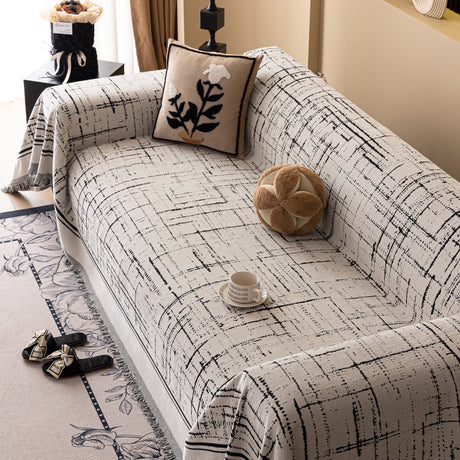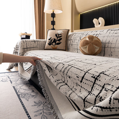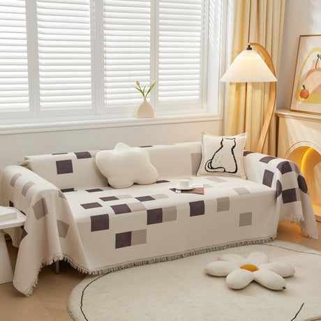 Modern Couch Protector Blanket Woven Chenille Sofa Cover Throw with Artistic Grid