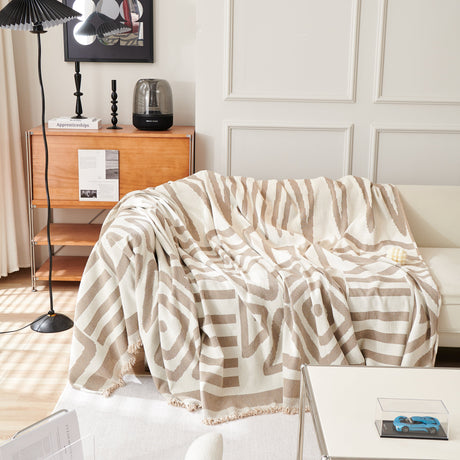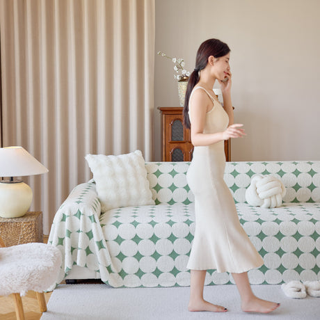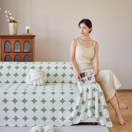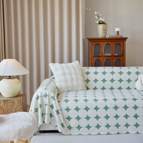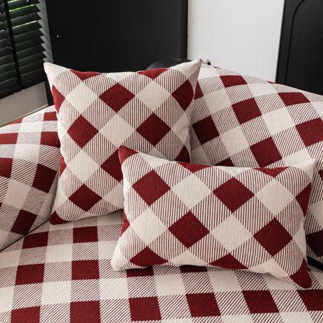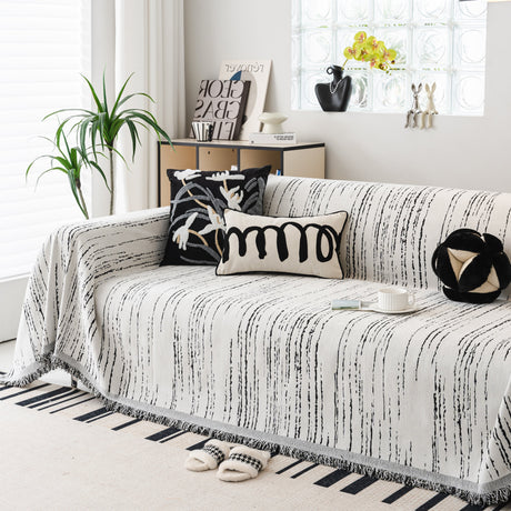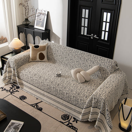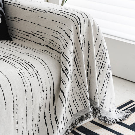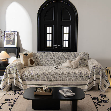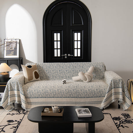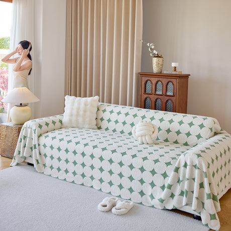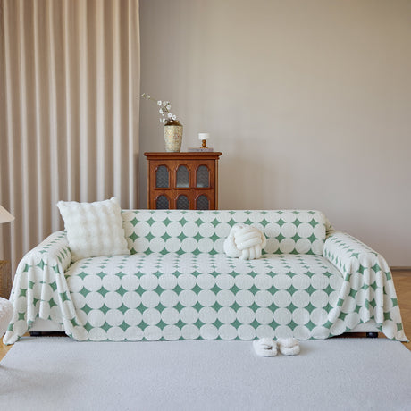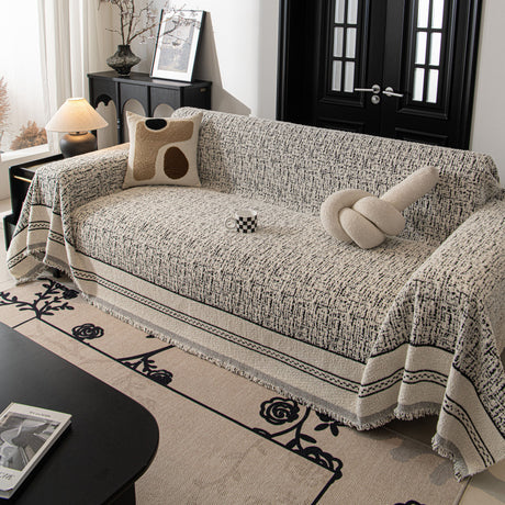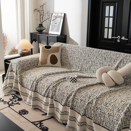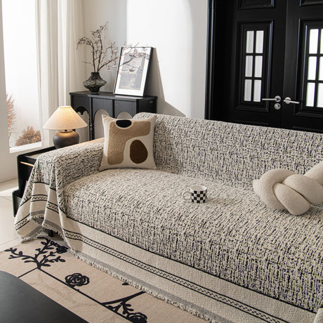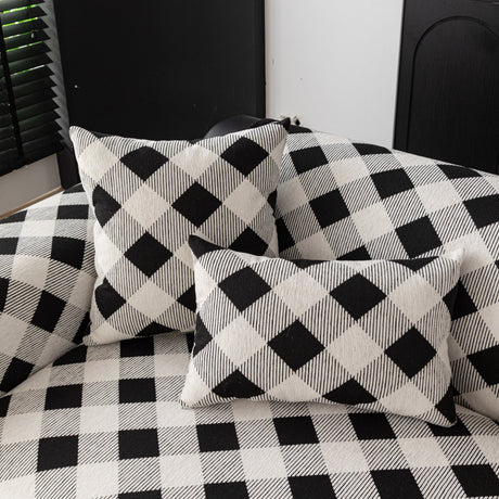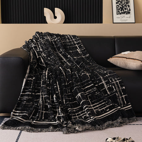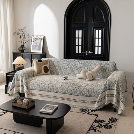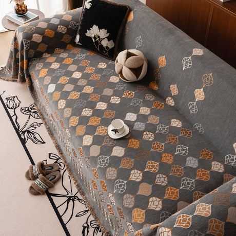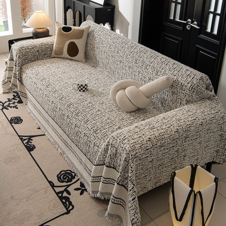 Modern Couch Protector Blanket Woven Chenille Sofa Cover Throw with Artistic Grid