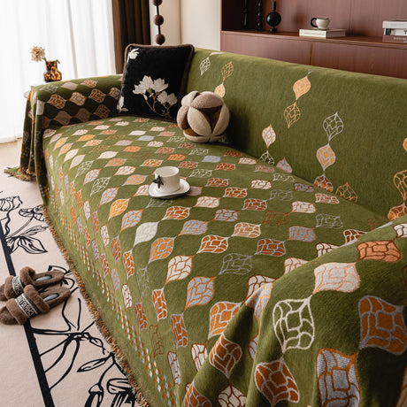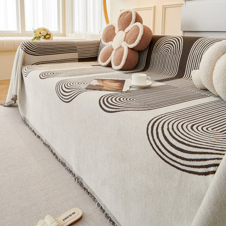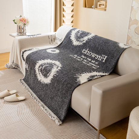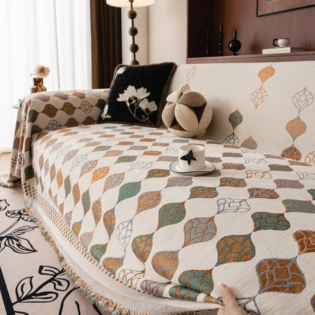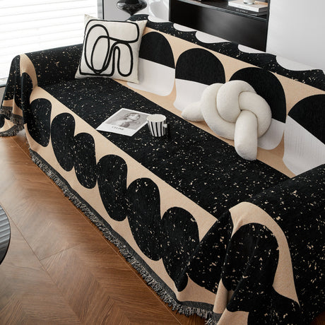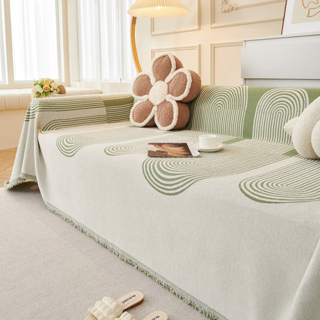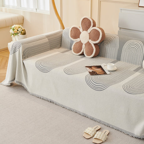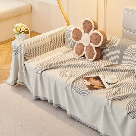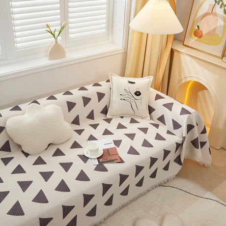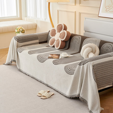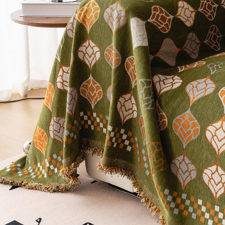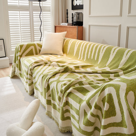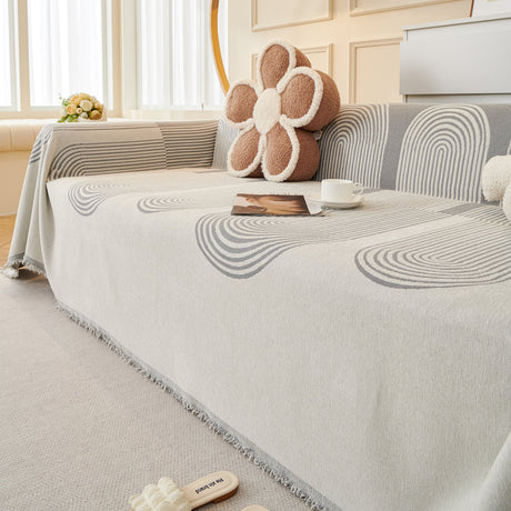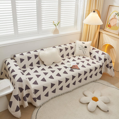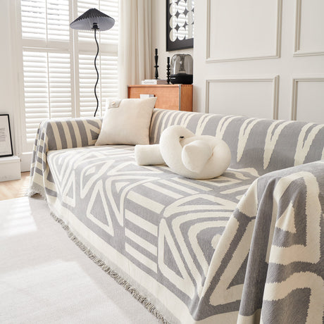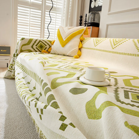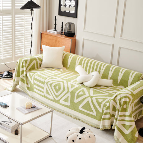 Chenille Geometric Sofa Throw Blanket, Boho Washable Furniture Throw Covers for Sofa