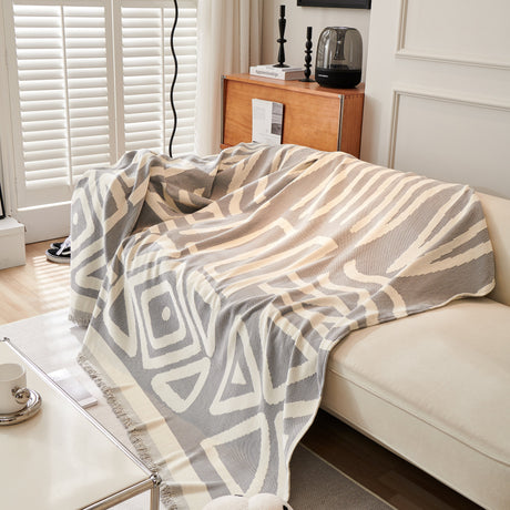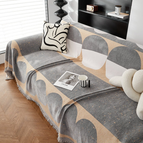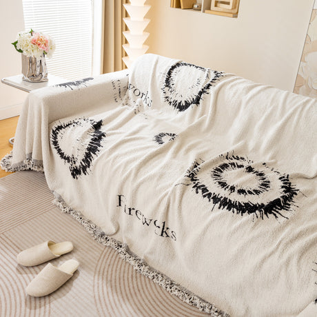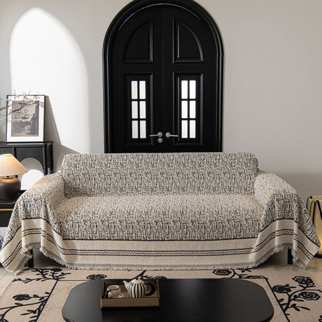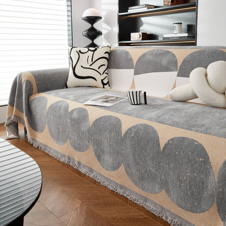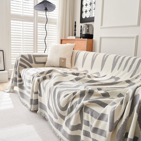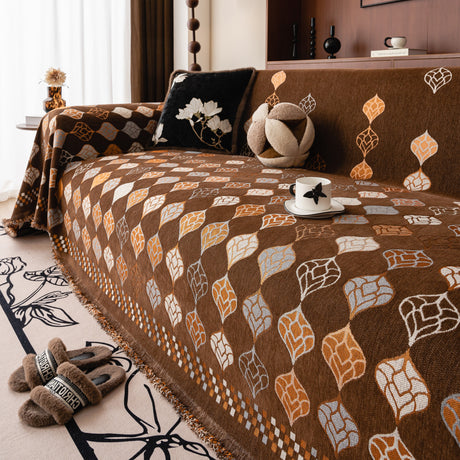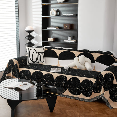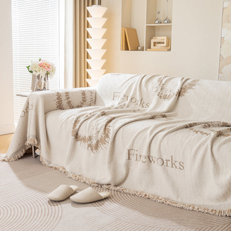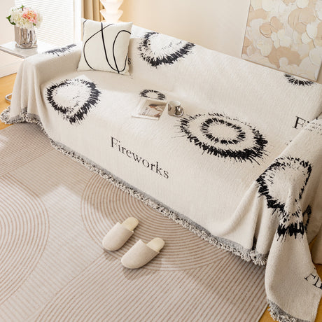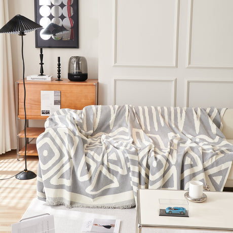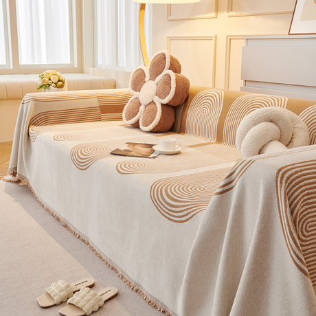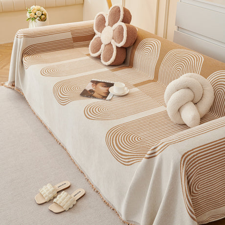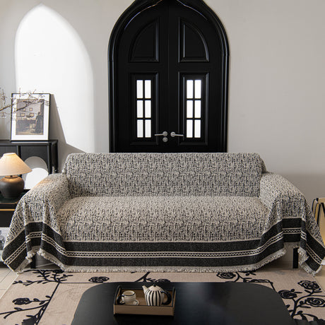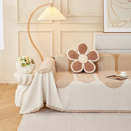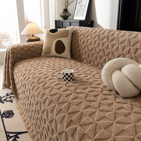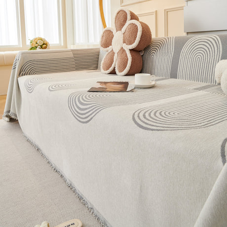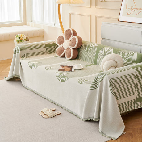 Chenille Geometric Sofa Throw Blanket, Boho Washable Furniture Throw Covers for Sofa