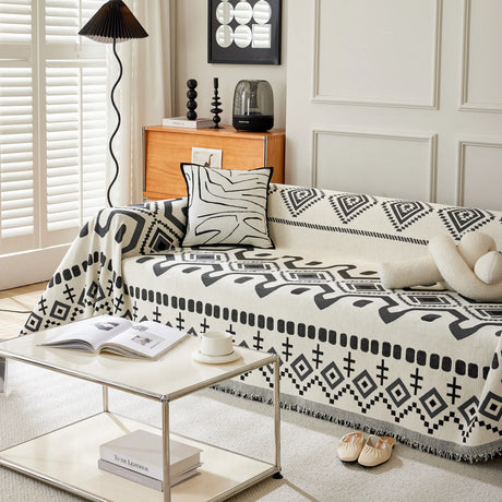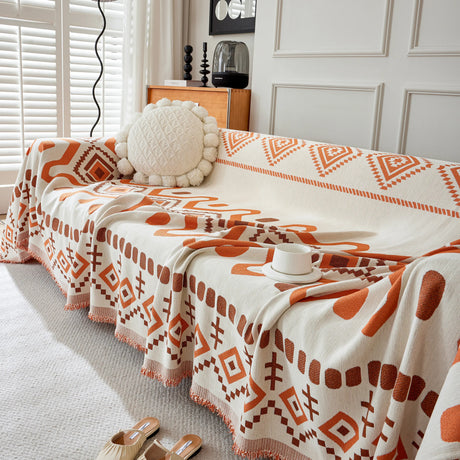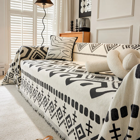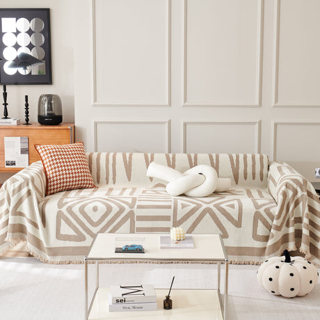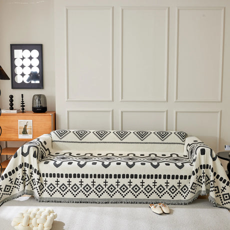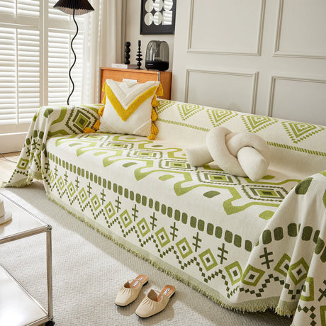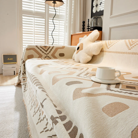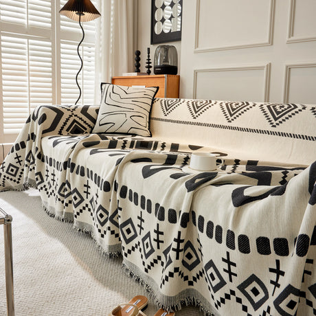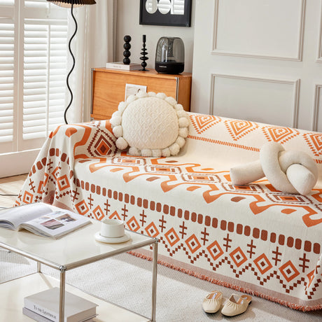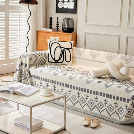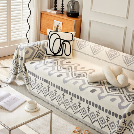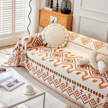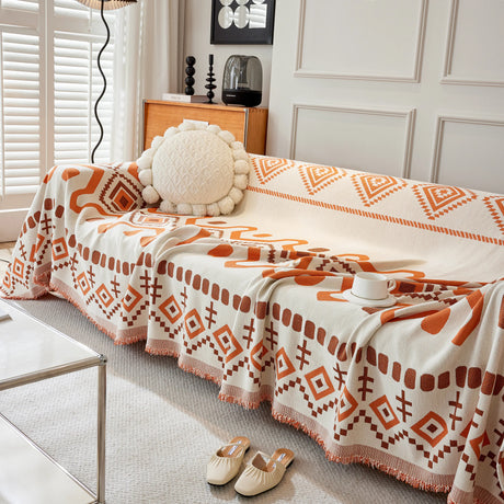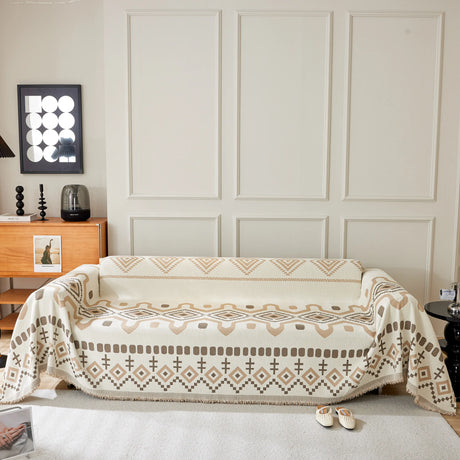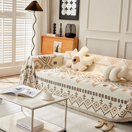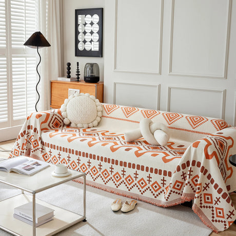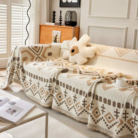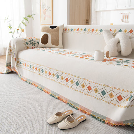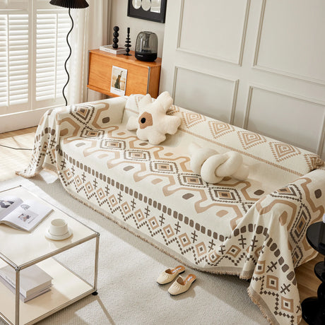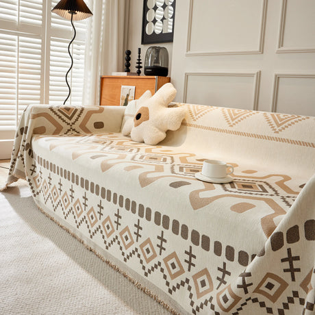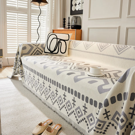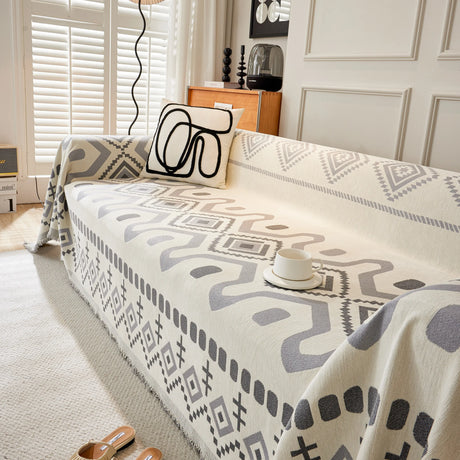 Bohemian Geometric Sofa Throw Cover, Cozy & Protective Ethnic-Inspired Couch Cover