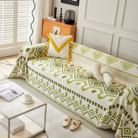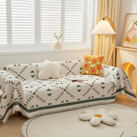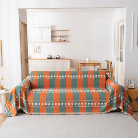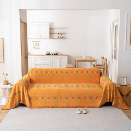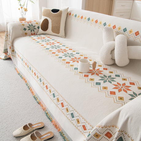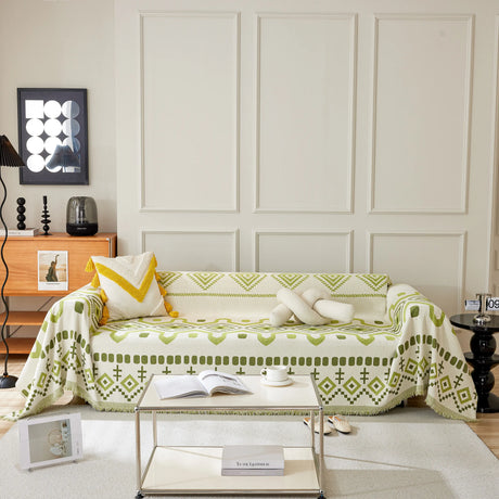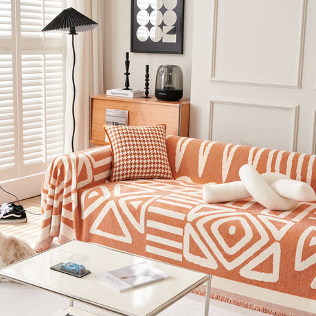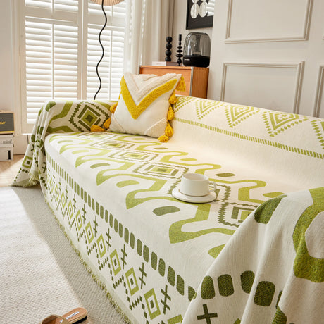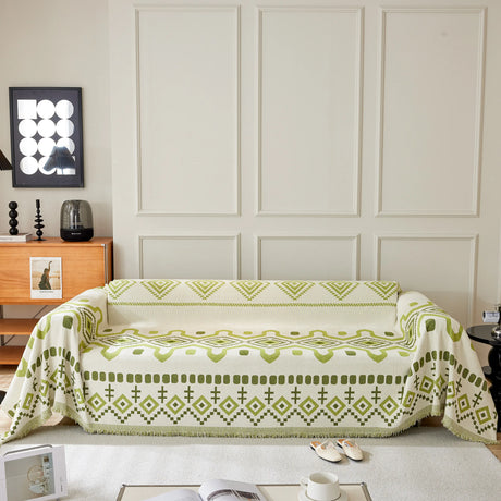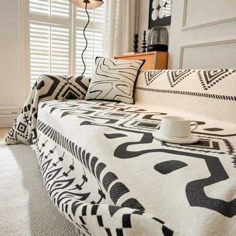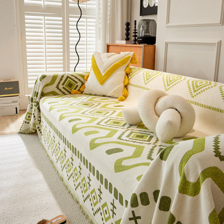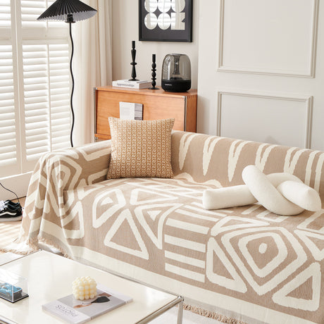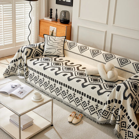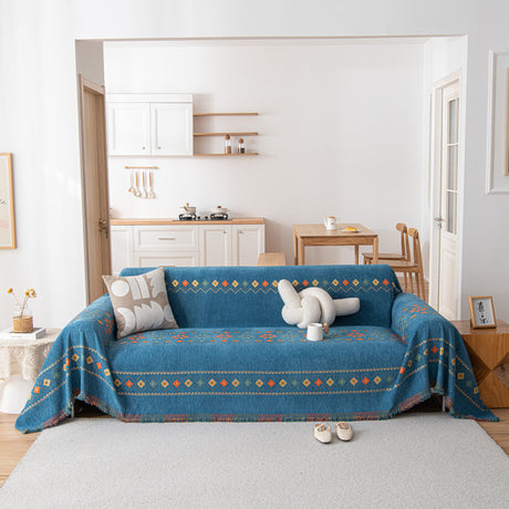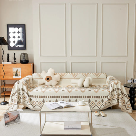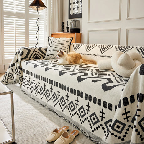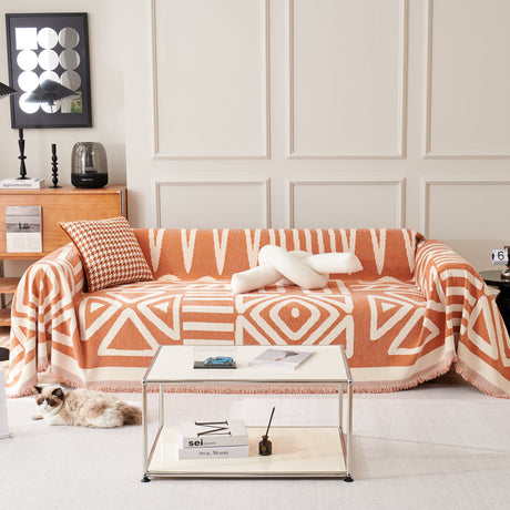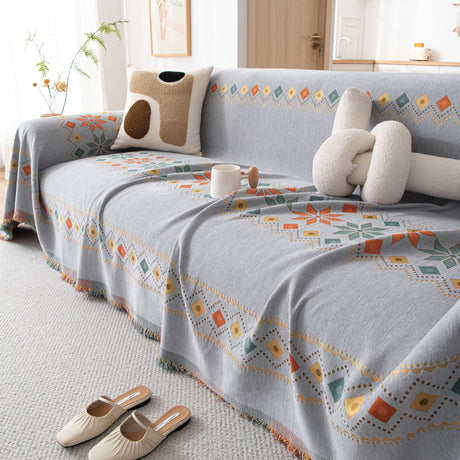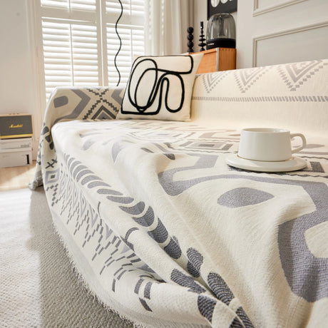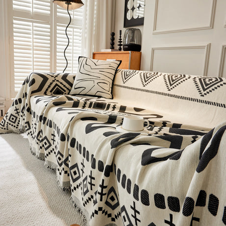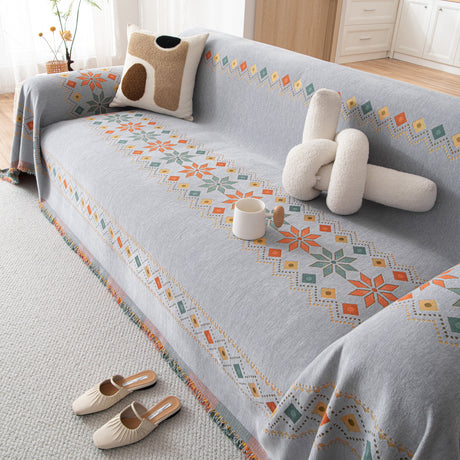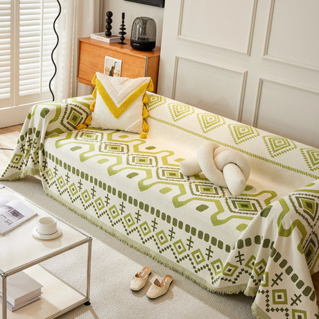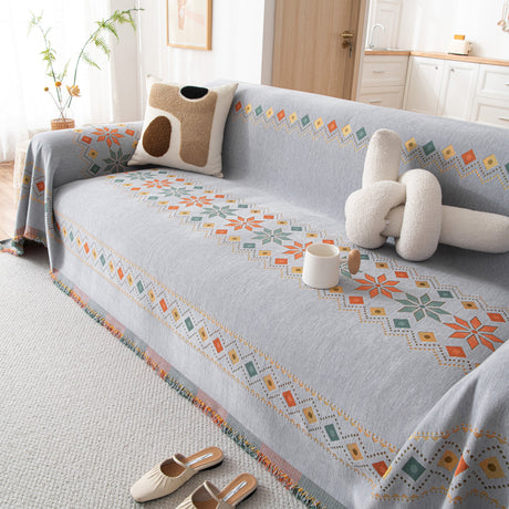 Bohemian Geometric Sofa Throw Cover, Cozy & Protective Ethnic-Inspired Couch Cover