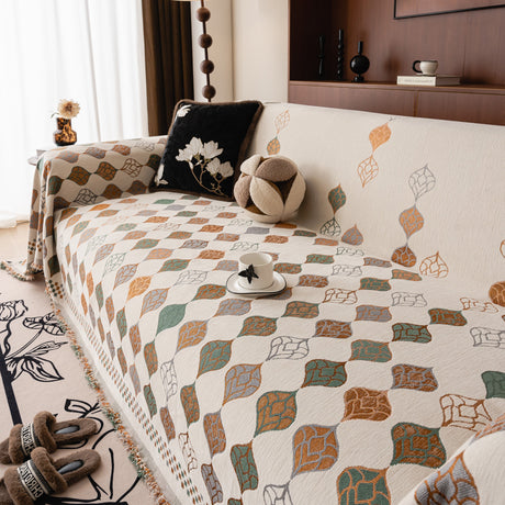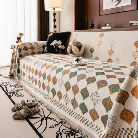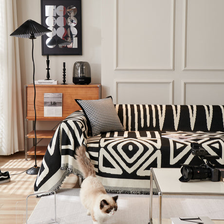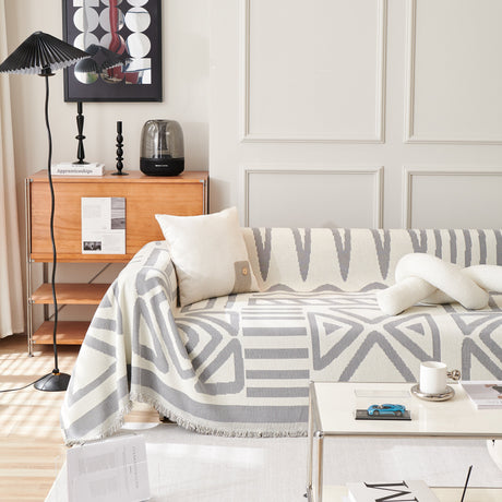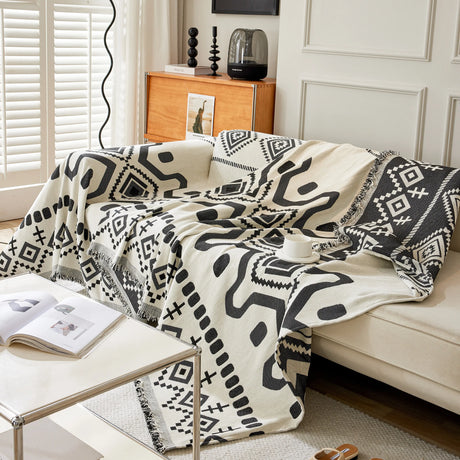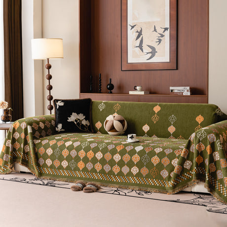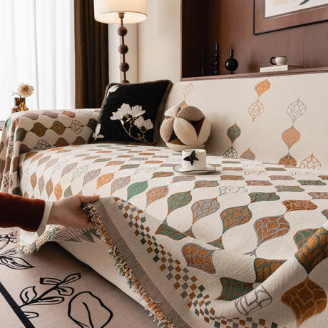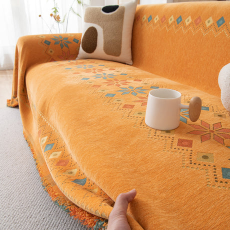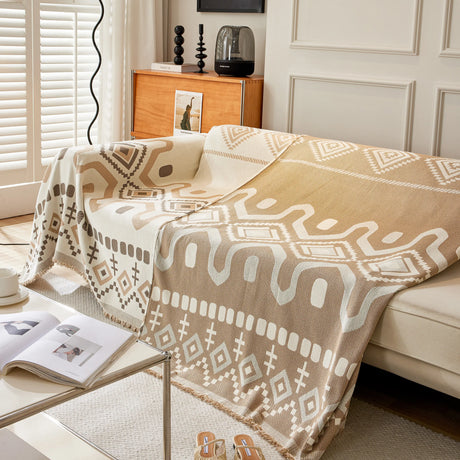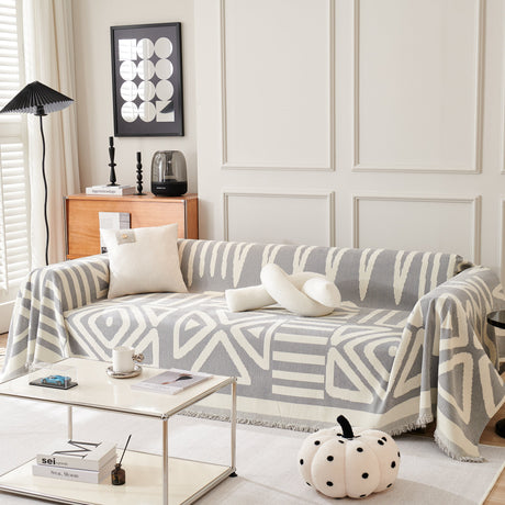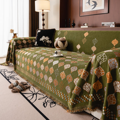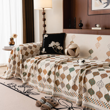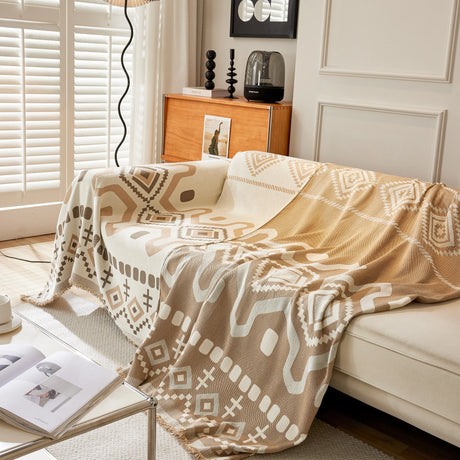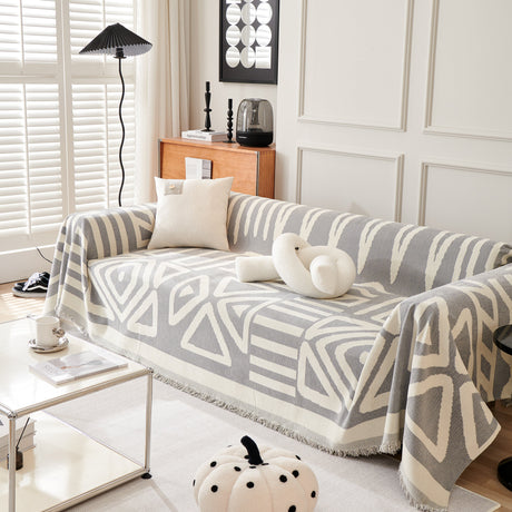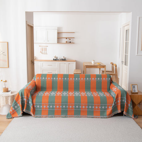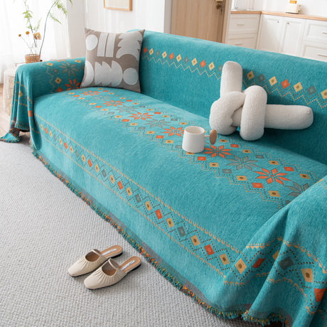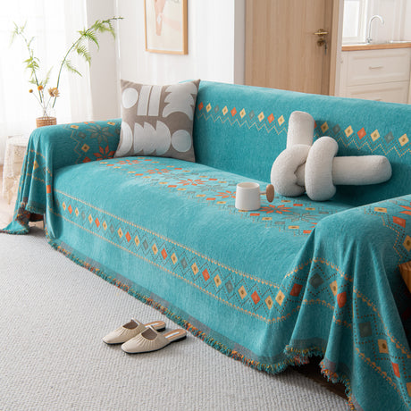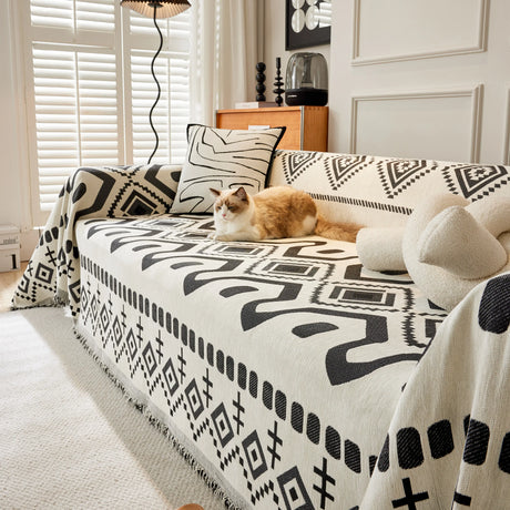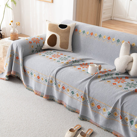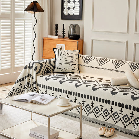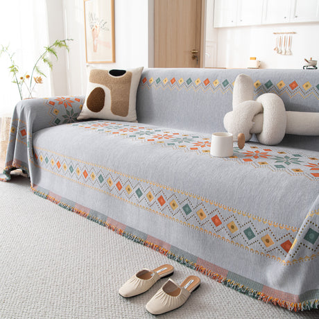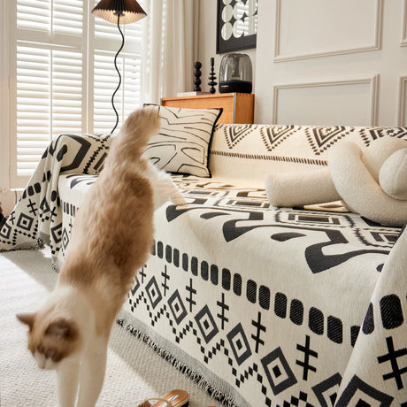 Bohemian Geometric Sofa Throw Cover, Cozy & Protective Ethnic-Inspired Couch Cover
