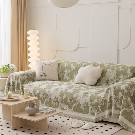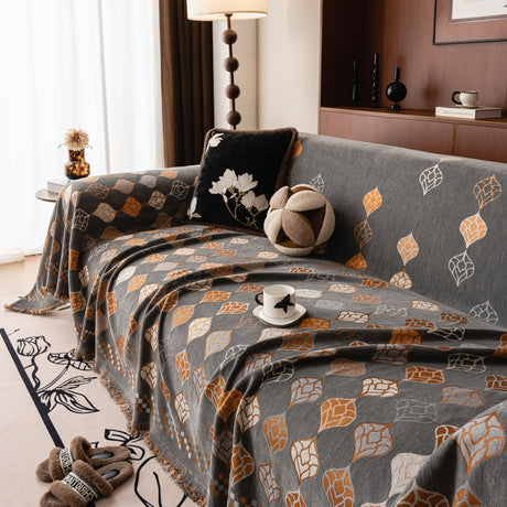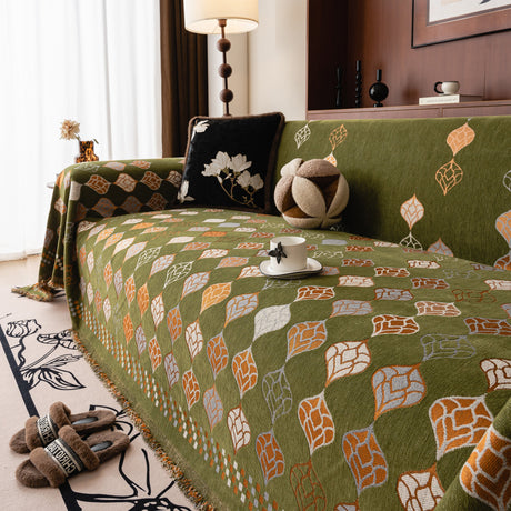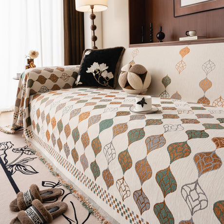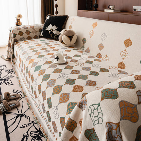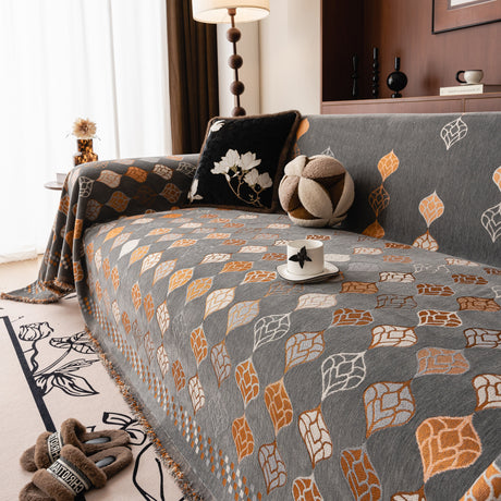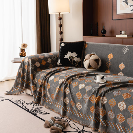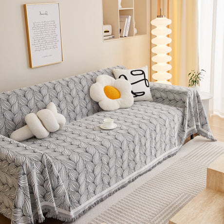 Leaf Universal Furniture Protector Chenille Couch Cover, Large Couch Cover Blanket for Couch Sofa