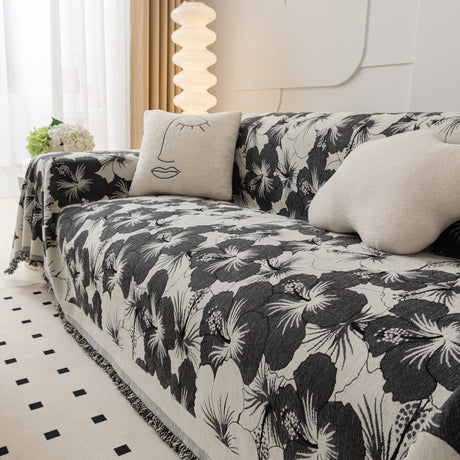 Chenille Blossoming Flowers Couch Covers, Couch Protector Blanket for Couches, Pet Furniture Throw