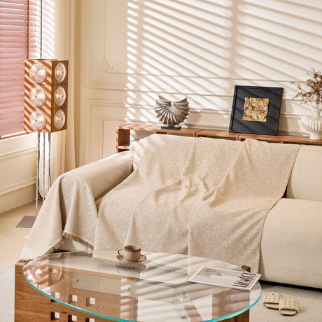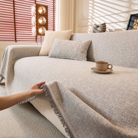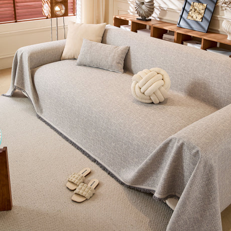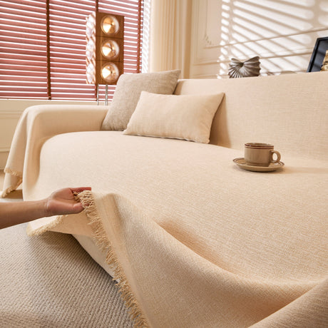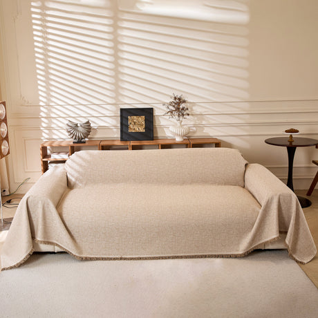 Natural Textured Linen Couch Cover, Breathable & Hypoallergenic Furniture Protector