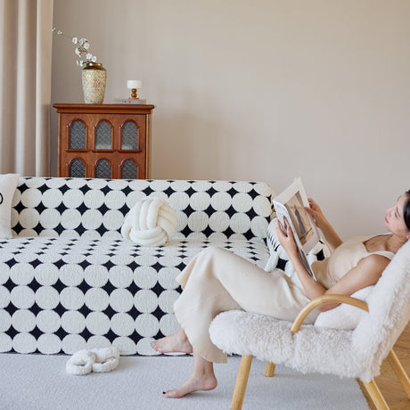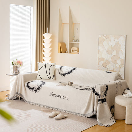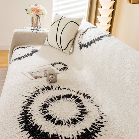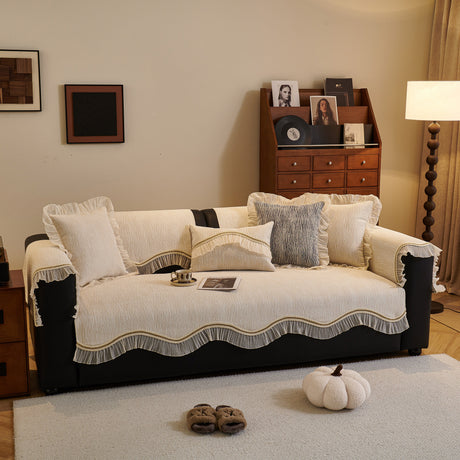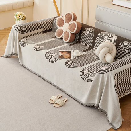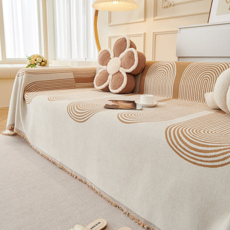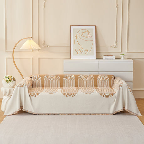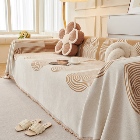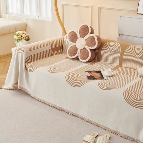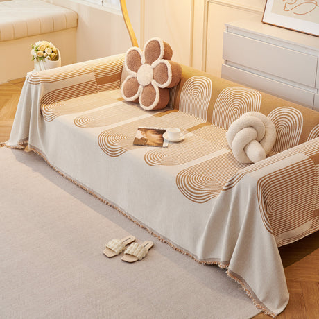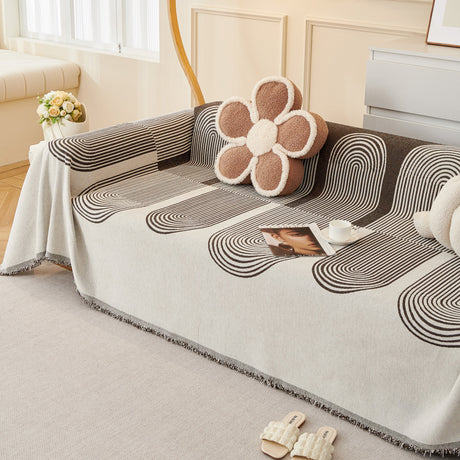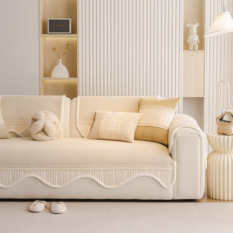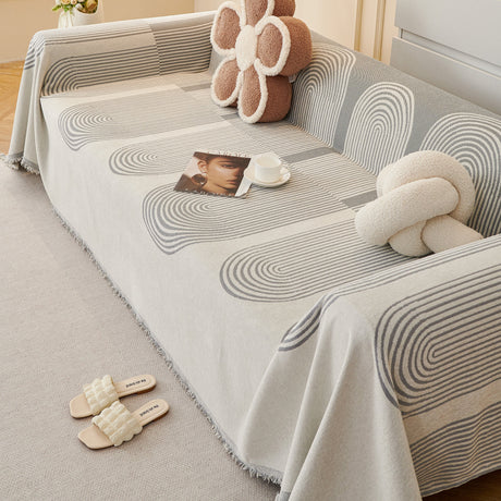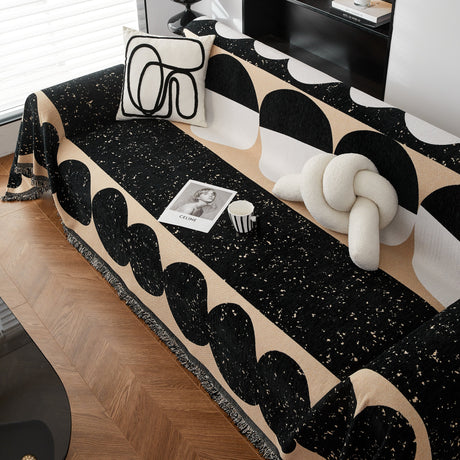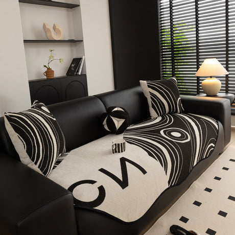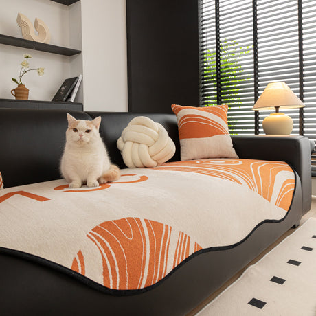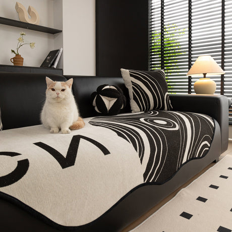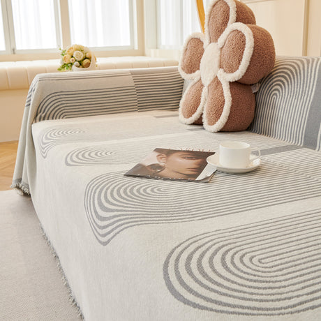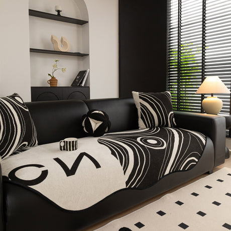 Abstract Art Sofa Cover with Wave Edge, Non Slip Couch Cover for Stylish Homes