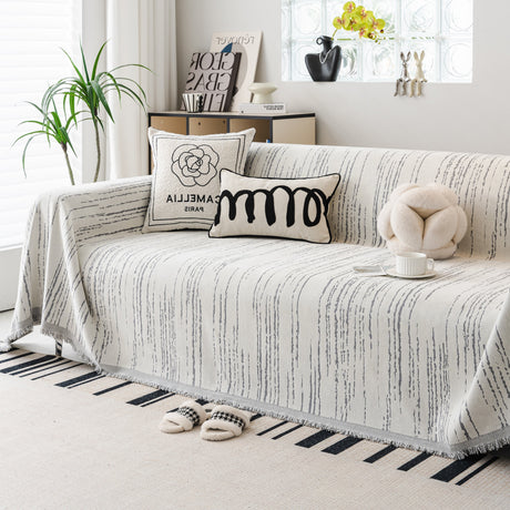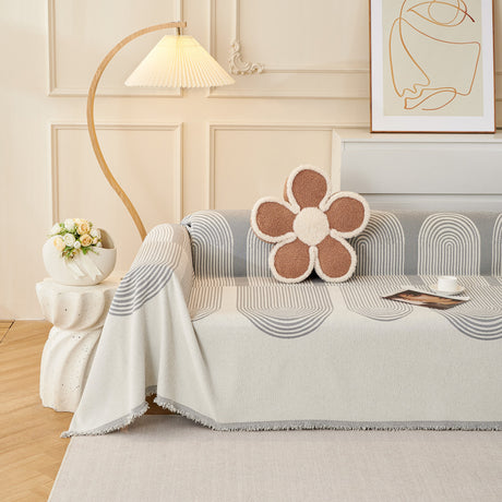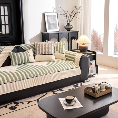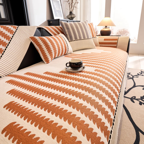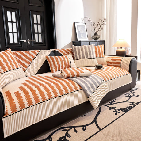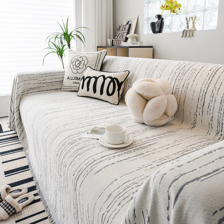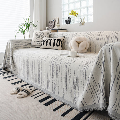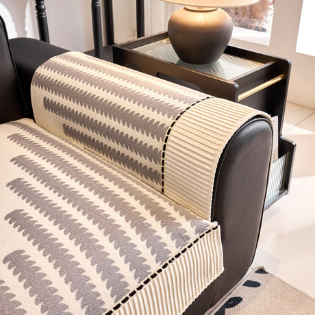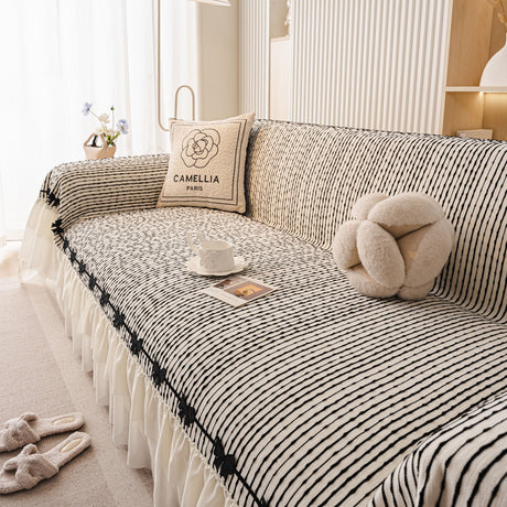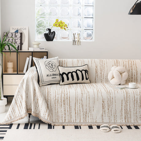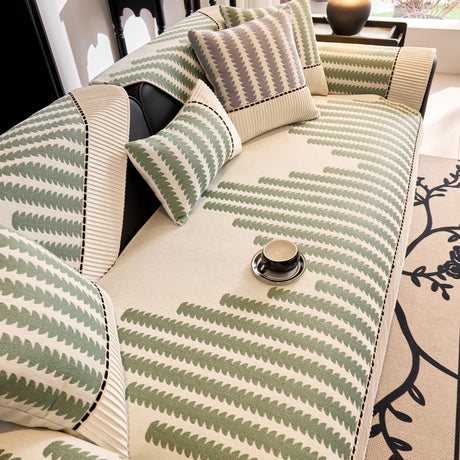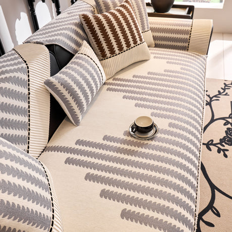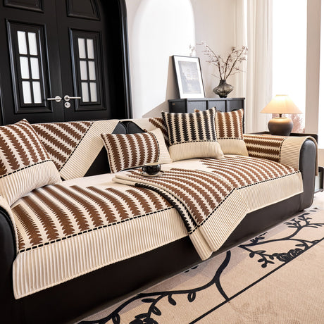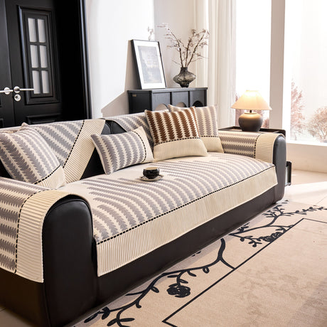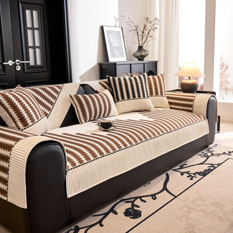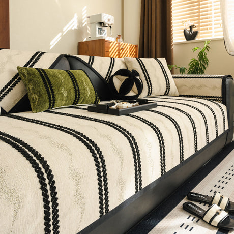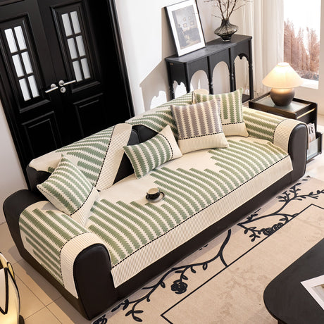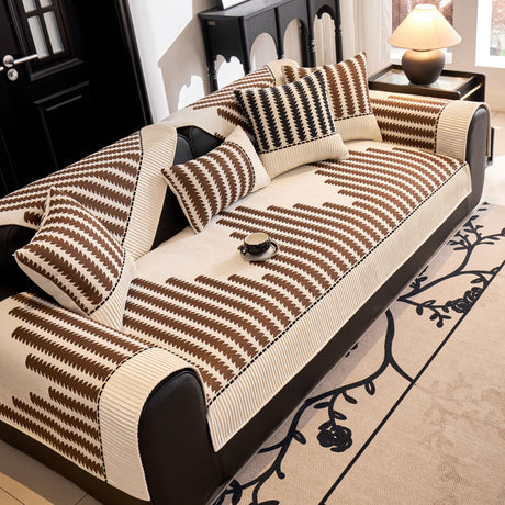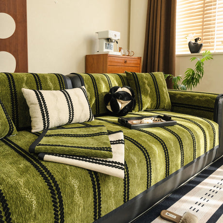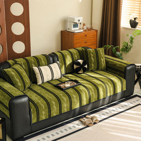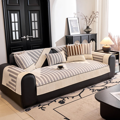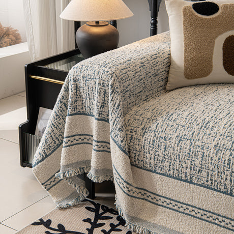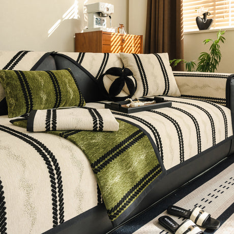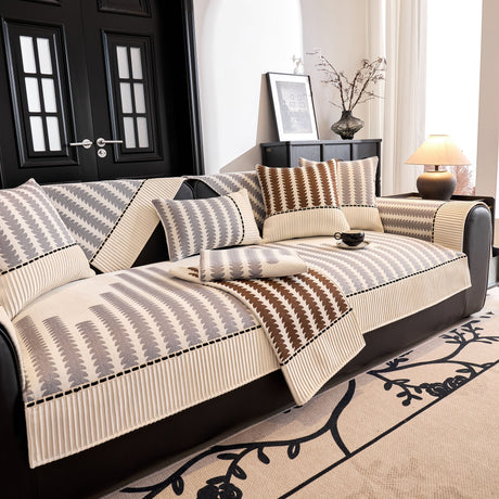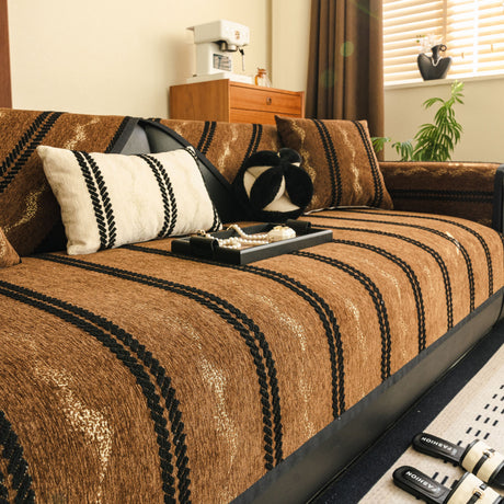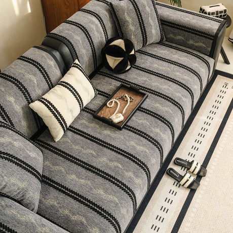 Non-Slip Sofa Cover with Thick Chenille Texture Woven Stripe Couch Protector Throw