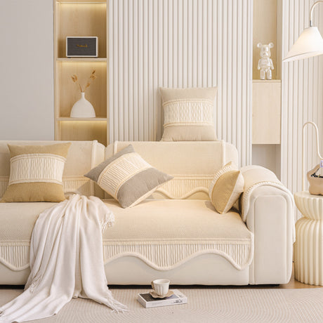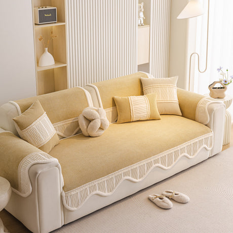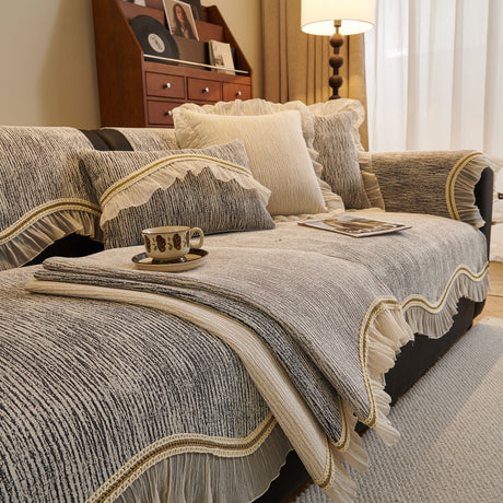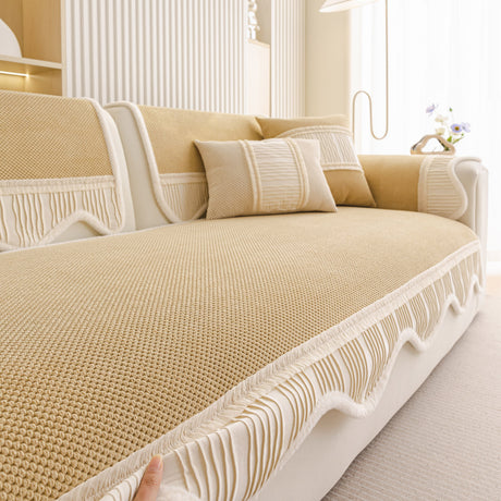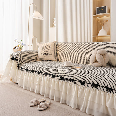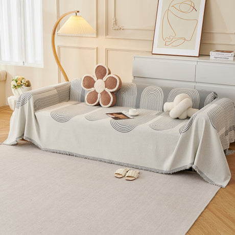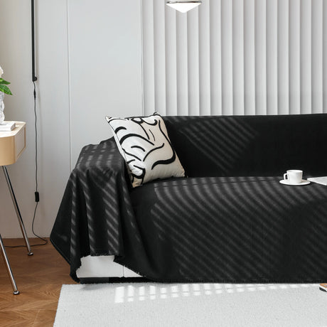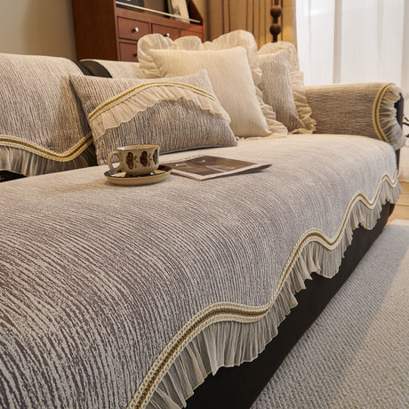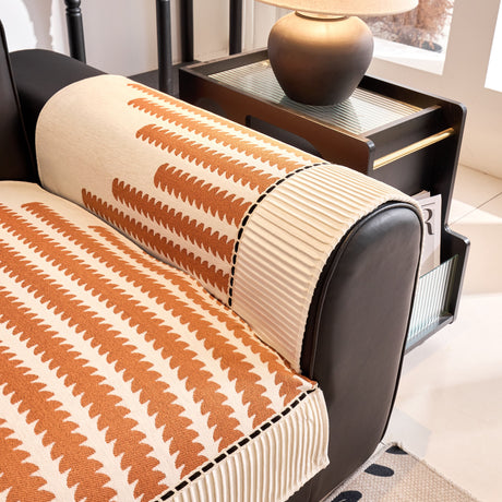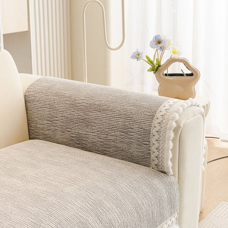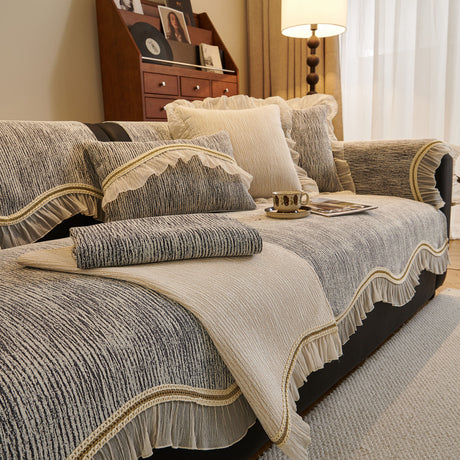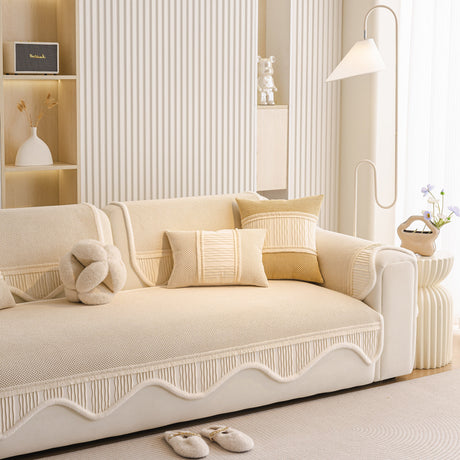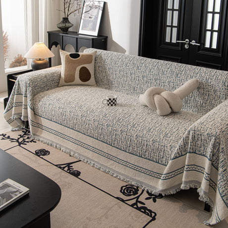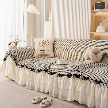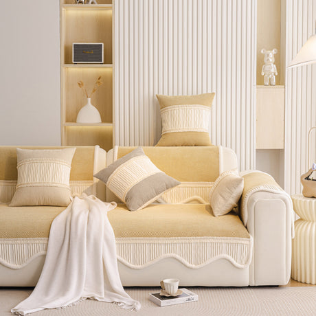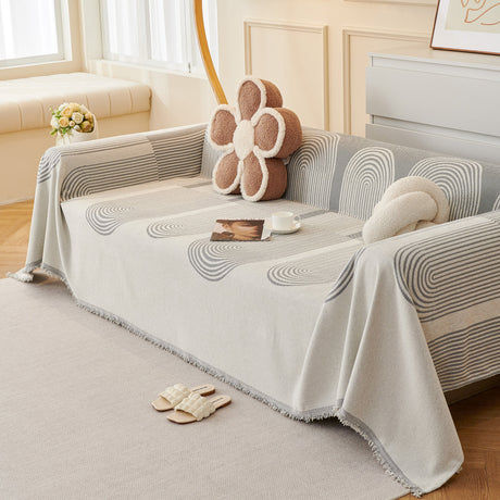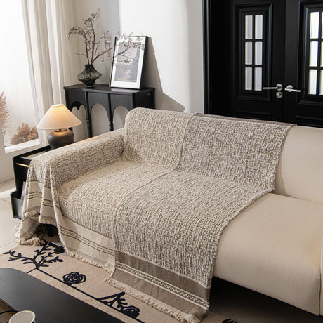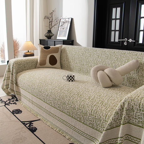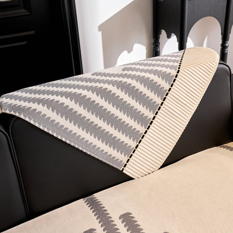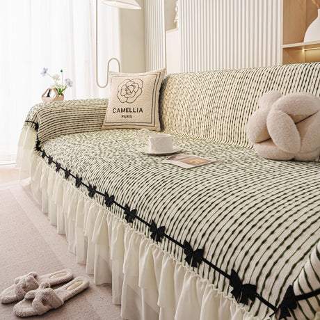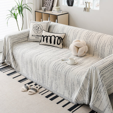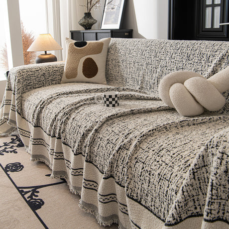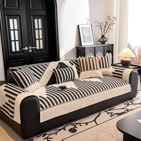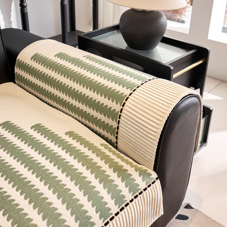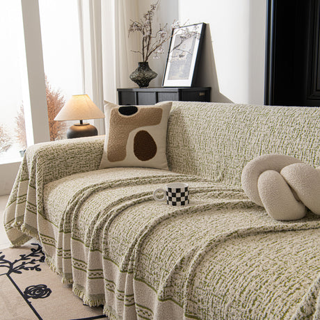 Non-Slip Sofa Cover with Thick Chenille Texture Woven Stripe Couch Protector Throw