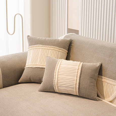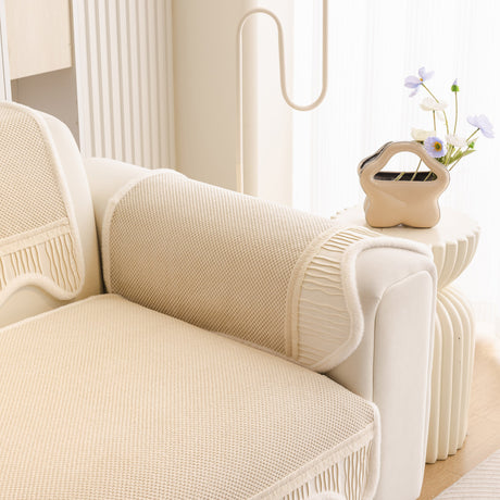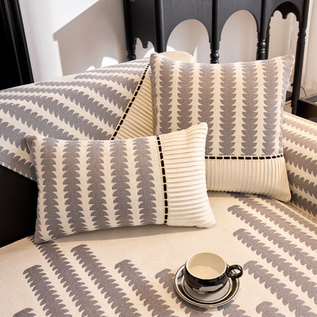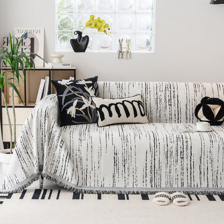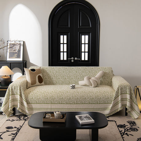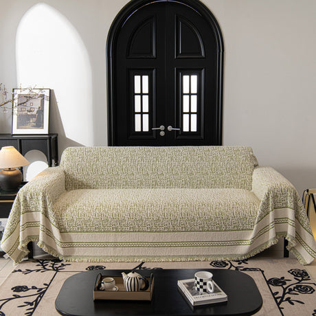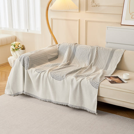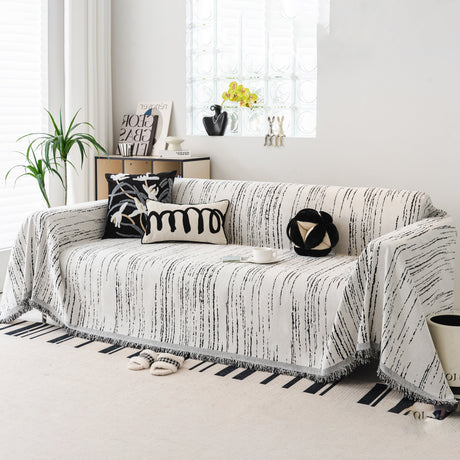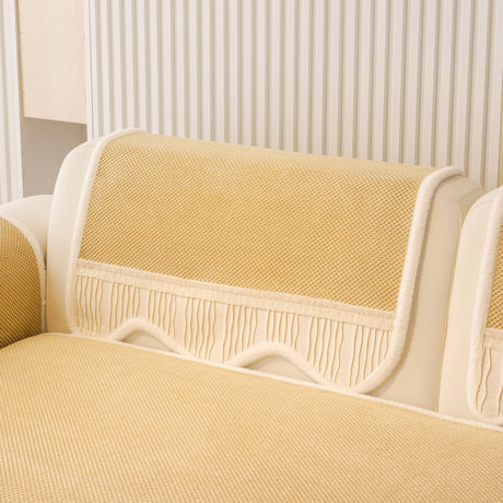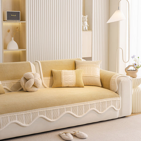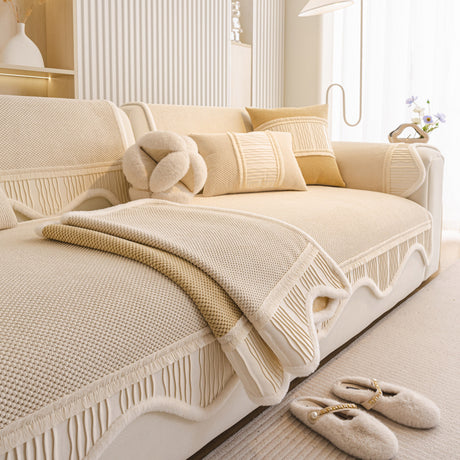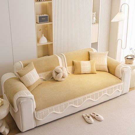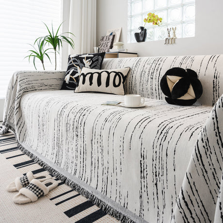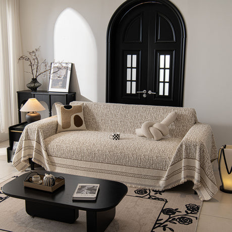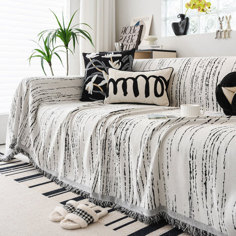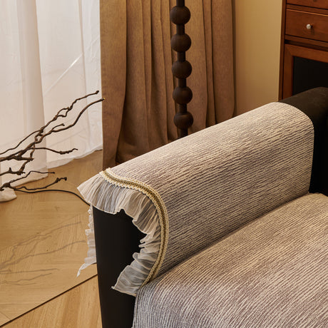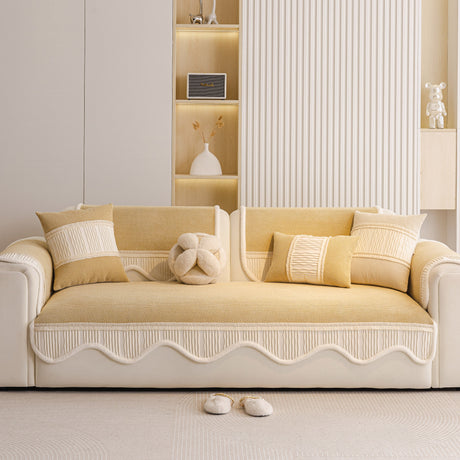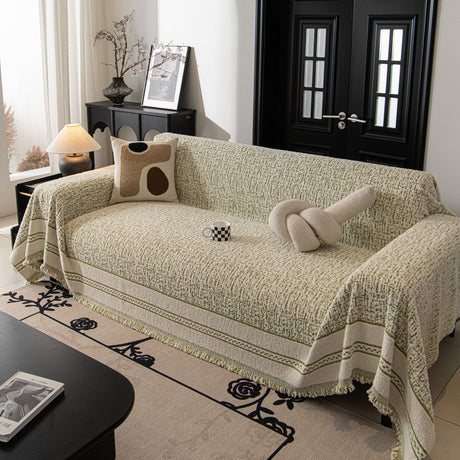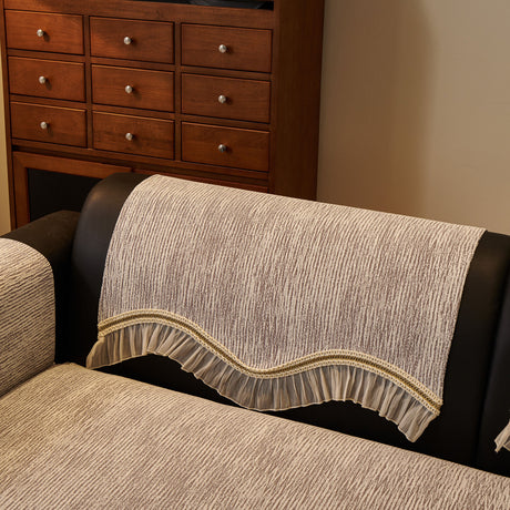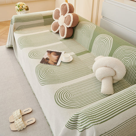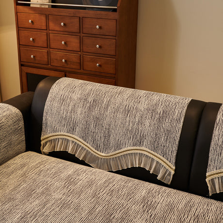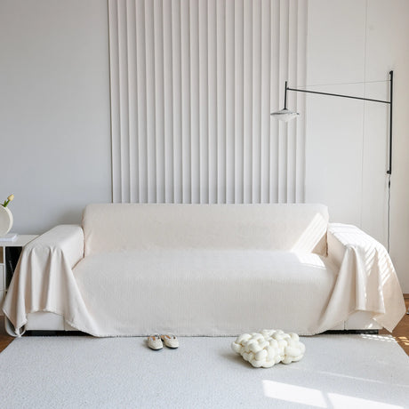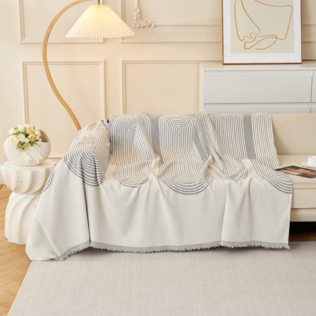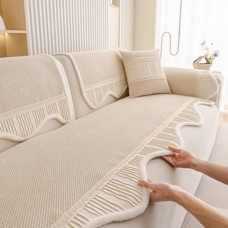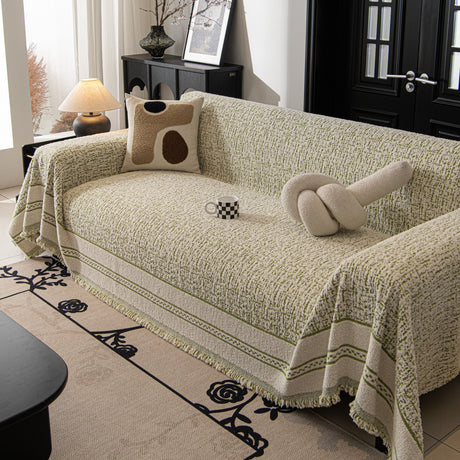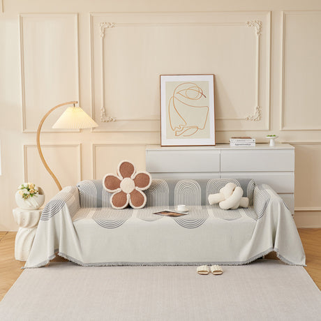 Non-Slip Sofa Cover with Thick Chenille Texture Woven Stripe Couch Protector Throw