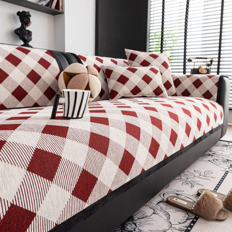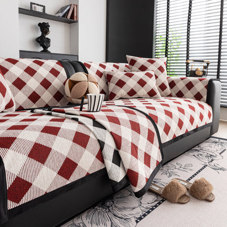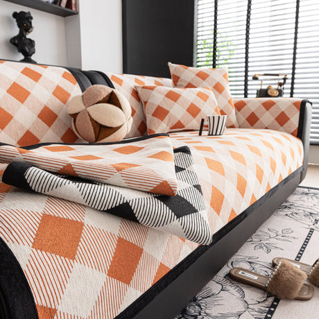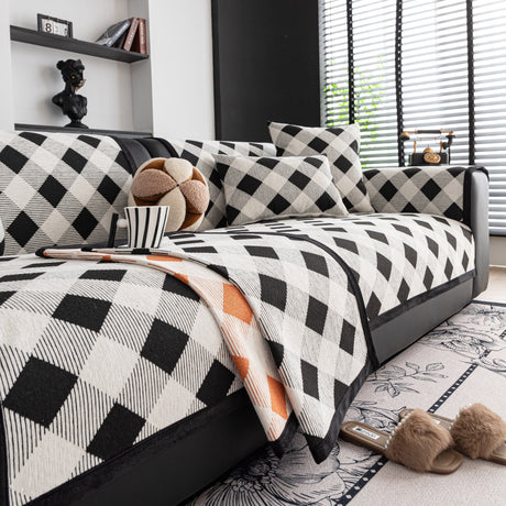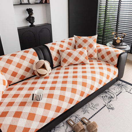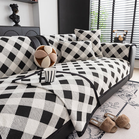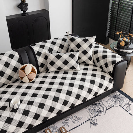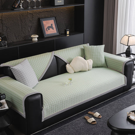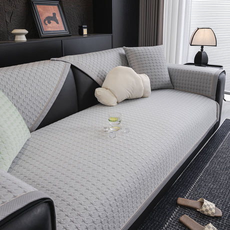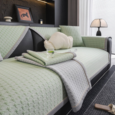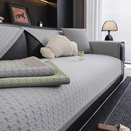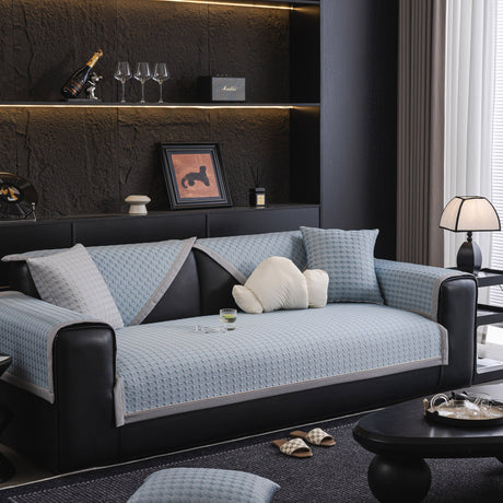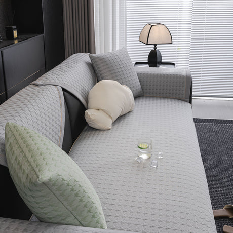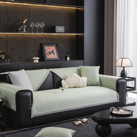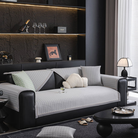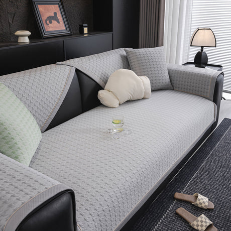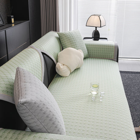 Houndstooth Ice Silk Breathable Sofa Cover, Modern Non-Slip Summer Couch Protector