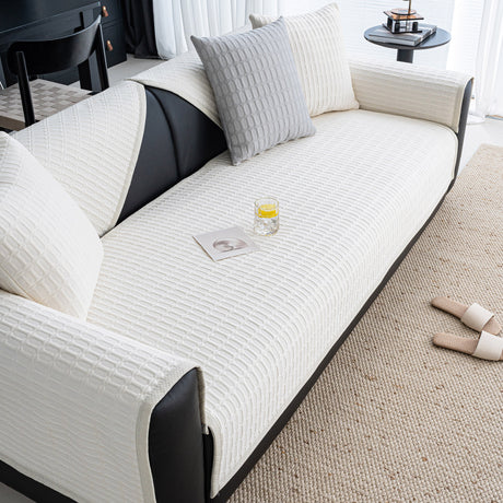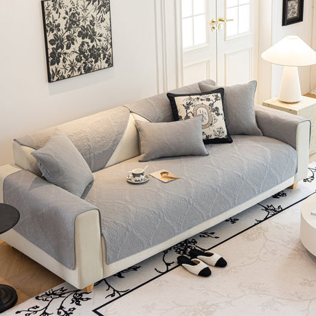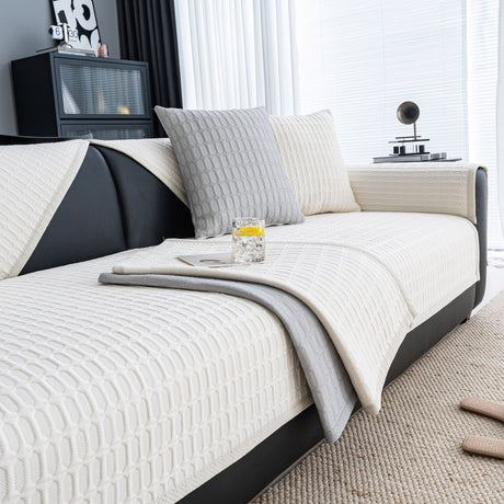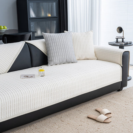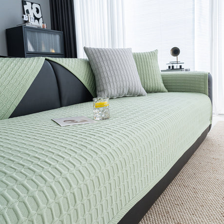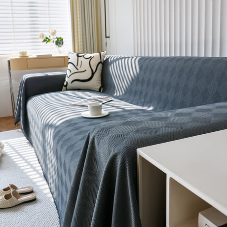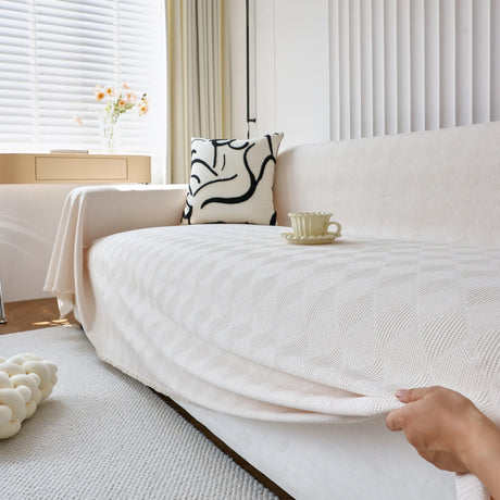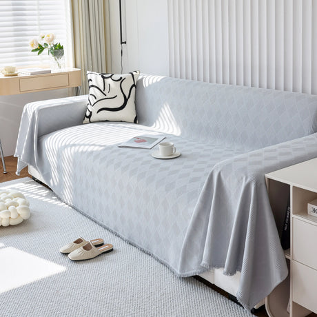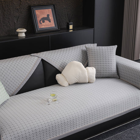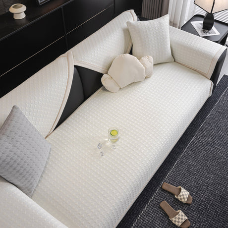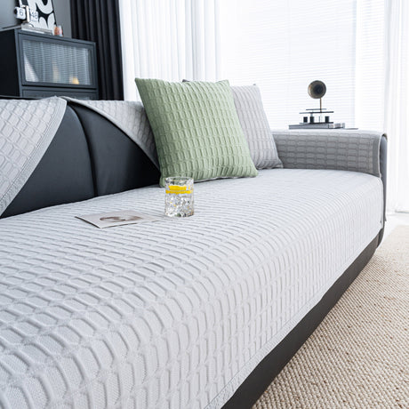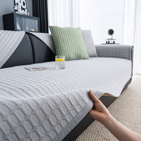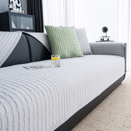 Geometric Textured Couch Slipcover Protector Non-Slip Ice Silk Sofa Cover for Couch