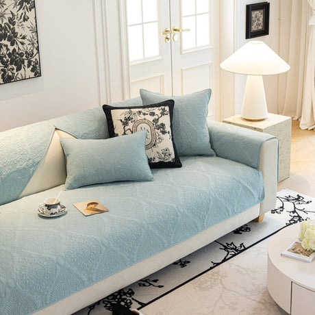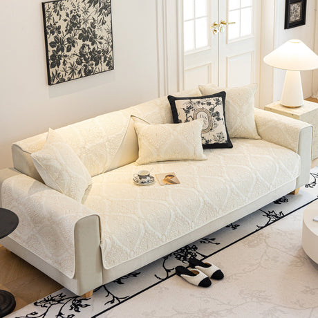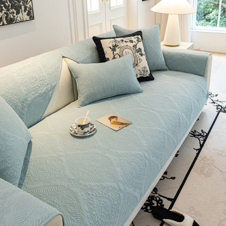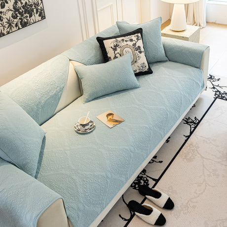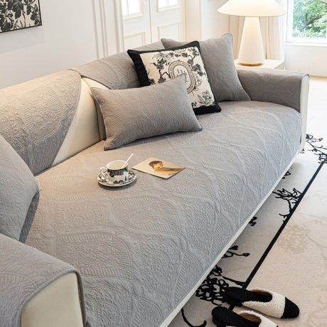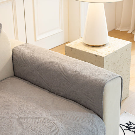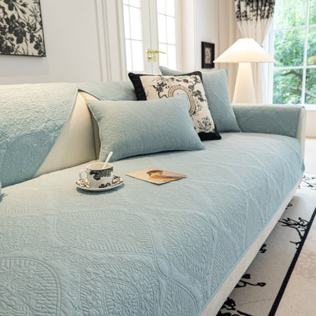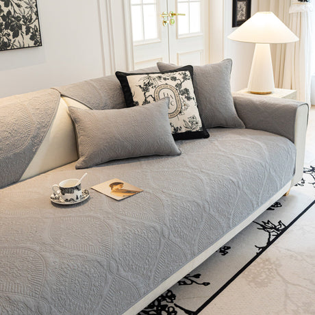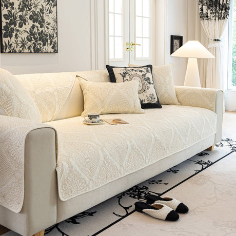 Baroque Sofa Cover – Quilted Cotton, Non-Slip, Washable with Ornate Embroidery