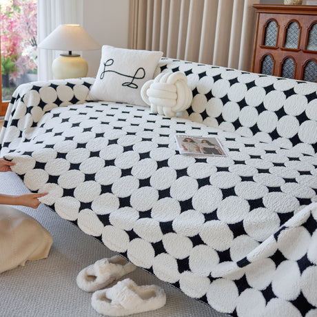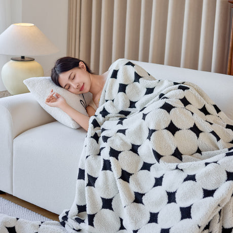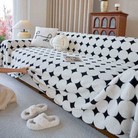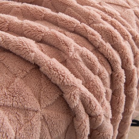 Geometric Jacquard Plush Warm Sofa Couch Cover Coral Fleece Throw Blanket for Couch