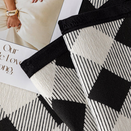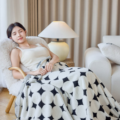 Jacquard Fleece Houndstooth Warm Cozy Couch Cover Blanket Decorative Throws for Sofas