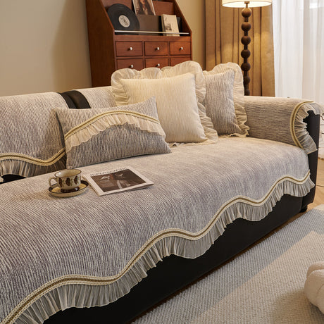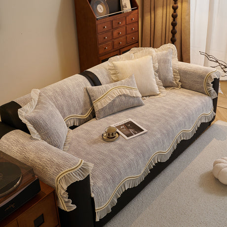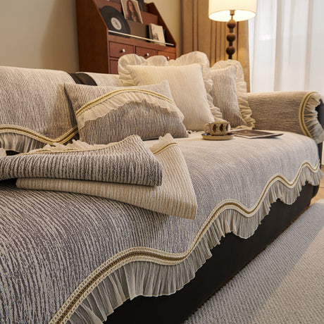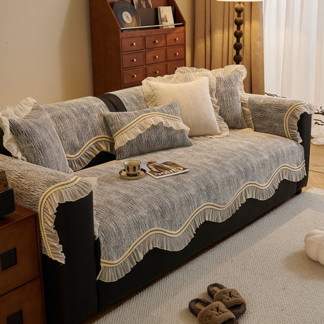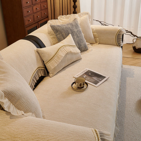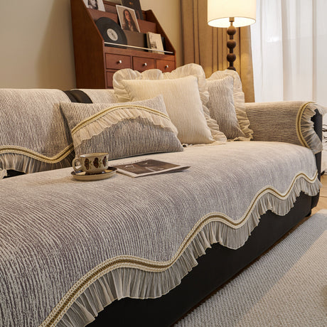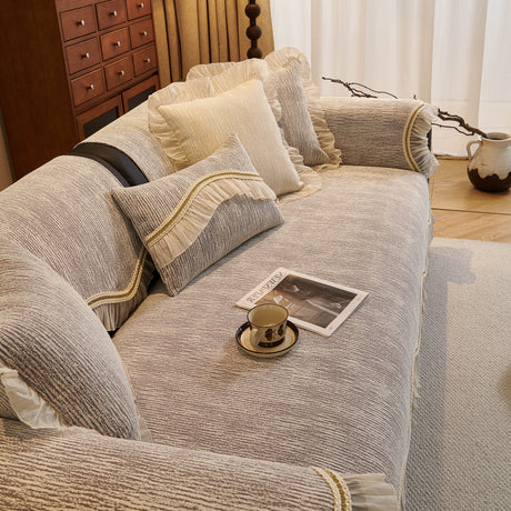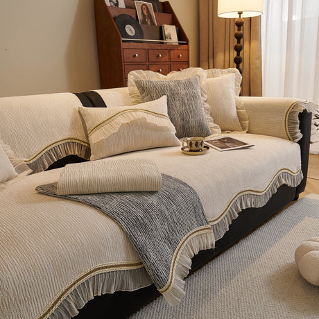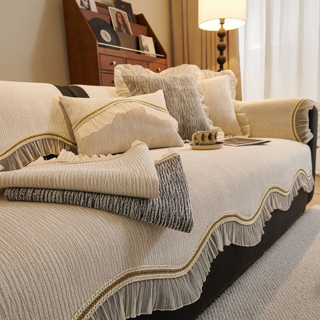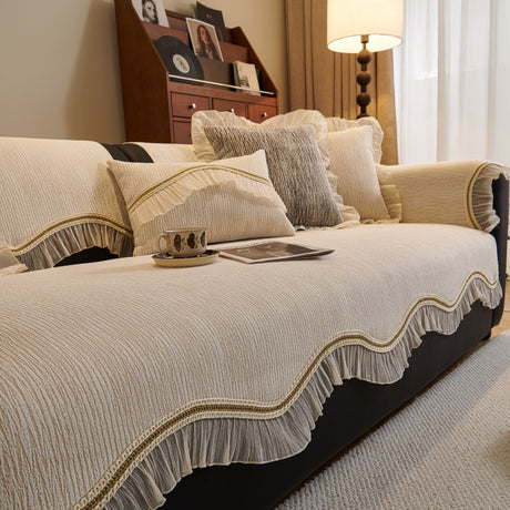 French Vintage Style Couch Cover with Skirt, Non-Slip Sectional Furniture Covers