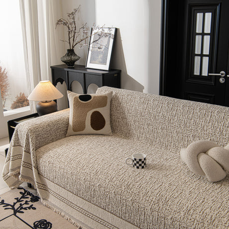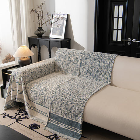 Textured Woven Furniture Protector for Couch, Rustic Farmhouse Sofa Throw Blanket