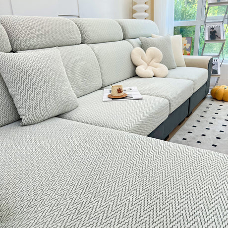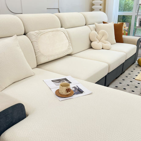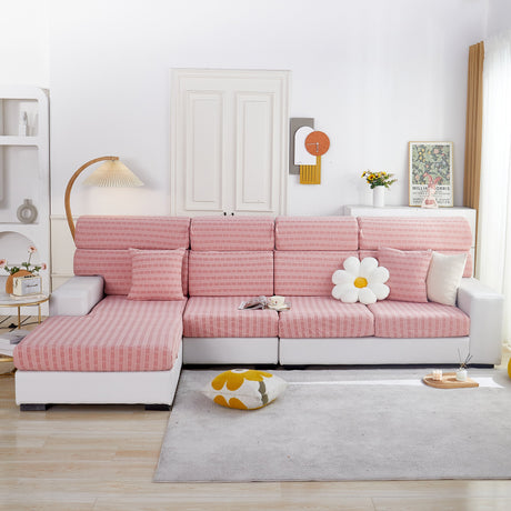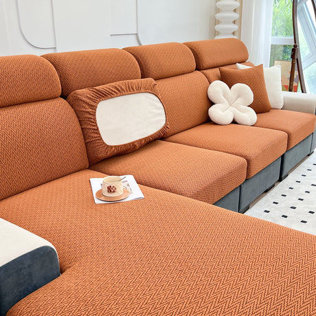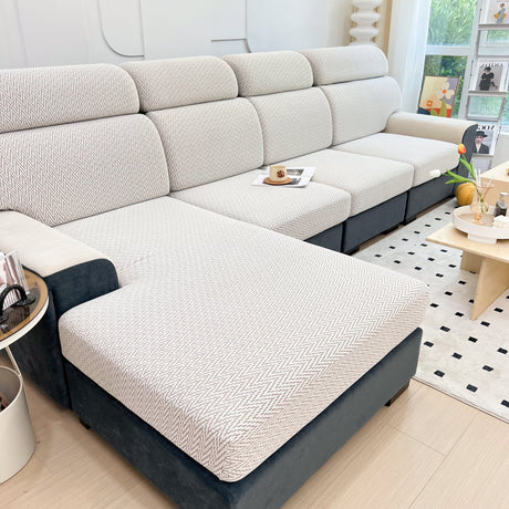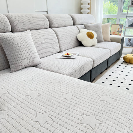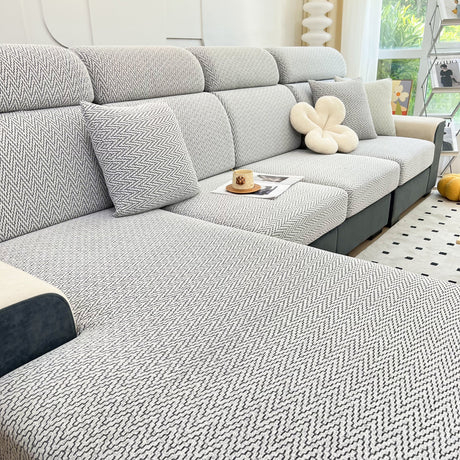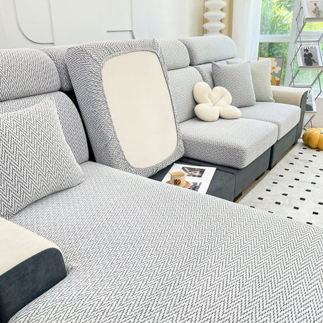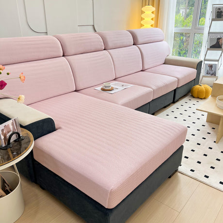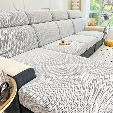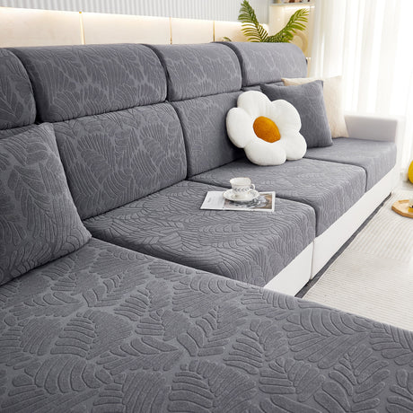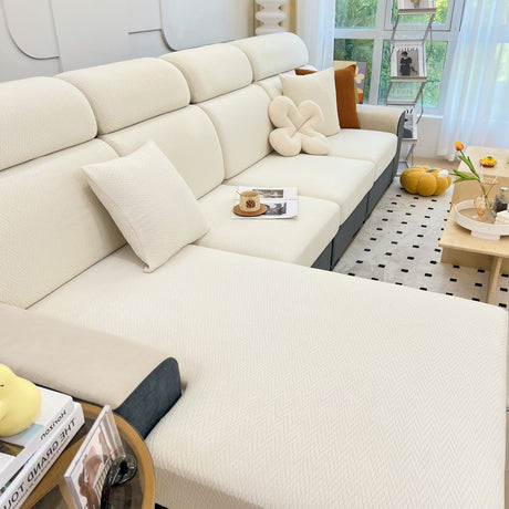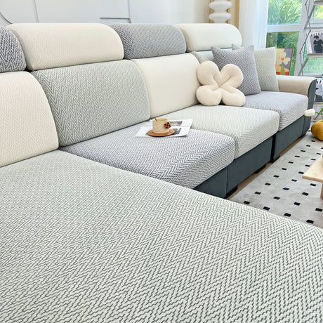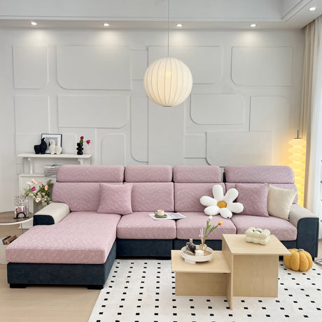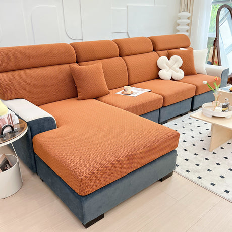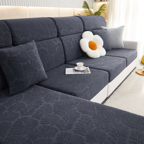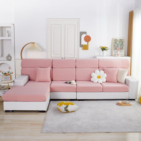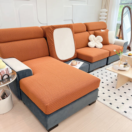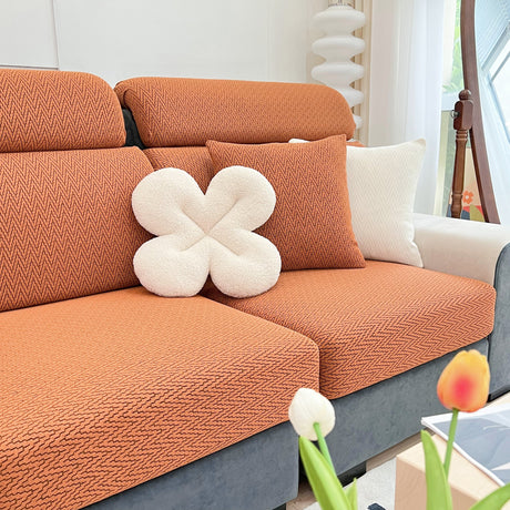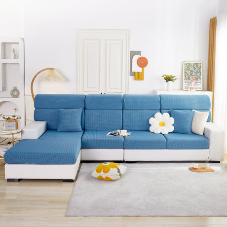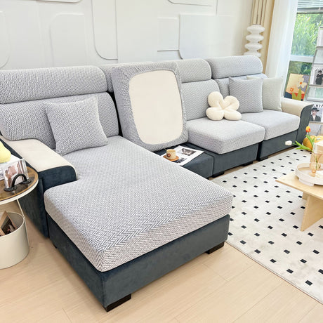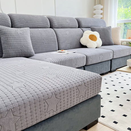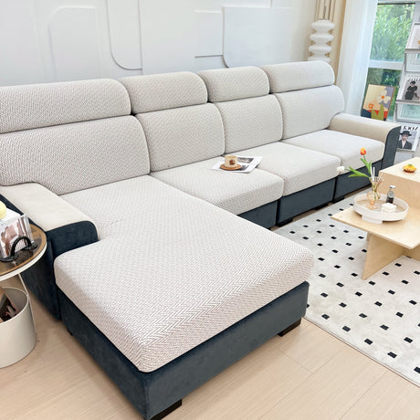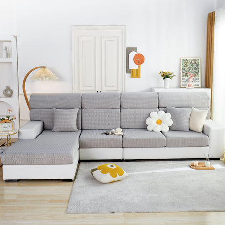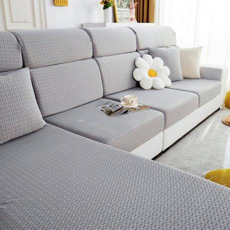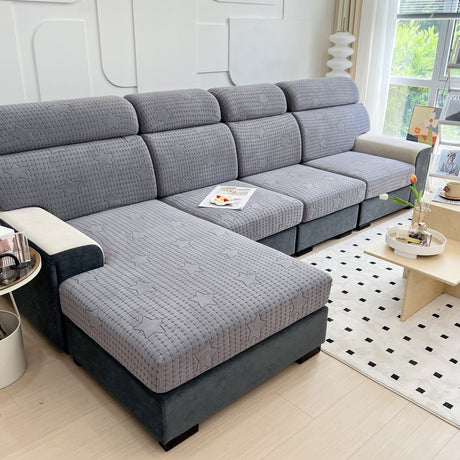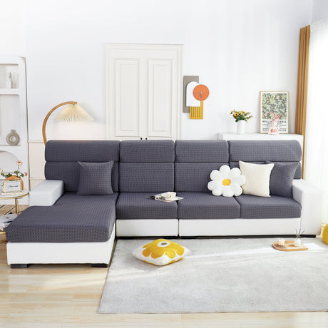 Happy Puzzle Jacquard Fleece Stretchable Cushion Cover, Non-Slip L Shaped Couch Covers for Pets