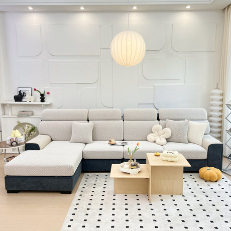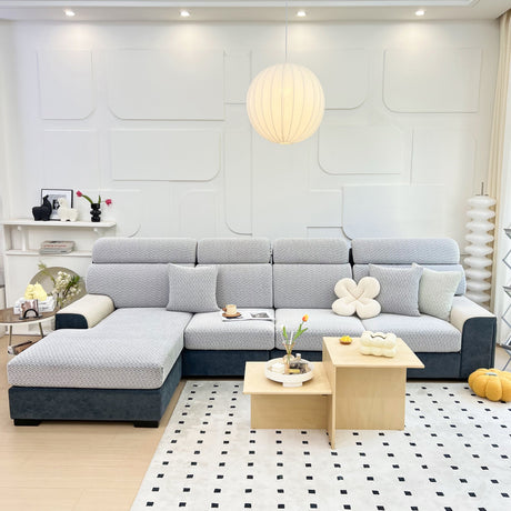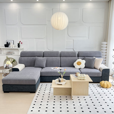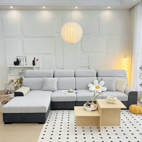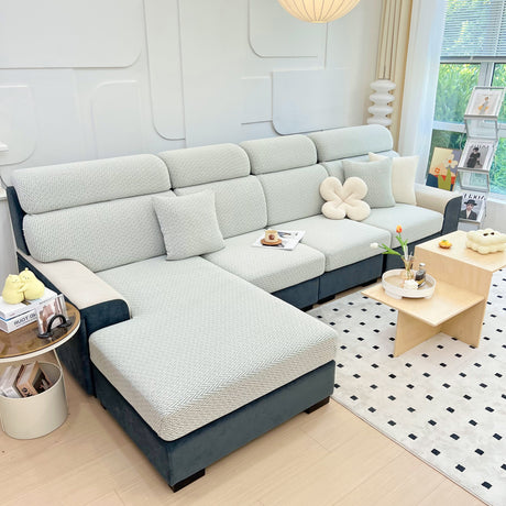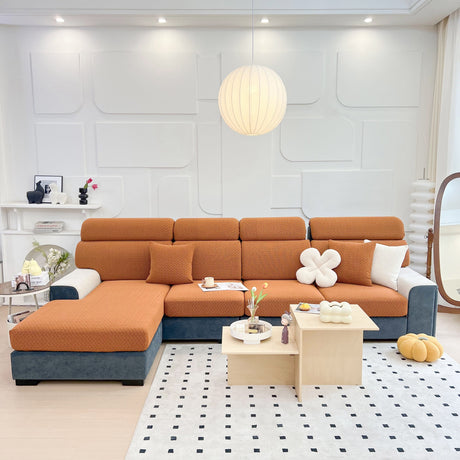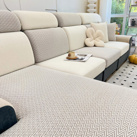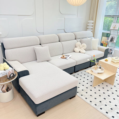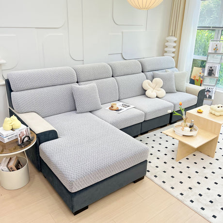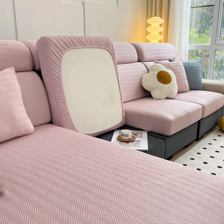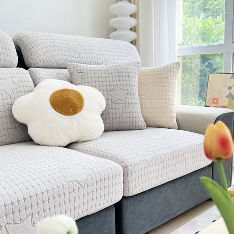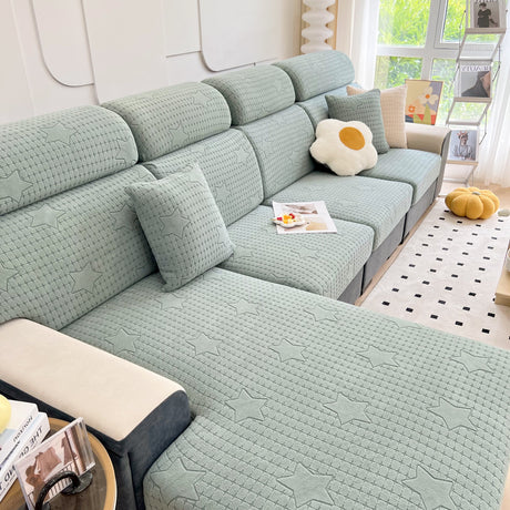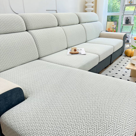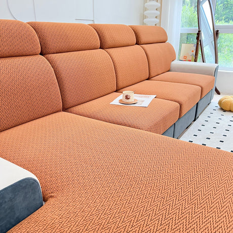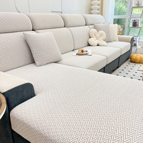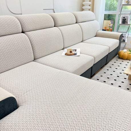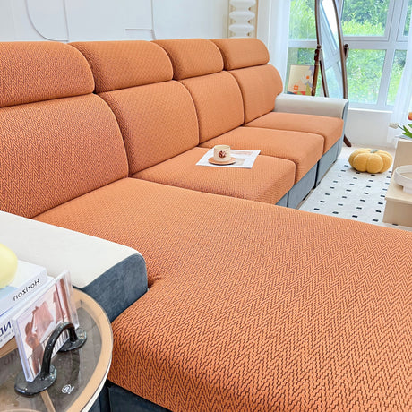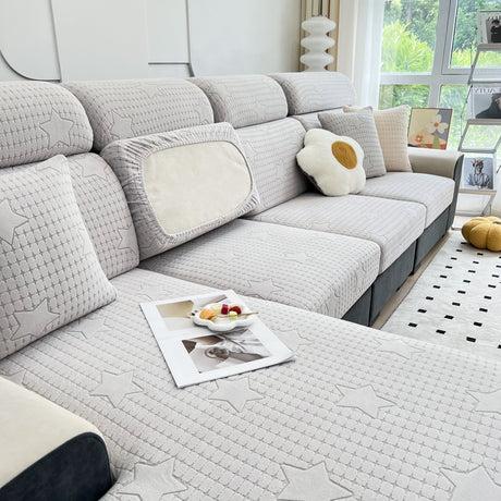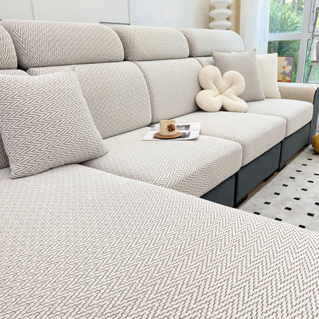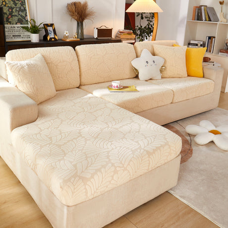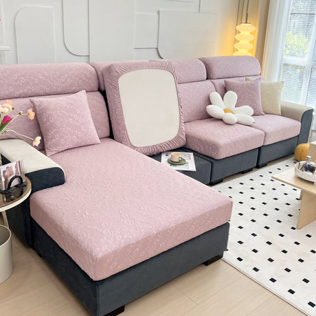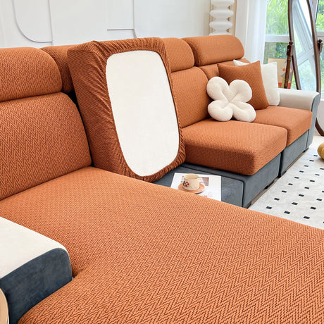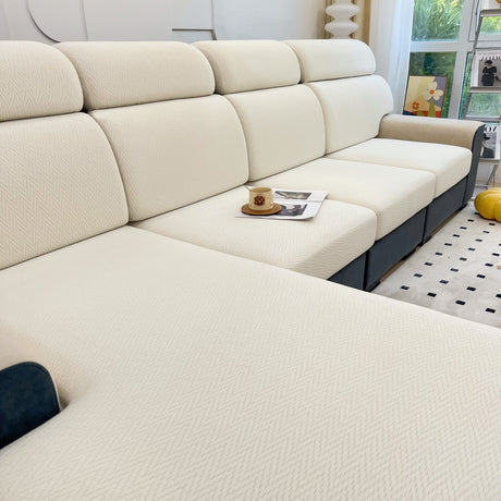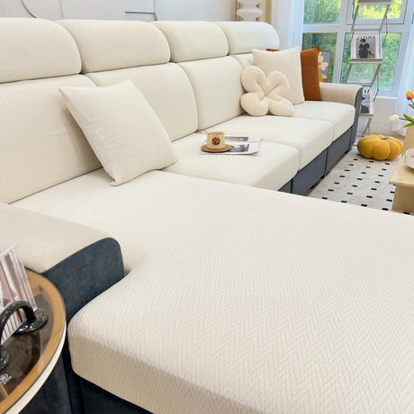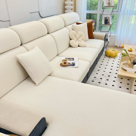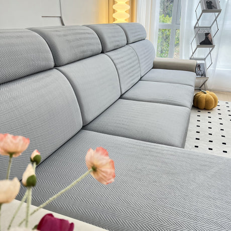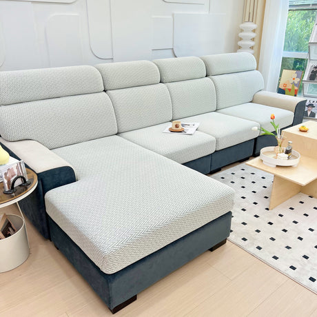 Happy Puzzle Jacquard Fleece Stretchable Cushion Cover, Non-Slip L Shaped Couch Covers for Pets