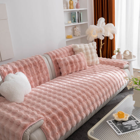 Thick Sofa Cushion Solid Color Faux Fur Fluffy Sofa Cushion Non-Slip Couch Covers