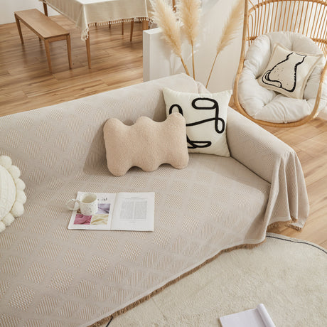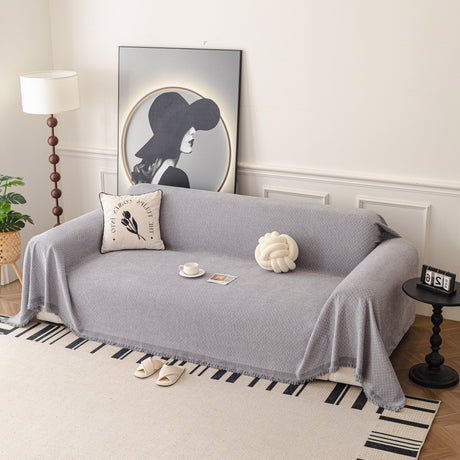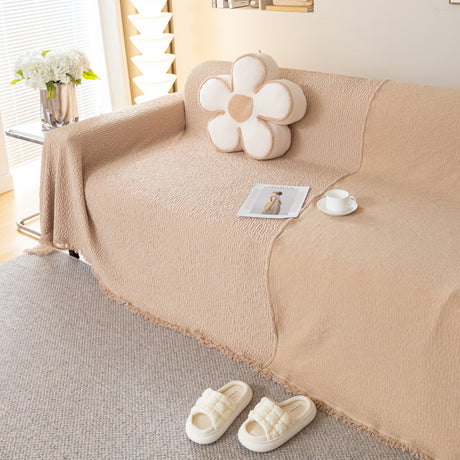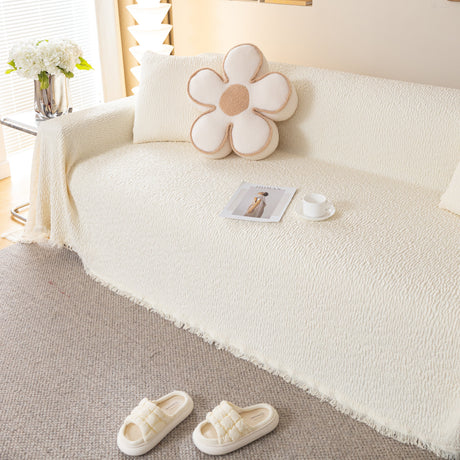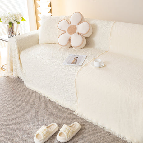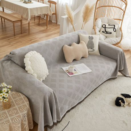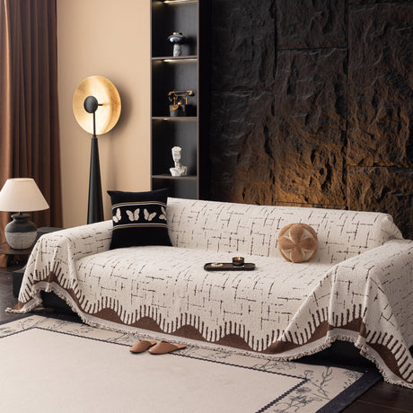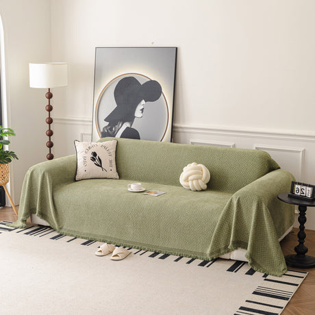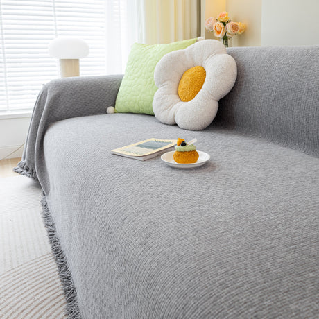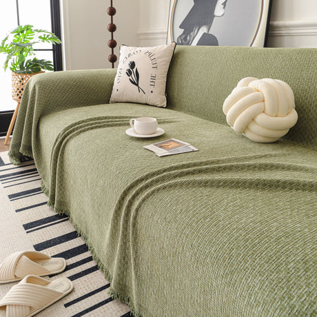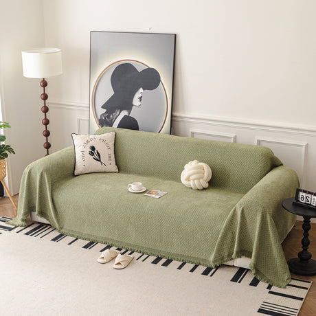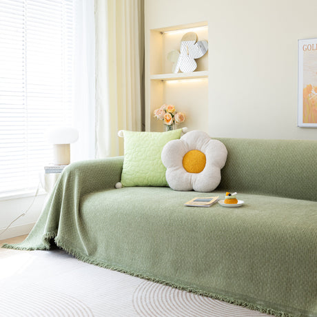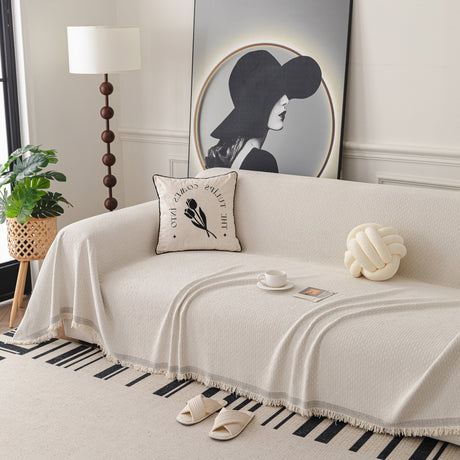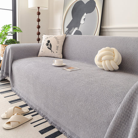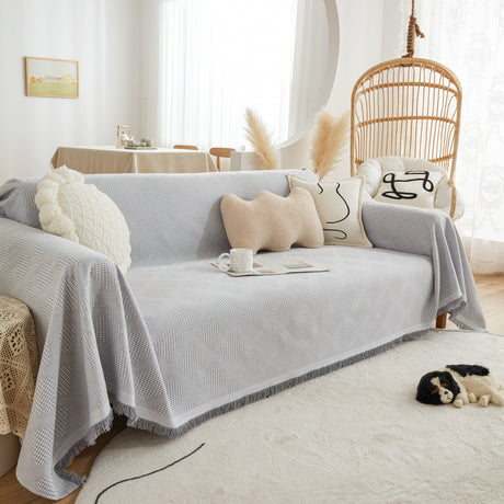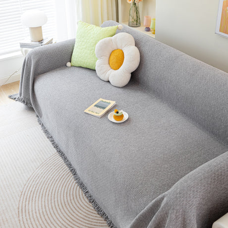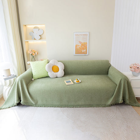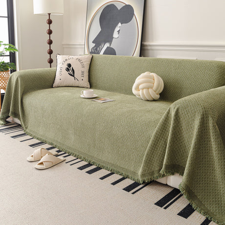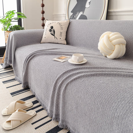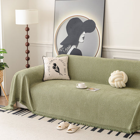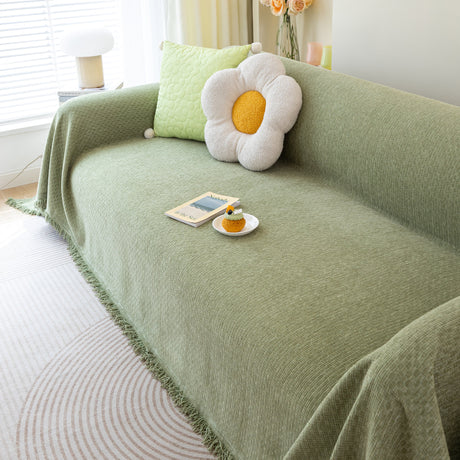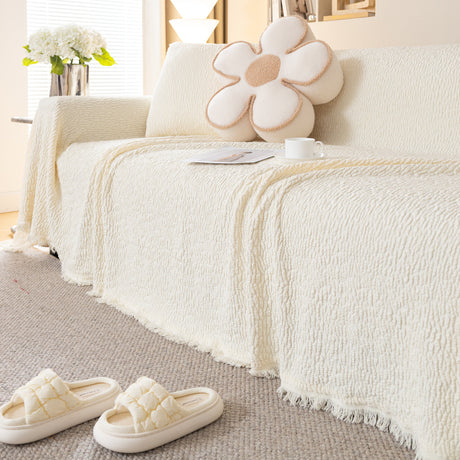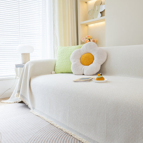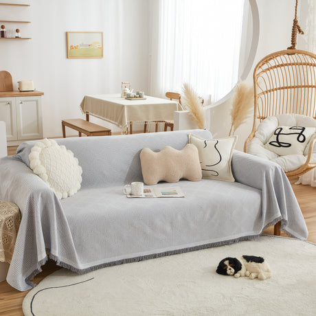 Soft Chenille Tassel Trim Sectional Sofa Protector Couch Covers for Cats Cozy Blanket Sofa Throws