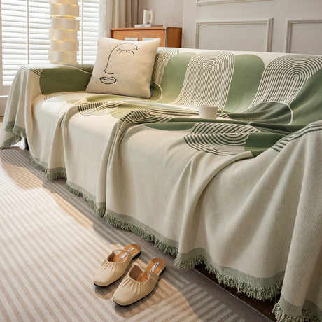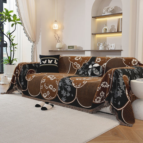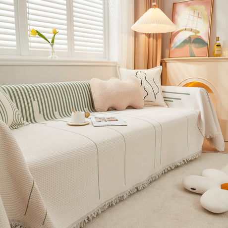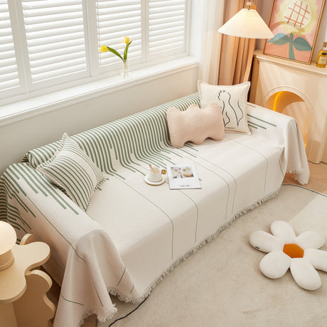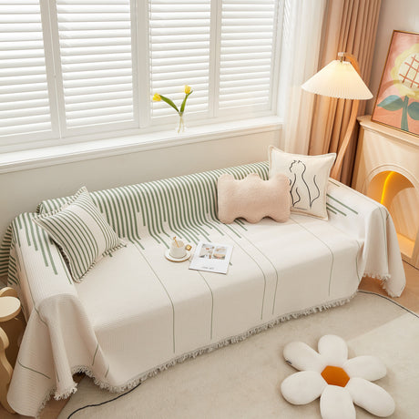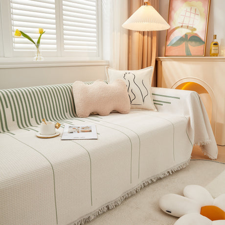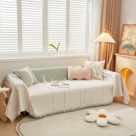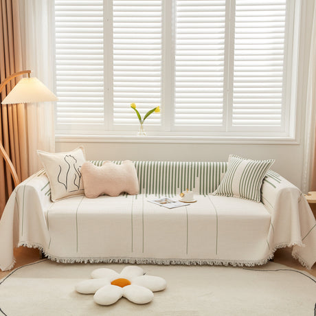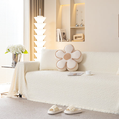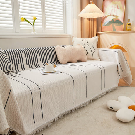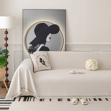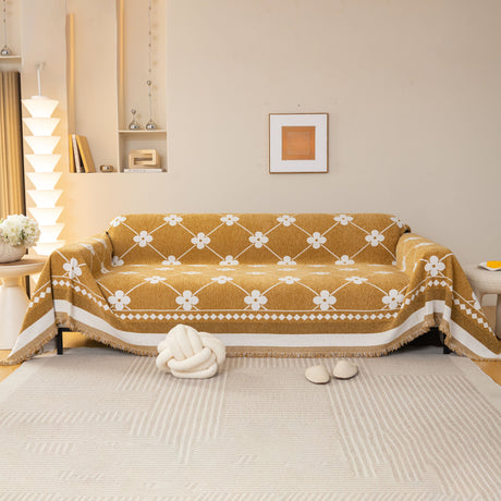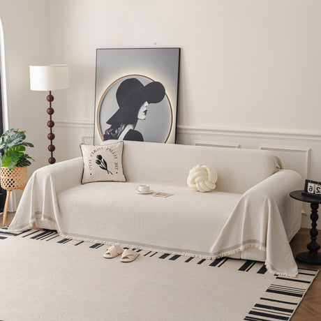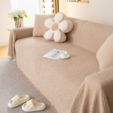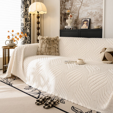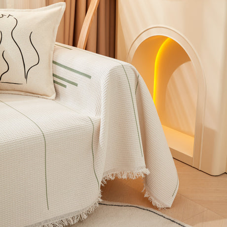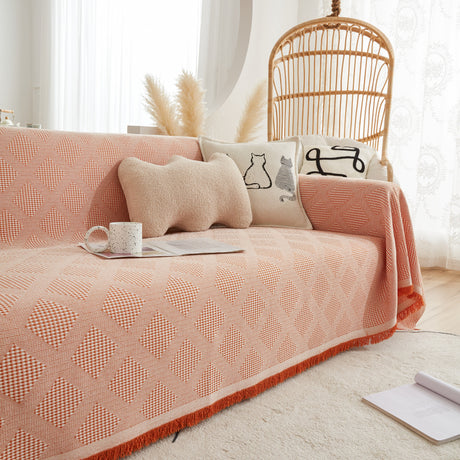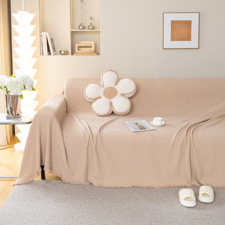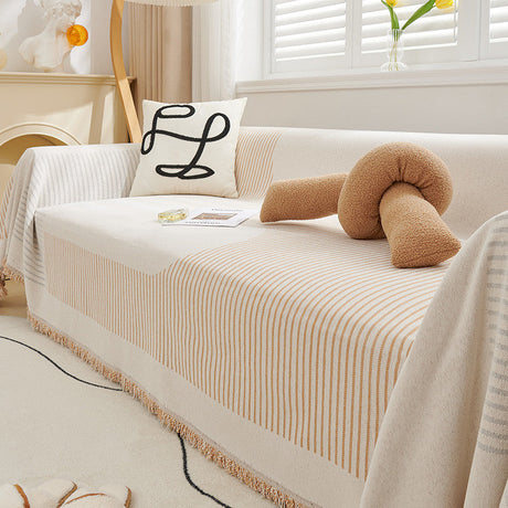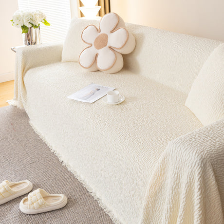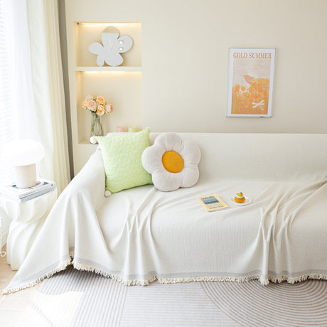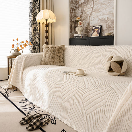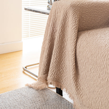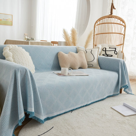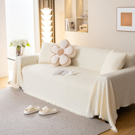 Soft Chenille Tassel Trim Sectional Sofa Protector Couch Covers for Cats Cozy Blanket Sofa Throws