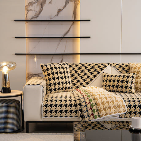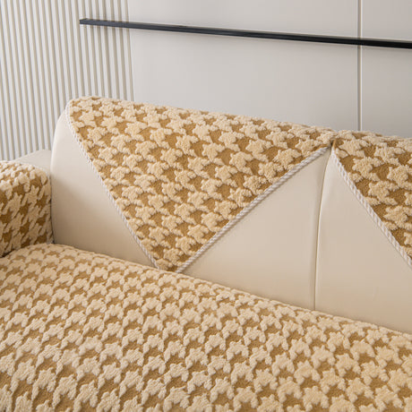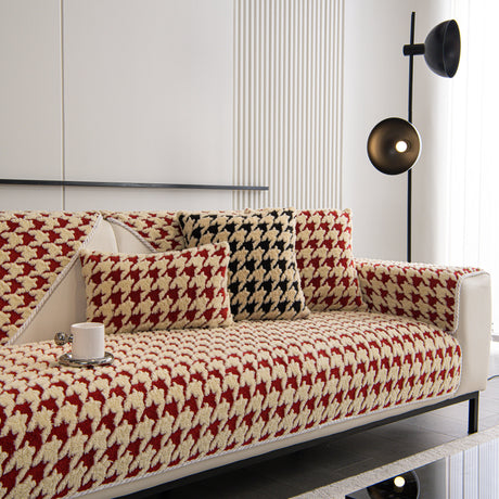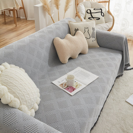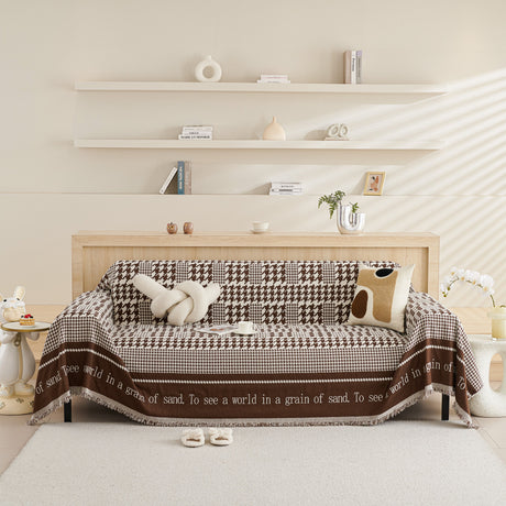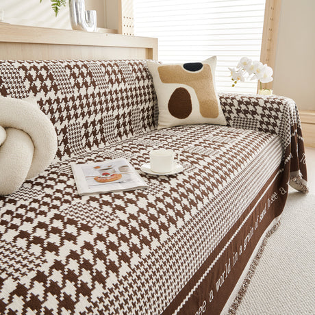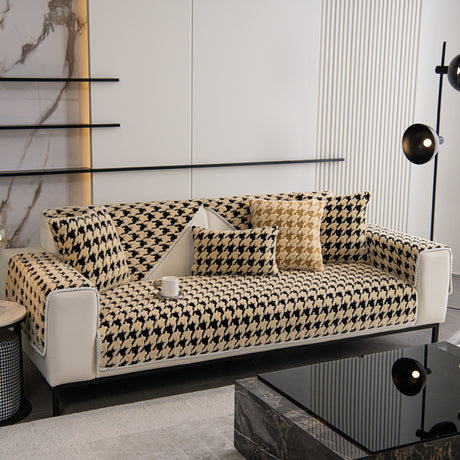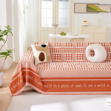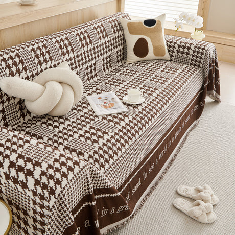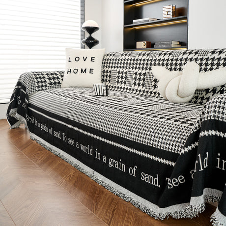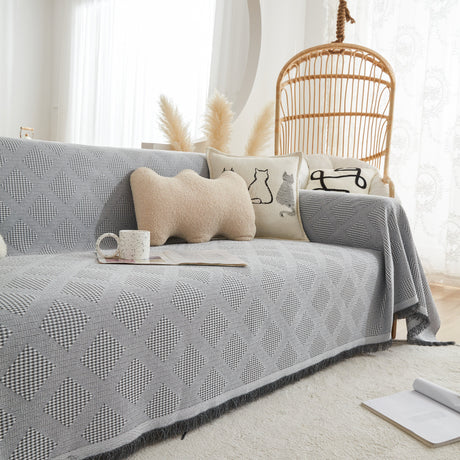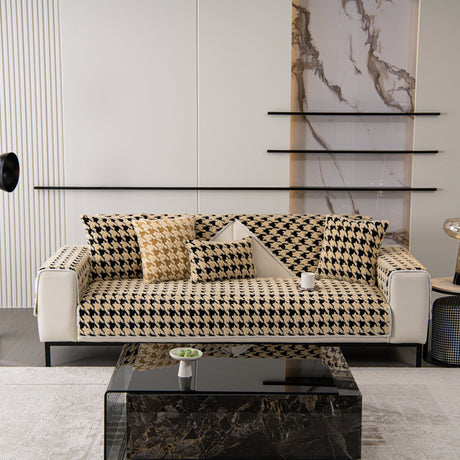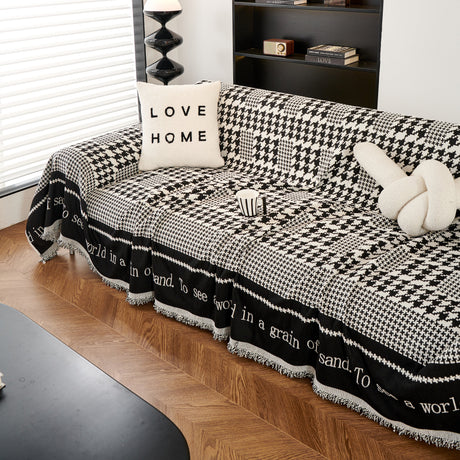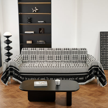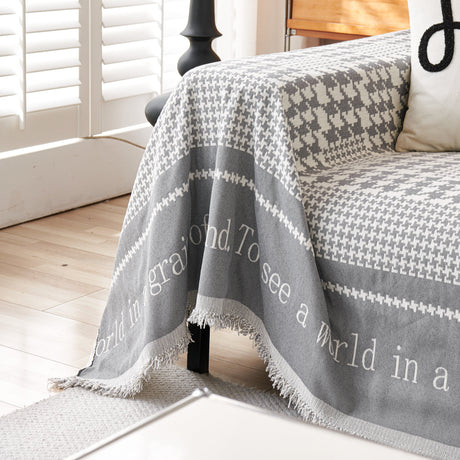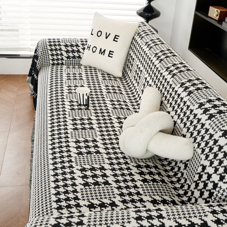 Chenille Houndstooth Couch Cover, Chaise Lounge Blanket Cover, Sectional Couch Scratch Protector