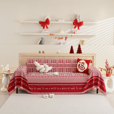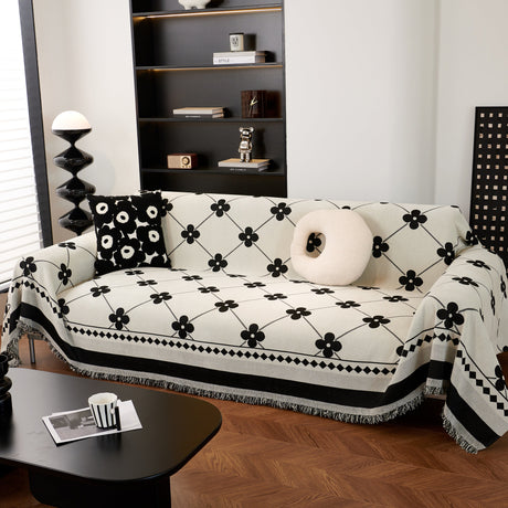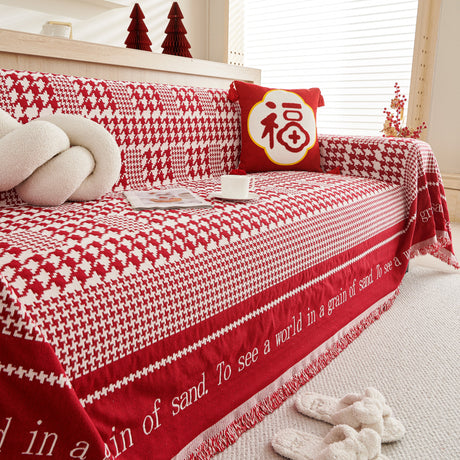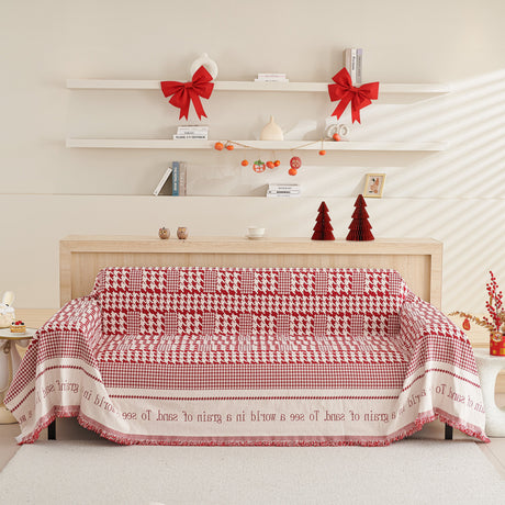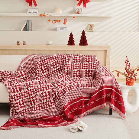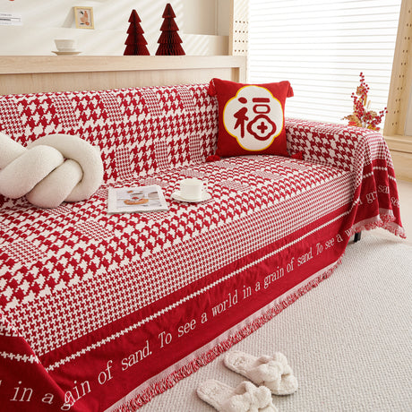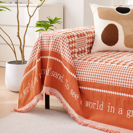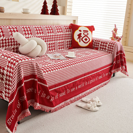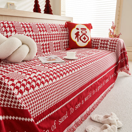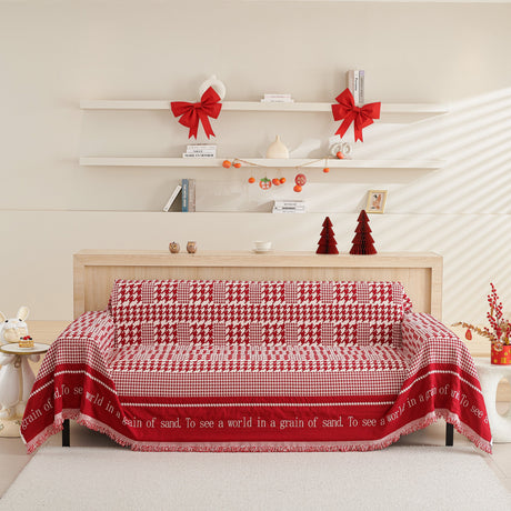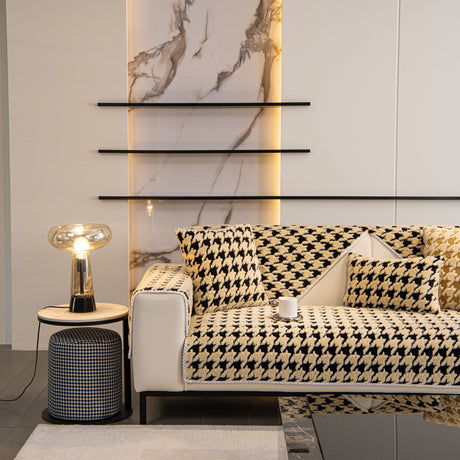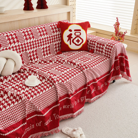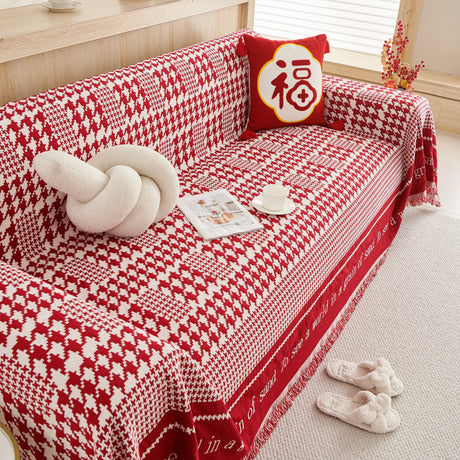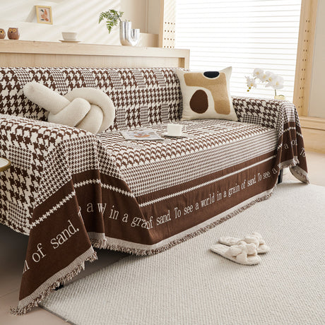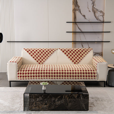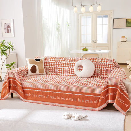 Chenille Houndstooth Couch Cover, Chaise Lounge Blanket Cover, Sectional Couch Scratch Protector