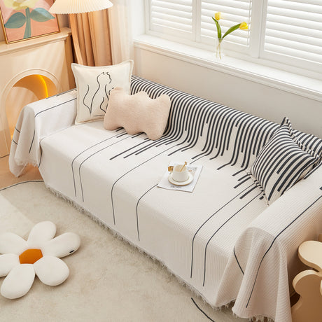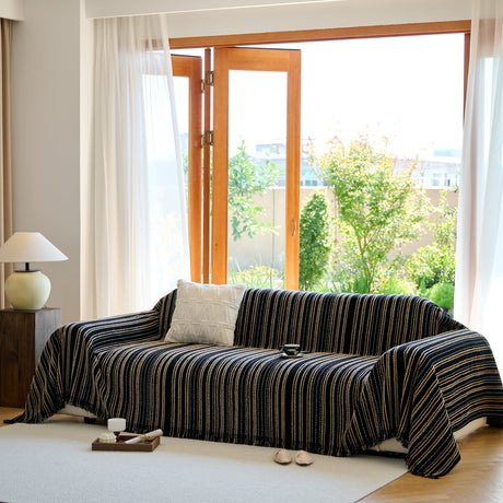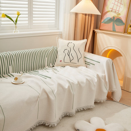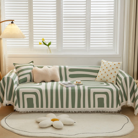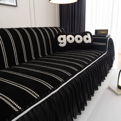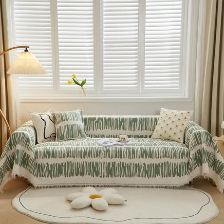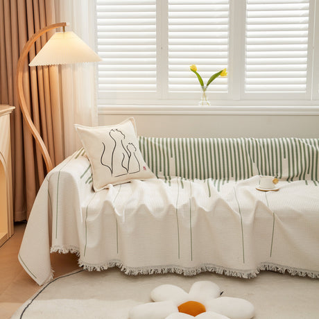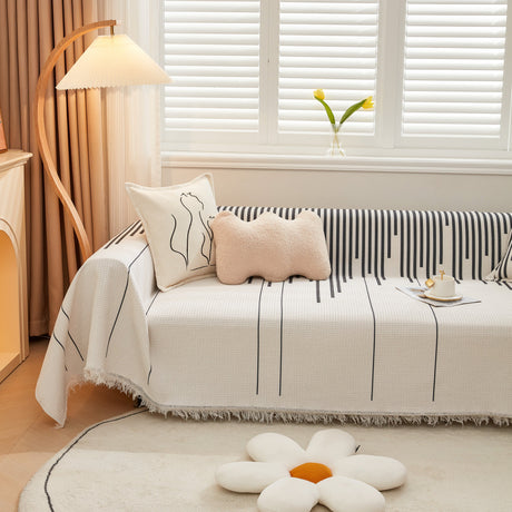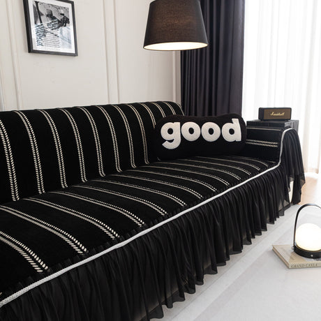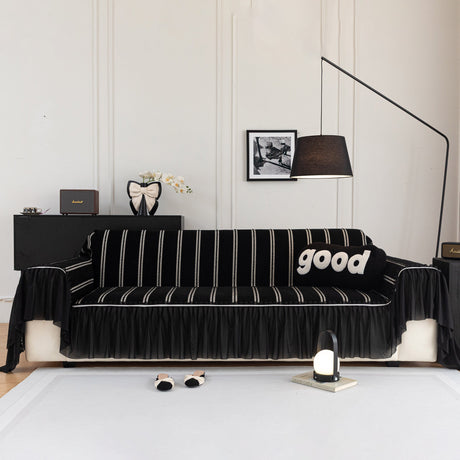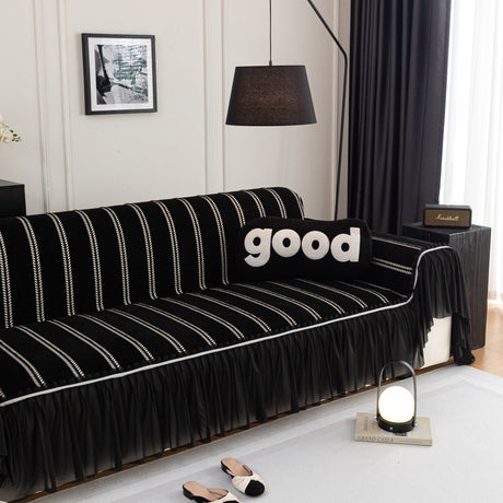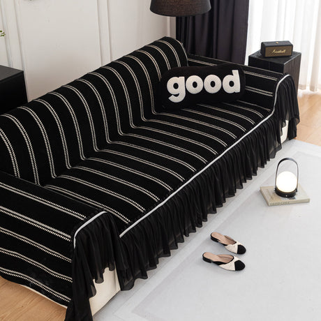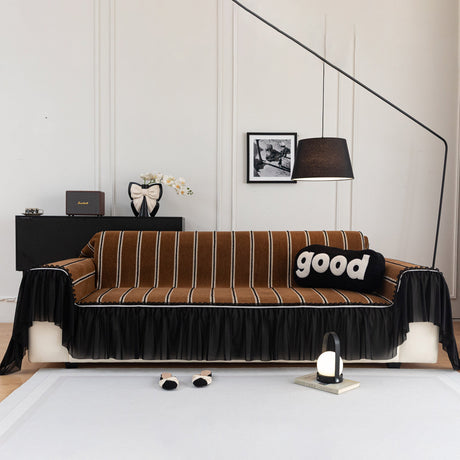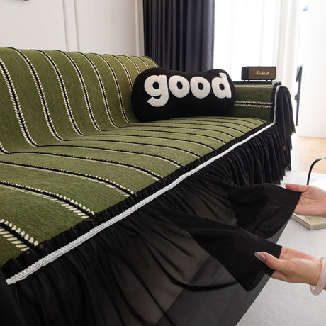 Leaf Stripe Sofa Cover with Black Sheer Skirt, Boho Soft Couch Slipcover for Pets
