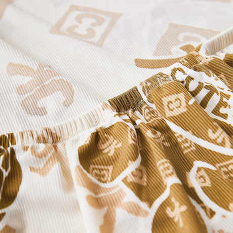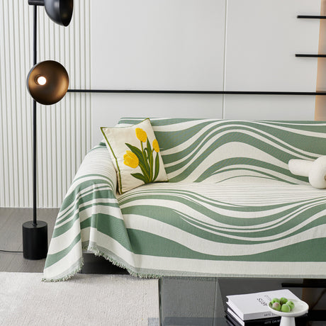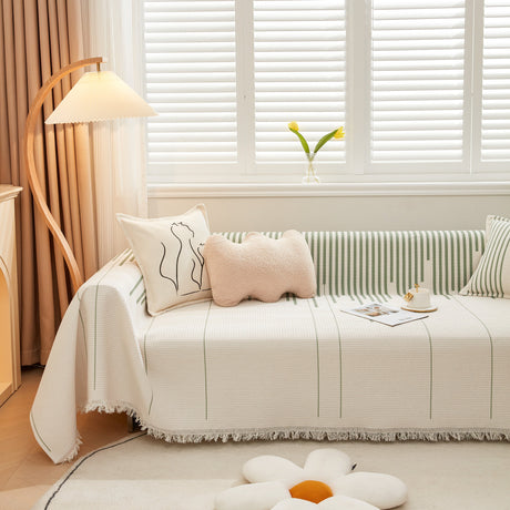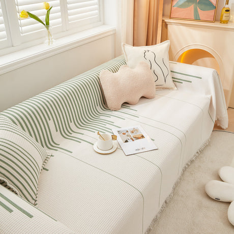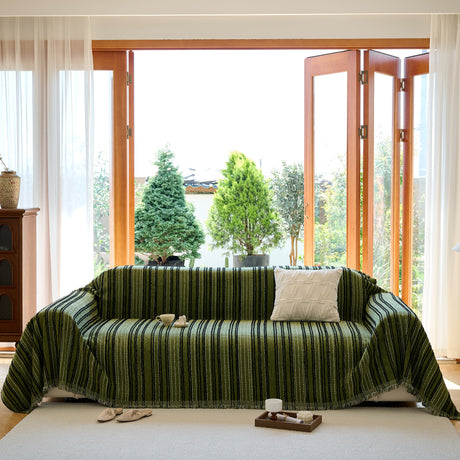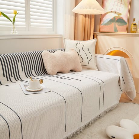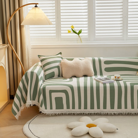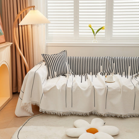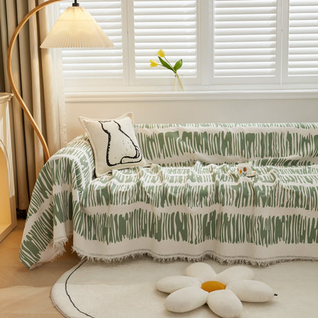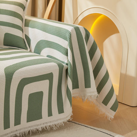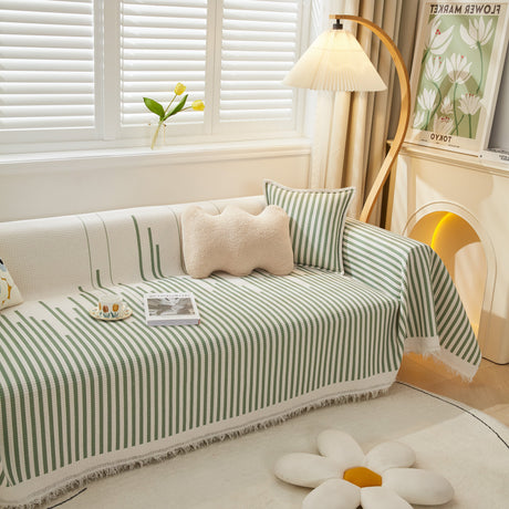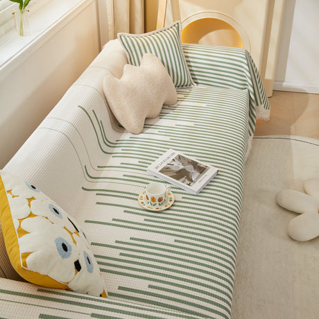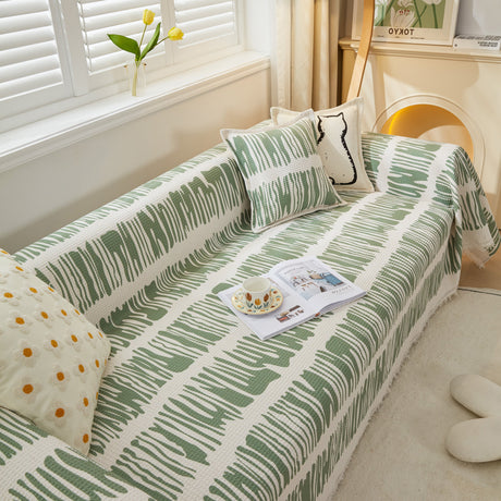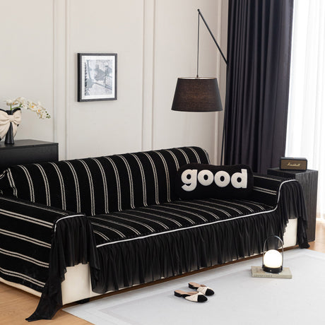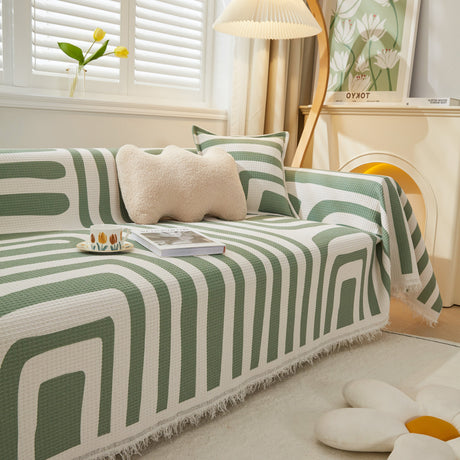 Leaf Stripe Sofa Cover with Black Sheer Skirt, Boho Soft Couch Slipcover for Pets