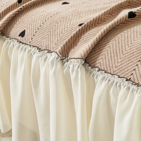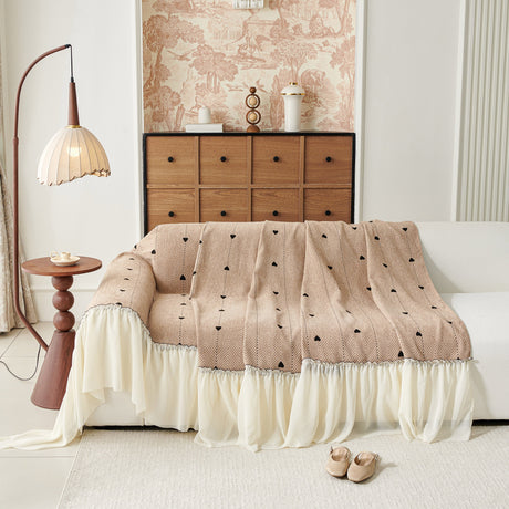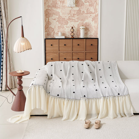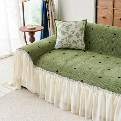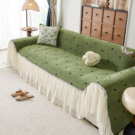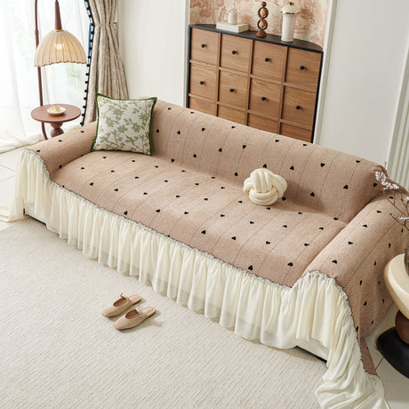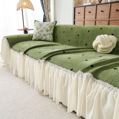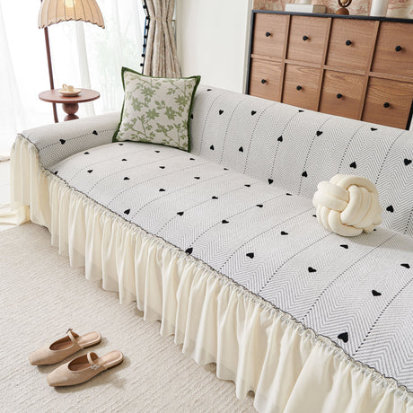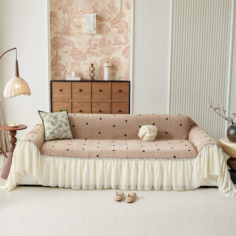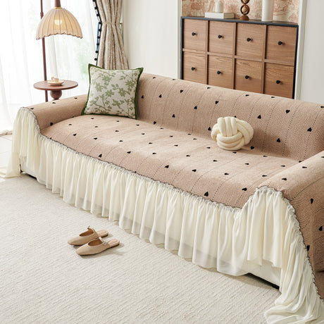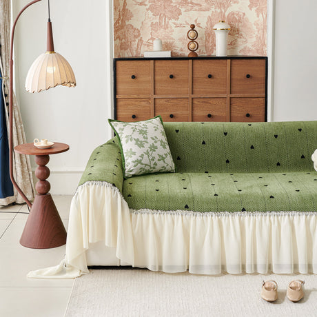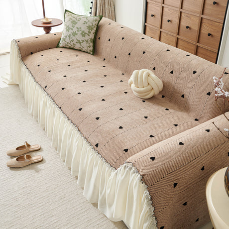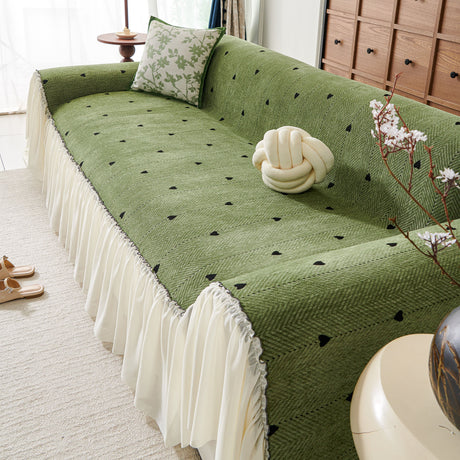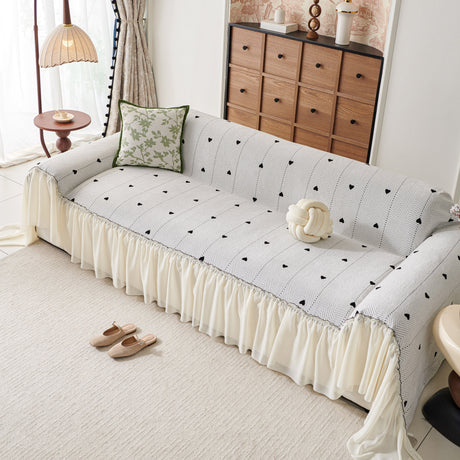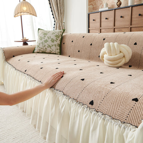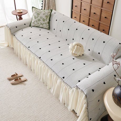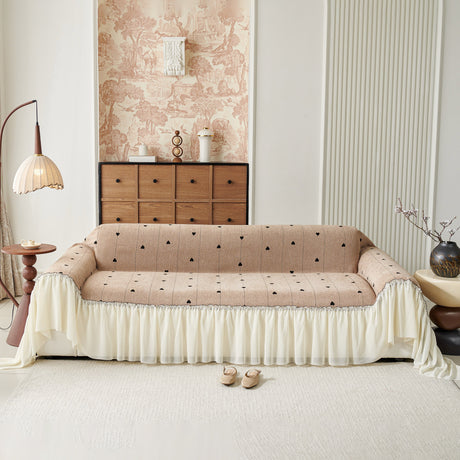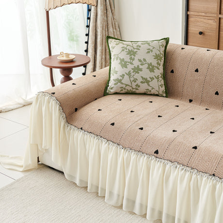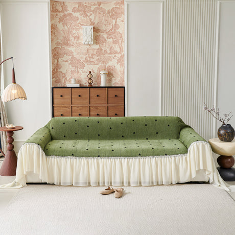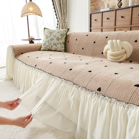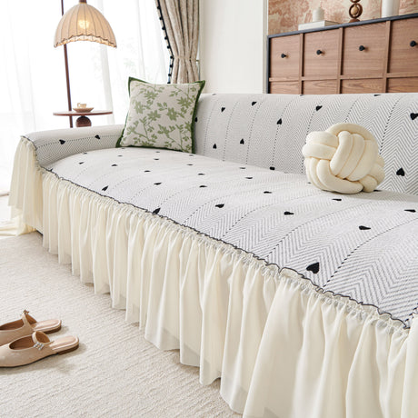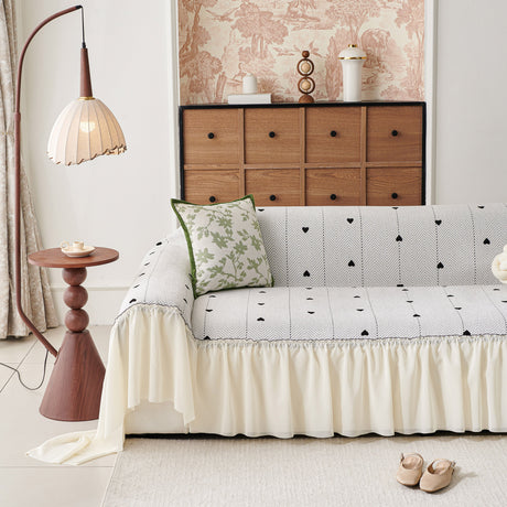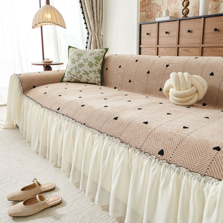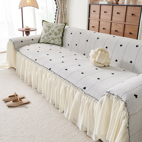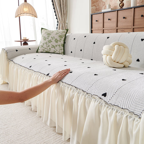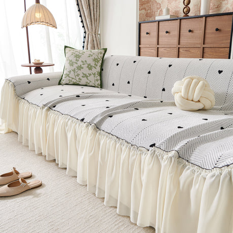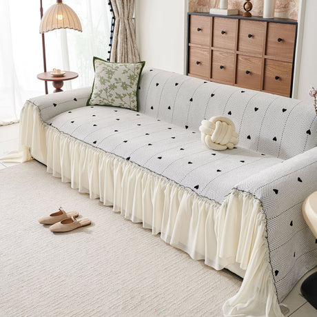 Grid Sofa Cover with Ruffle Skirt – Soft, Decorative, Full-Cover Couch Protector