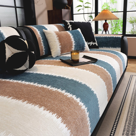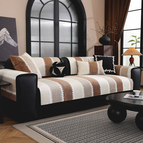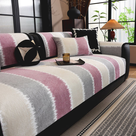 Striped Colorblock Non-Slip Sectional Couch Covers, Chenille Sofa Protector Cover