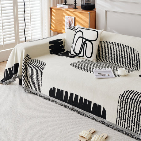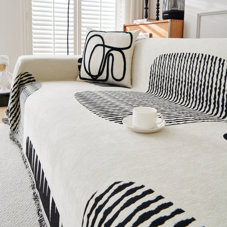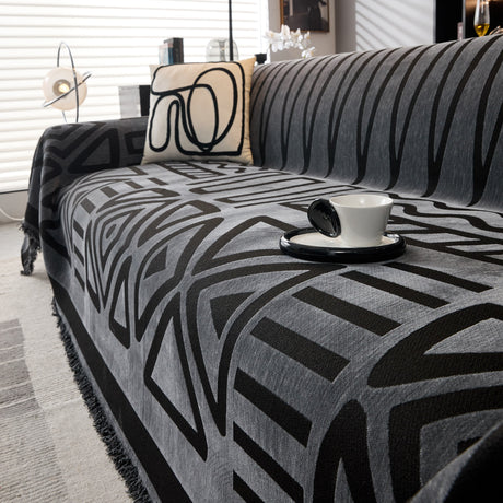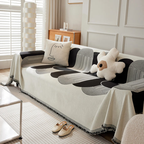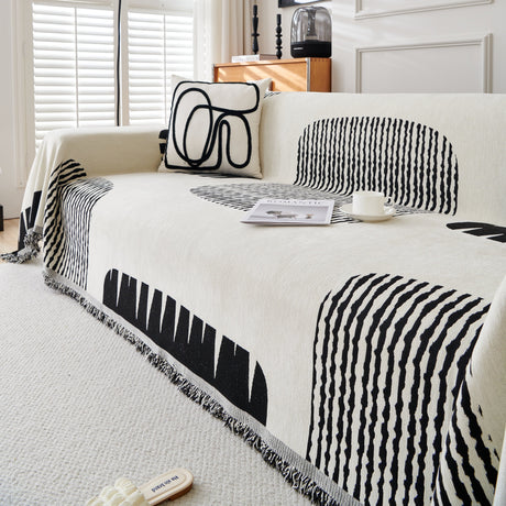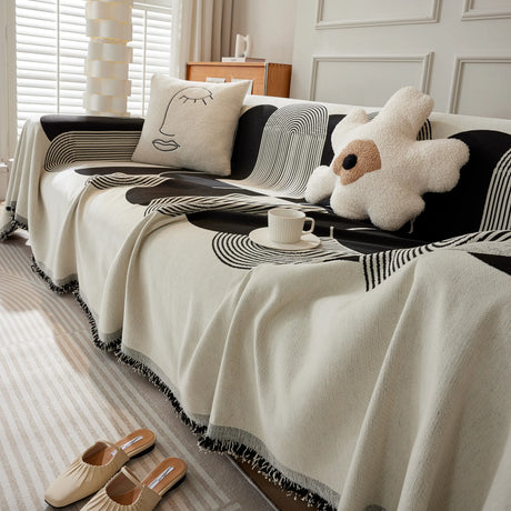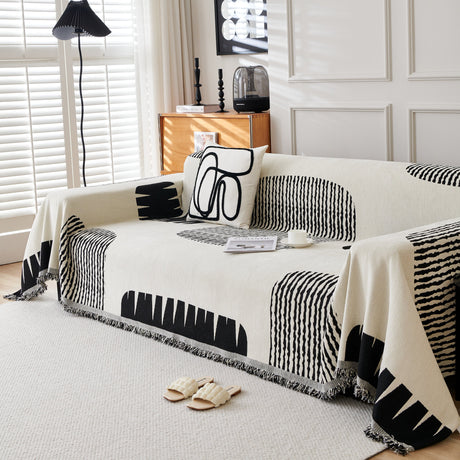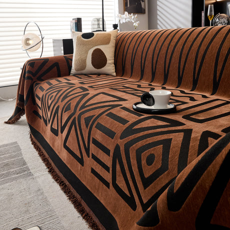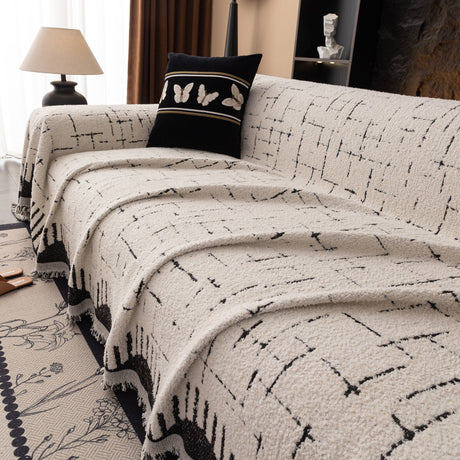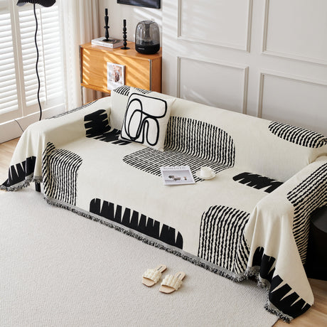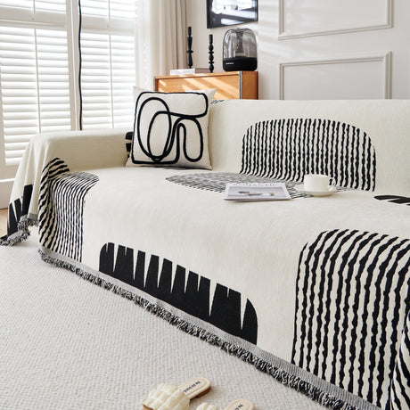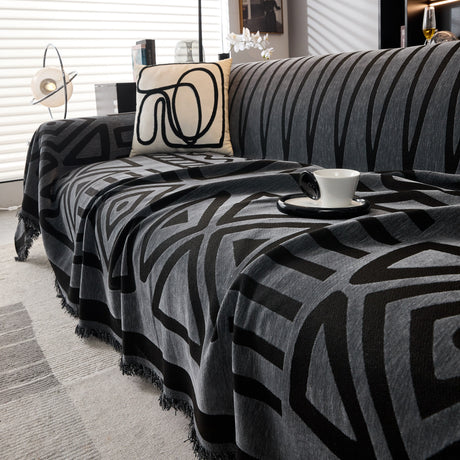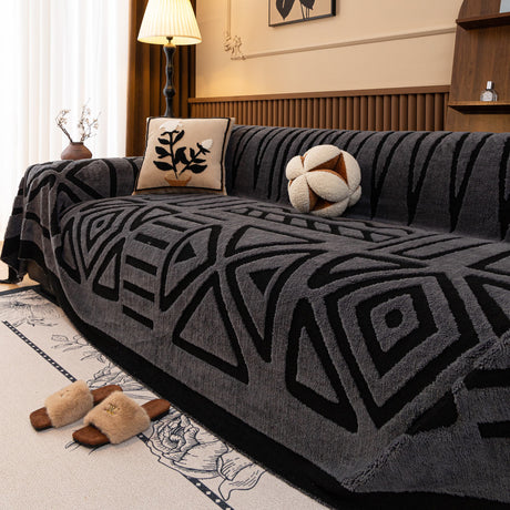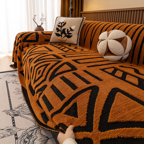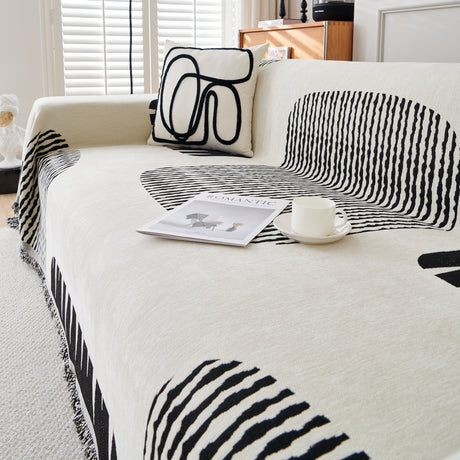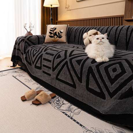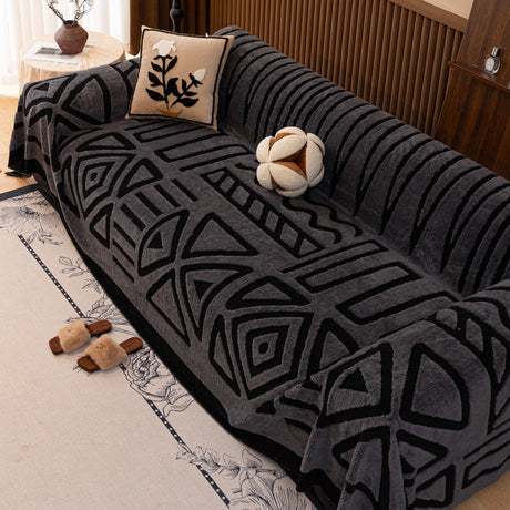 Modern Retro Sofa Throw - Decorative, Washable Chenille Blanket & Couch Protector