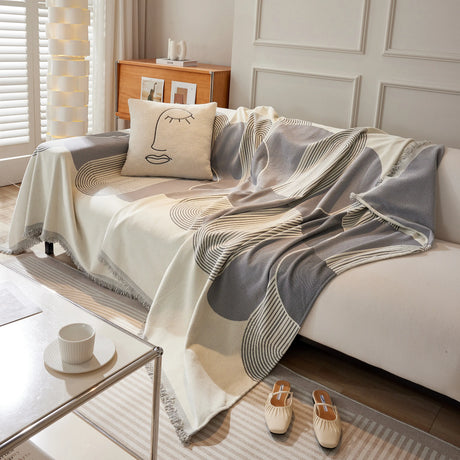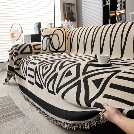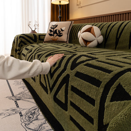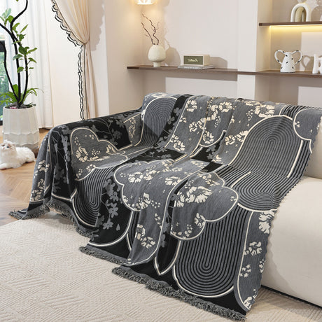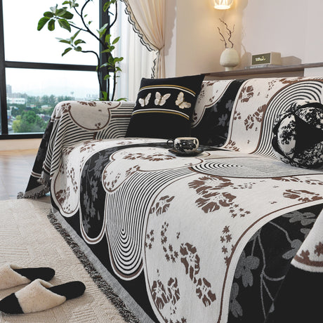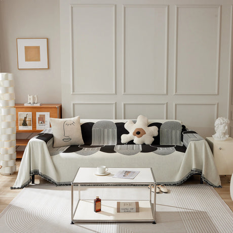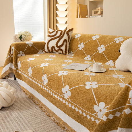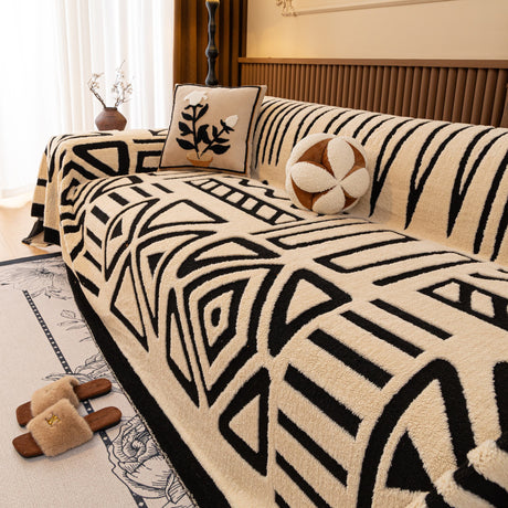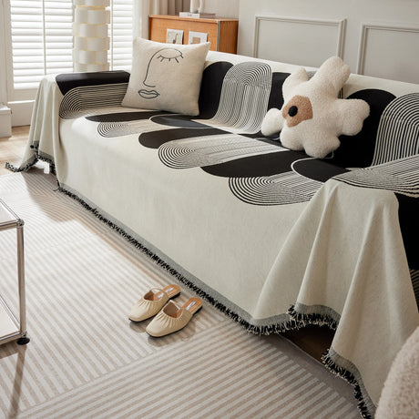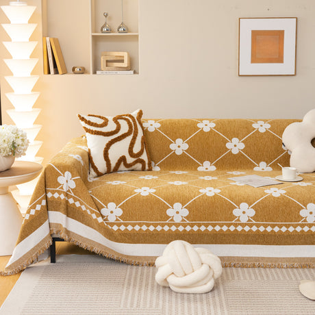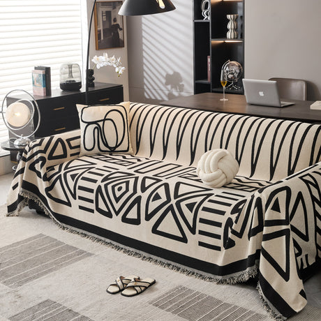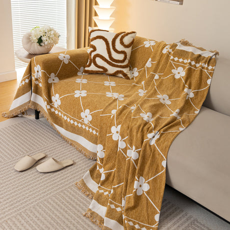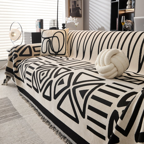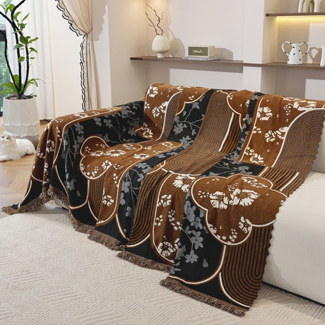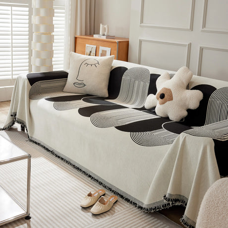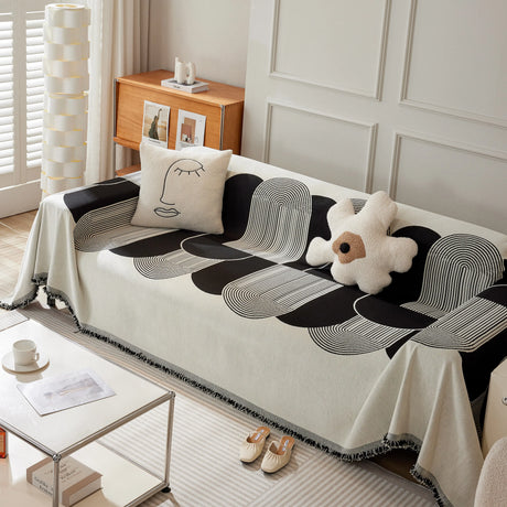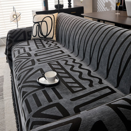 Modern Retro Sofa Throw - Decorative, Washable Chenille Blanket & Couch Protector