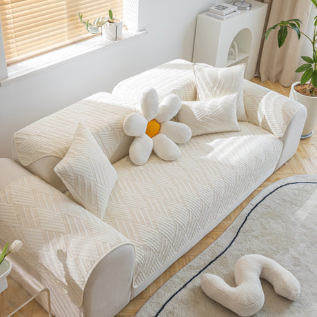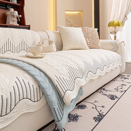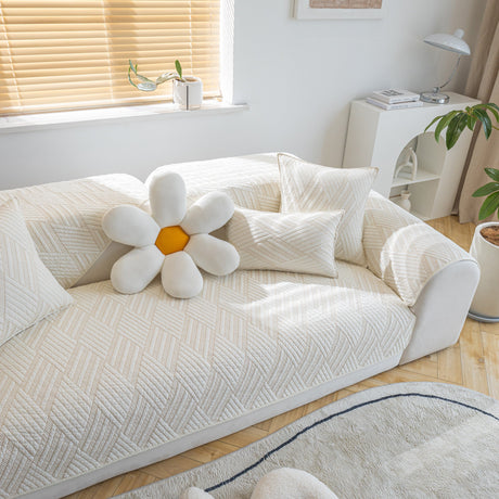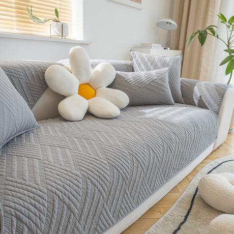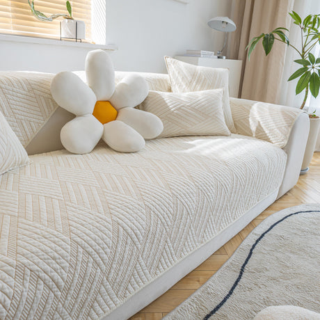 Quilted Geometric Cotton Sofa Cover, Non-Slip & Thick Padded Furniture Covers