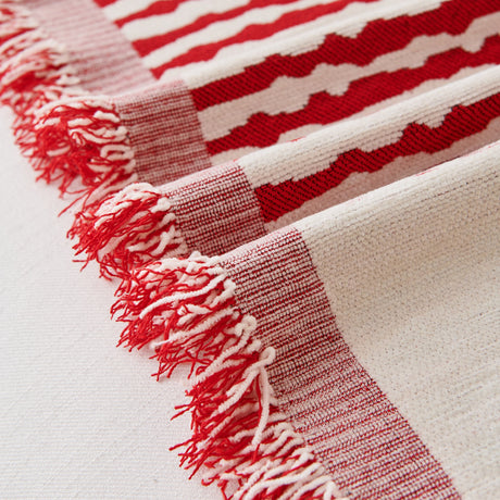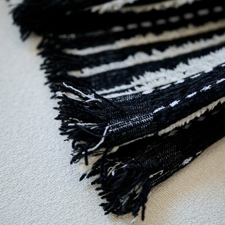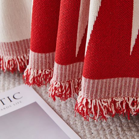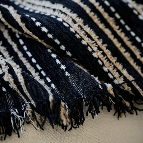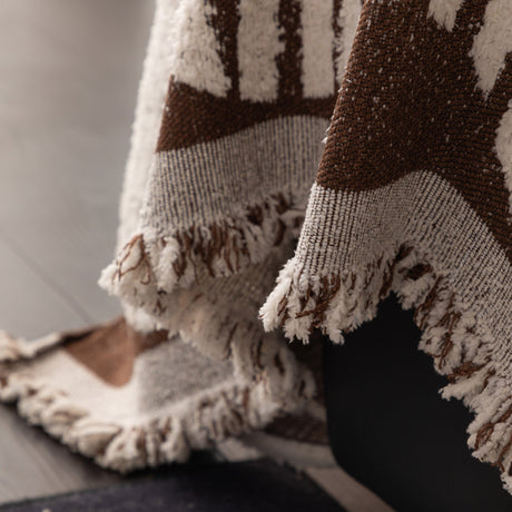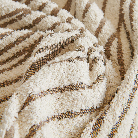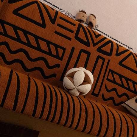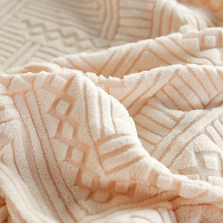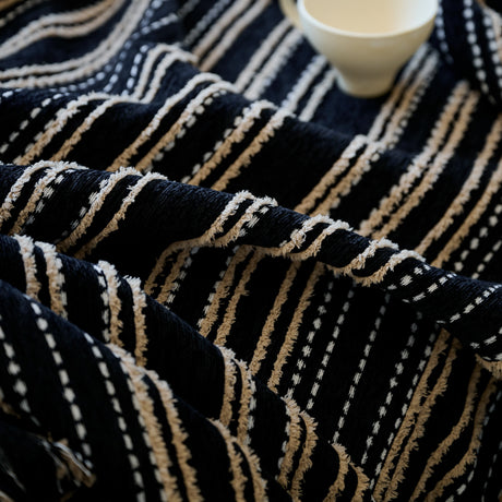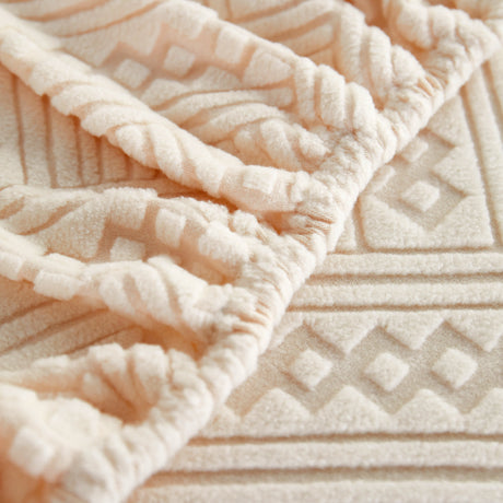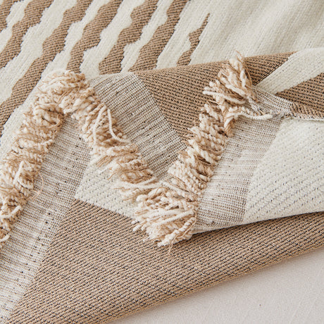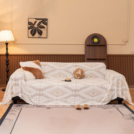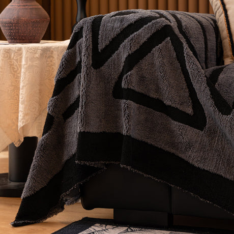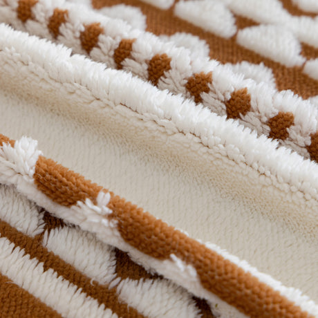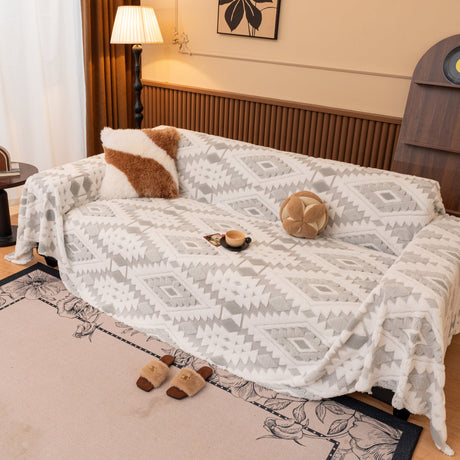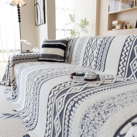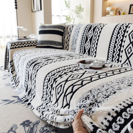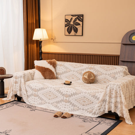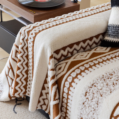 Bohemian Tufted Sofa Cover, Plush Flannel Throw Blanket with 3D Woven Aztec Stripes