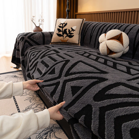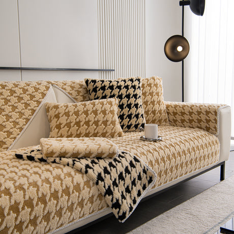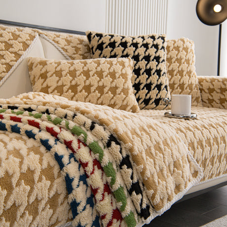 Winter Thickened Sherpa Fleece Houndstooth Sofa Cushion, Non-slip Sofa Cover with Plush