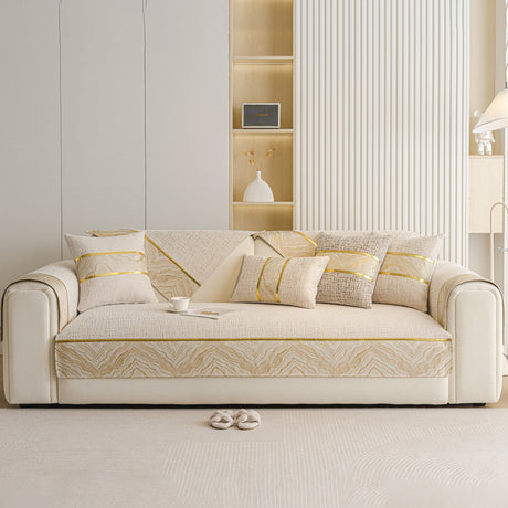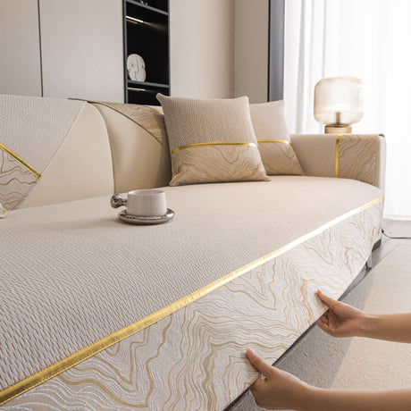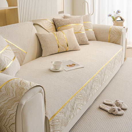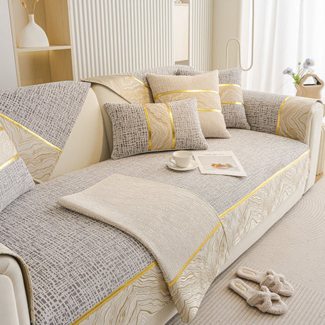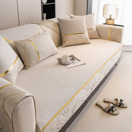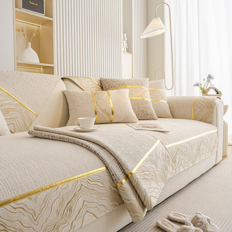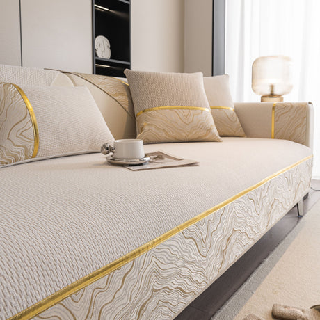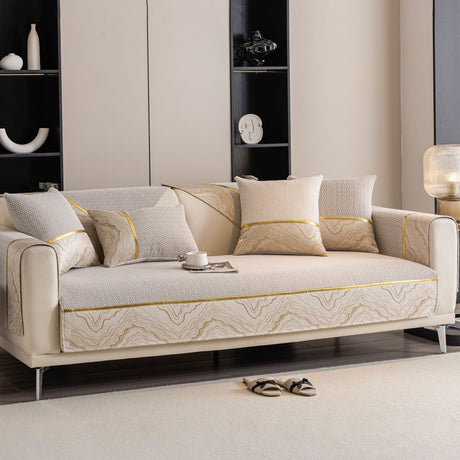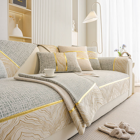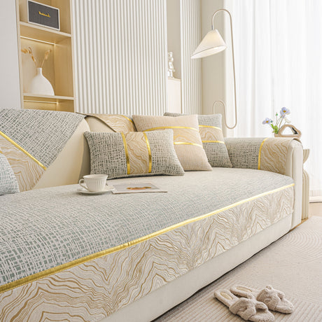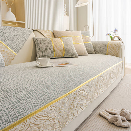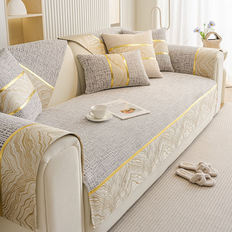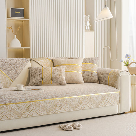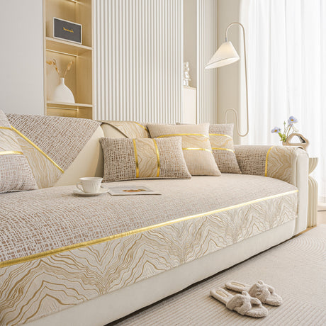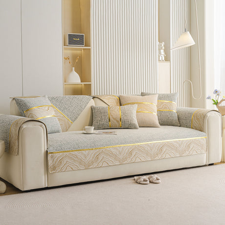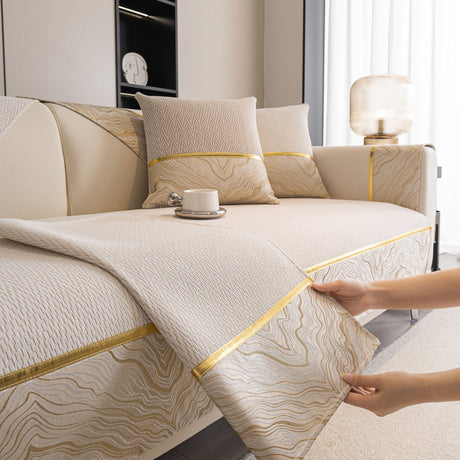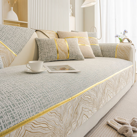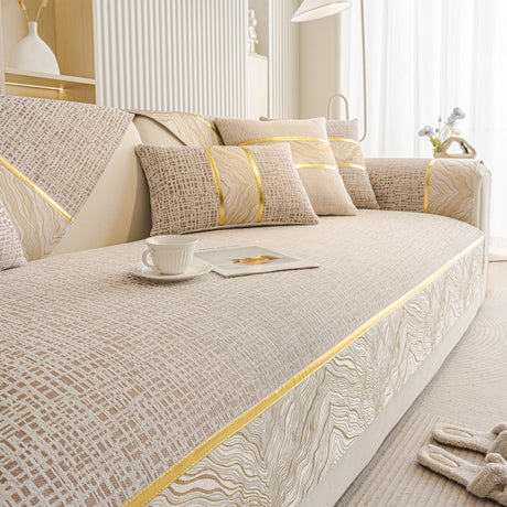 Non-Slip Couch Cover with Gold Trim, Sofa Slipcover for Sectional & Loveseat