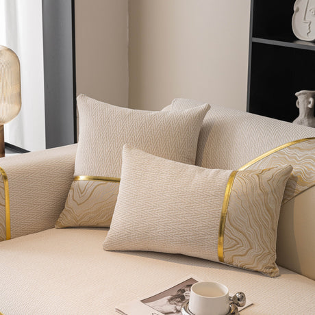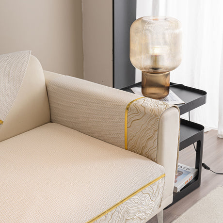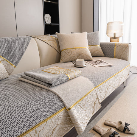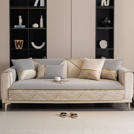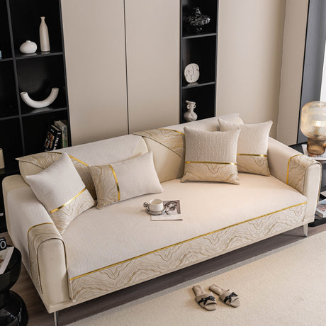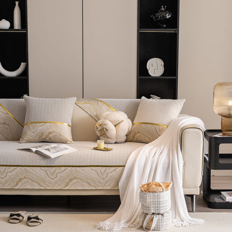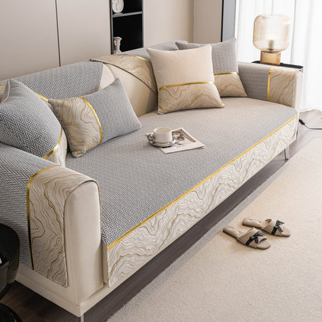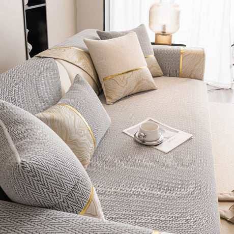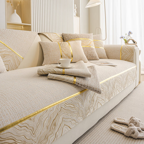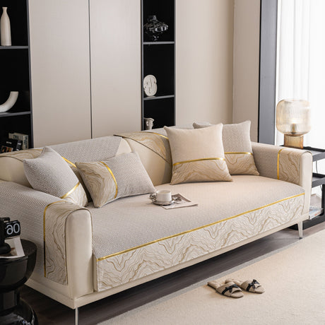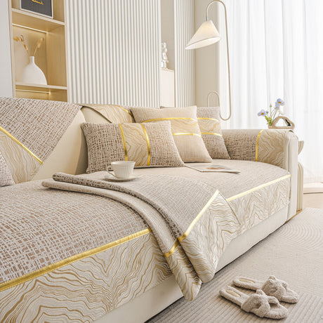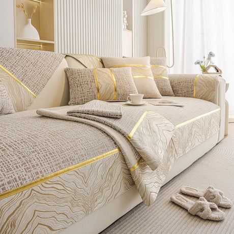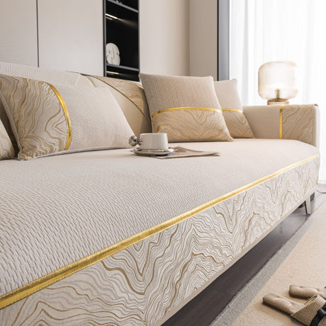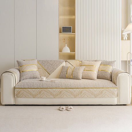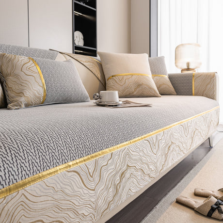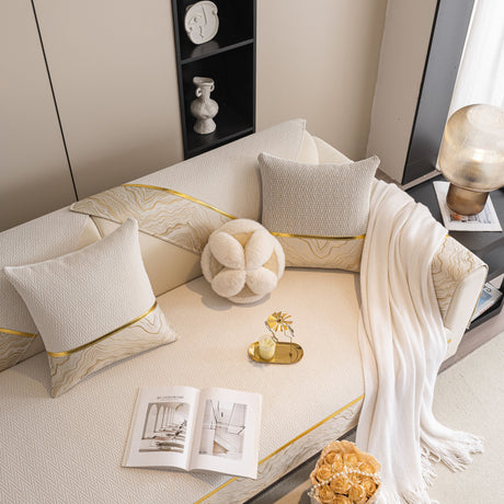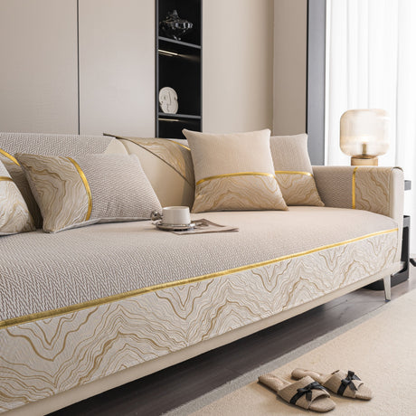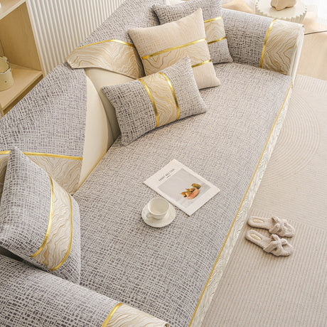 Non-Slip Couch Cover with Gold Trim, Sofa Slipcover for Sectional & Loveseat