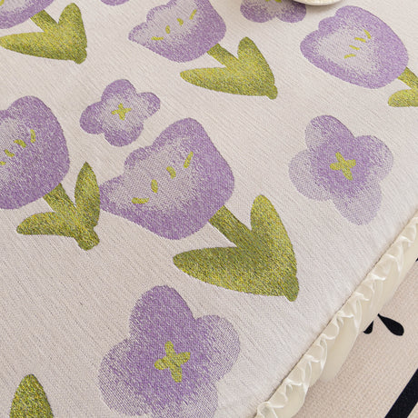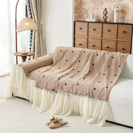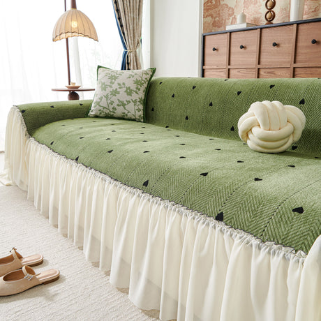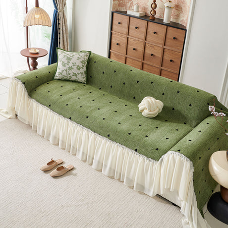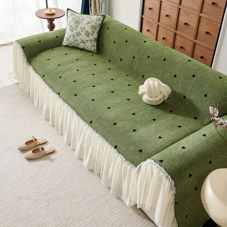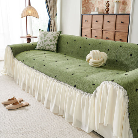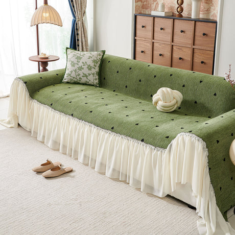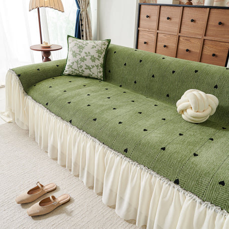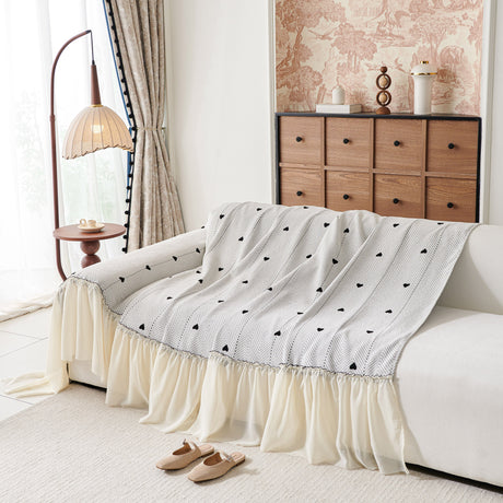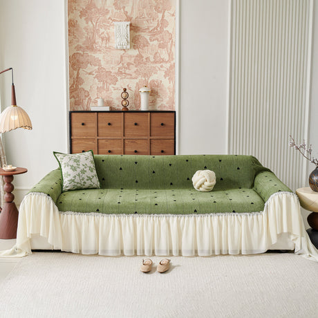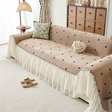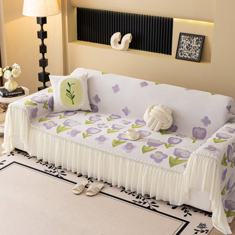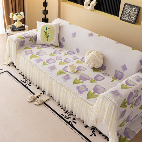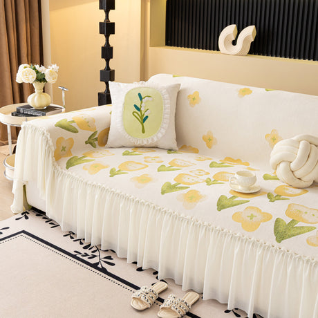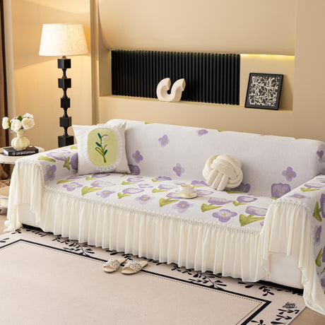 Ruffled Sweet Floral Sofa Cover with Skirt, Soft and Decorative Couch Throw Cover