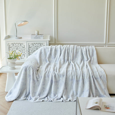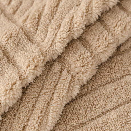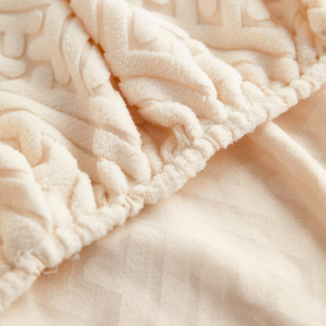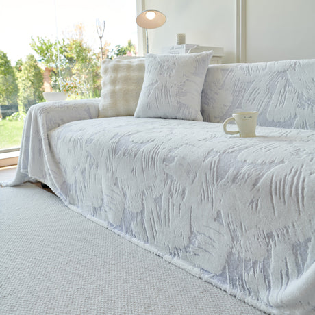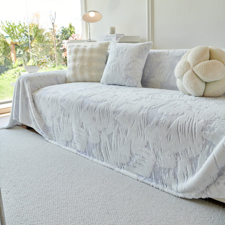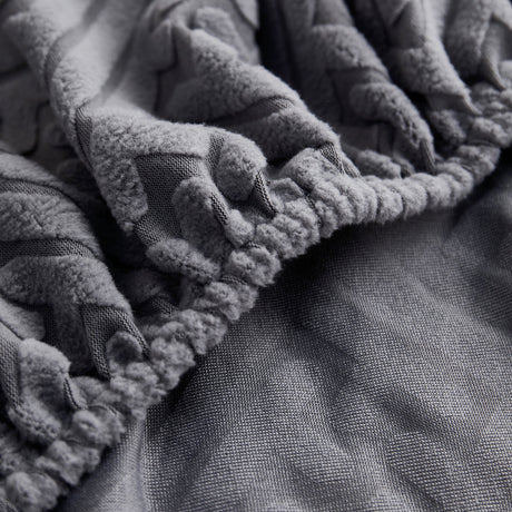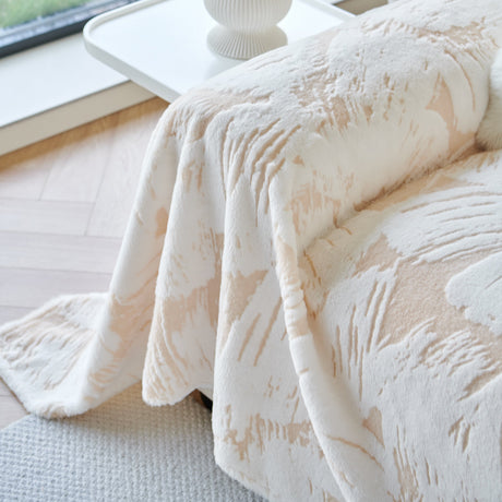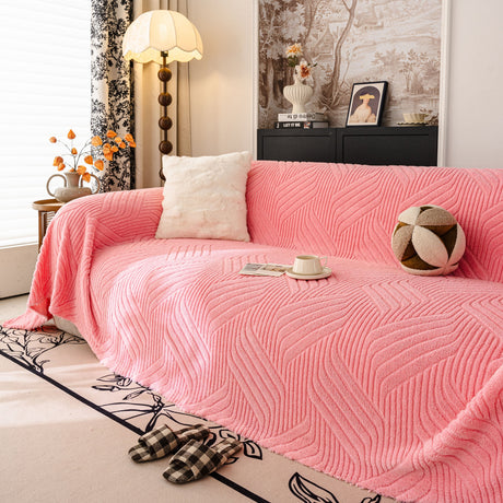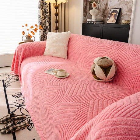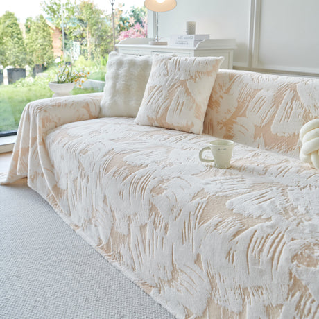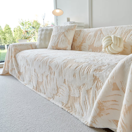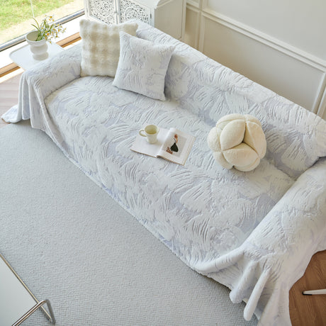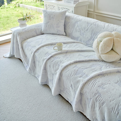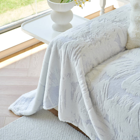 Plush Faux Fur Warm Sofa Cover with Waves Jacquard Textured Throw Blankets for Couch